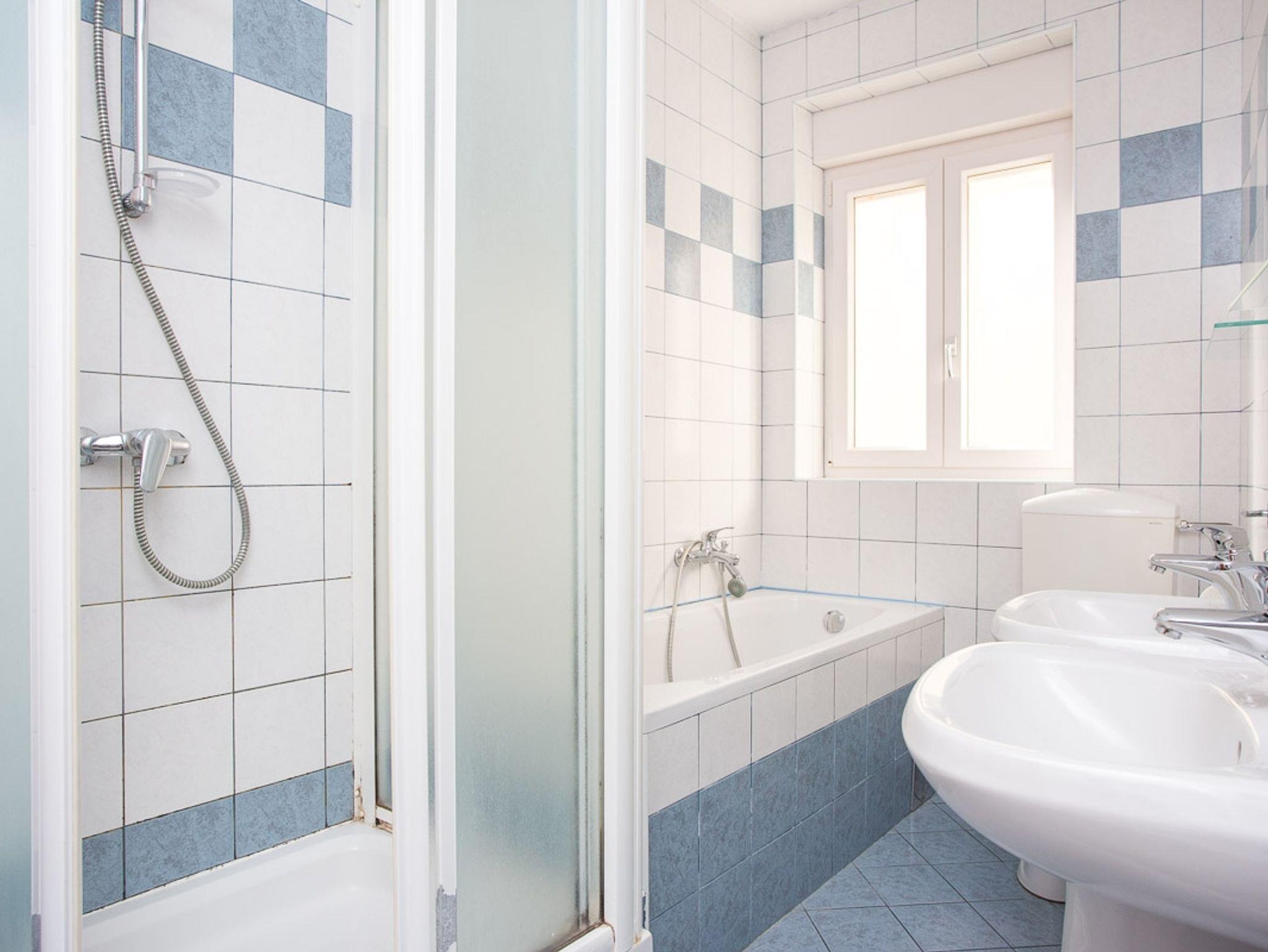 Ferienwohnung bietet Platz für 4 Gäste. Die Betten sind in Schlafzimmern, die es 2 gibt, innerhalb einer Gesamtfläche von 45m2, angeordnet. Die Gäste haben eine eigene Terrasse zur Verfügung, auf der sie in warmen Sommernächten genießen können. Es ist erlaubt, Speisen auf dem Gemeinschafts-Grill vorzubereiten. In der Unterkunftseinheit besteht die Möglichkeit des Mitbringens von Haustieren gegen Aufpreis. IM PREIS INBEGRIFFEN: Kurtaxe, Endreinigung, Klimatisierung, Parkplatz, Internet. VERBINDLICHE ZUSÄTZLICHE KOSTEN: Aufzahlung für Kurzaufenthalte (prozentualer Zuschlag pro Nächtigungsanzahl: 30% - 1, 20% - 2, 10% - 3). UNVERBINDLICHE ZUSÄTZLICHE KOSTEN: Haustiere (10,00 € pro Nacht). Die Verfügbarkeit zusätzlicher Dienstleistungen in Ihrem reservierten Termin und die Preise derselben (falls nicht aufgeführt) müssen im Voraus überprüft werden. Zusätzliche Dienstleistungen die in der Zahlungsaufforderung nicht aufgeführt sind werden direkt beim Vermieter bezahlt, angenommen der Gast nutzt auch diese.