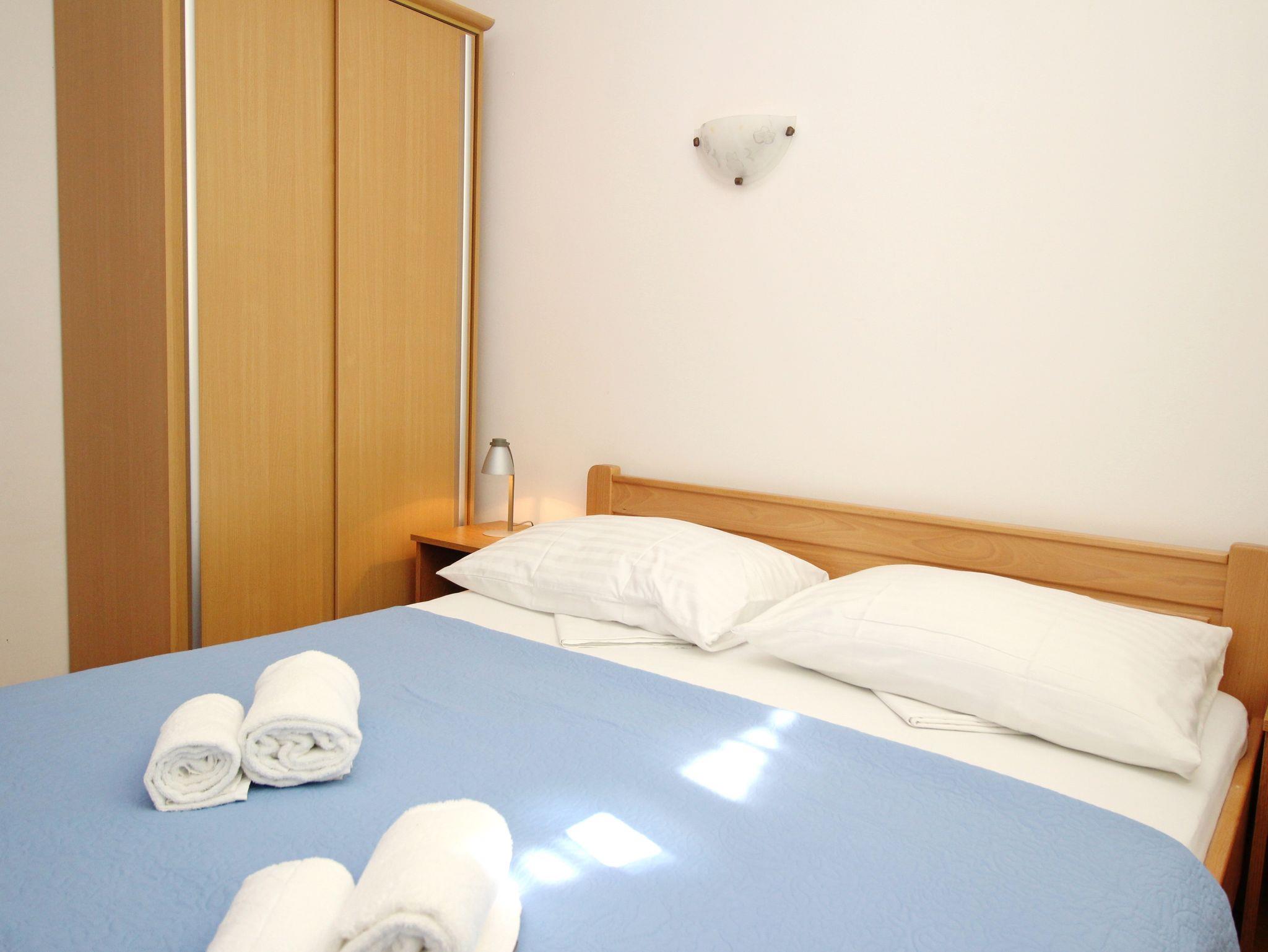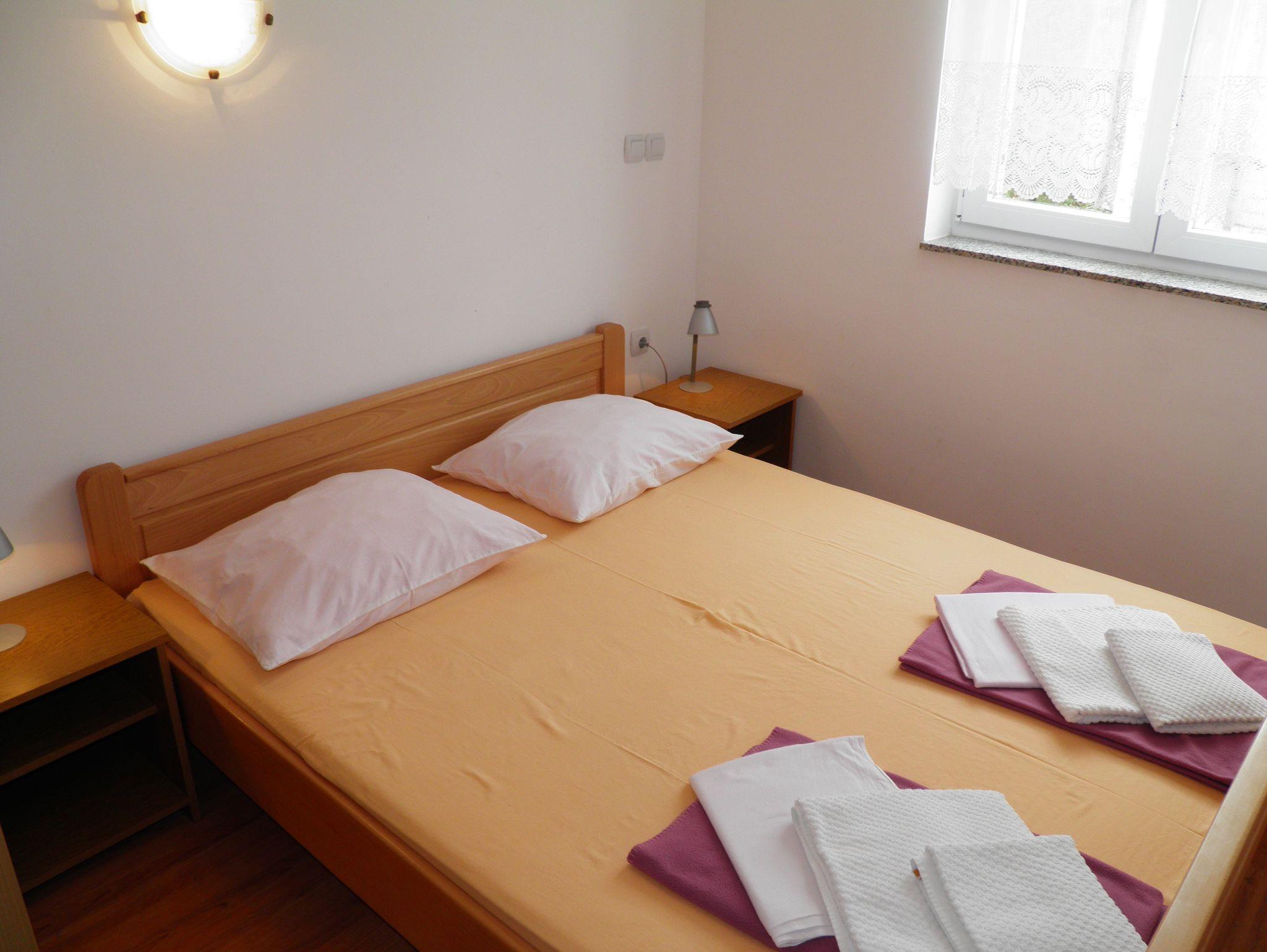 Ferienwohnung bietet Platz für 5 Gäste. Die Betten sind in Schlafzimmern, die es 2 gibt, und in Wohnzimmer, innerhalb einer Gesamtfläche von 50m2, angeordnet. Die Gäste haben einen eigenen Balkon zur Verfügung, auf der sie in warmen Sommernächten genießen können. In der Unterkunftseinheit besteht die Möglichkeit des Mitbringens von Haustieren gegen Aufpreis. IM PREIS INBEGRIFFEN: Kurtaxe, Endreinigung, Klimatisierung, Parkplatz, Internet. VERBINDLICHE ZUSÄTZLICHE KOSTEN: Aufzahlung für Kurzaufenthalte (prozentualer Zuschlag pro Nächtigungsanzahl: 30% - 1, 20% - 2, 10% - 3). UNVERBINDLICHE ZUSÄTZLICHE KOSTEN: Haustiere (10,00 € pro Nacht). Die Verfügbarkeit zusätzlicher Dienstleistungen in Ihrem reservierten Termin und die Preise derselben (falls nicht aufgeführt) müssen im Voraus überprüft werden. Zusätzliche Dienstleistungen die in der Zahlungsaufforderung nicht aufgeführt sind werden direkt beim Vermieter bezahlt, angenommen der Gast nutzt auch diese.