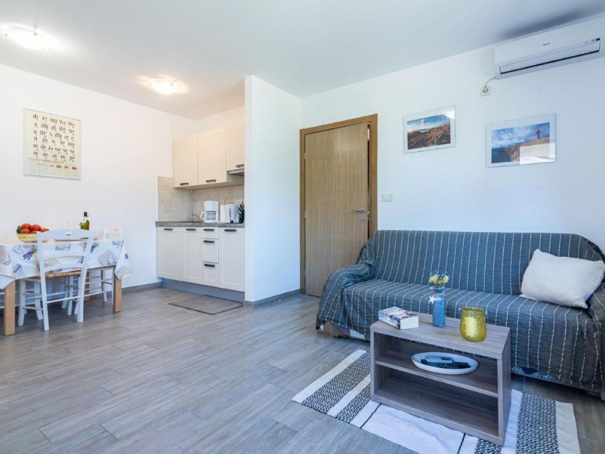 Ferienwohnung bietet Platz für 3 Gäste. Die Betten sind in Schlafzimmern, die es 1 gibt, und in Wohnzimmer, innerhalb einer Gesamtfläche von 37m2, angeordnet. Die Gäste haben eine eigene Terrasse zur Verfügung, auf der sie in warmen Sommernächten genießen können. Es ist erlaubt, Speisen auf dem Gemeinschafts-Grill vorzubereiten. Während ihres Aufenthalts können Gäste das gemeinsam zur Nutzung stehende Schwimmbad benutzen. IM PREIS INBEGRIFFEN: Kurtaxe, Endreinigung, Klimatisierung, Pool, Parkplatz, Internet, Kinderbett, Föhn. VERBINDLICHE ZUSÄTZLICHE KOSTEN: Aufzahlung für Kurzaufenthalte (prozentualer Zuschlag pro Nächtigungsanzahl: 30% - 1, 20% - 2, 10% - 3). Die Verfügbarkeit zusätzlicher Dienstleistungen in Ihrem reservierten Termin und die Preise derselben (falls nicht aufgeführt) müssen im Voraus überprüft werden. Zusätzliche Dienstleistungen die in der Zahlungsaufforderung nicht aufgeführt sind werden direkt beim Vermieter bezahlt, angenommen der Gast nutzt auch diese.