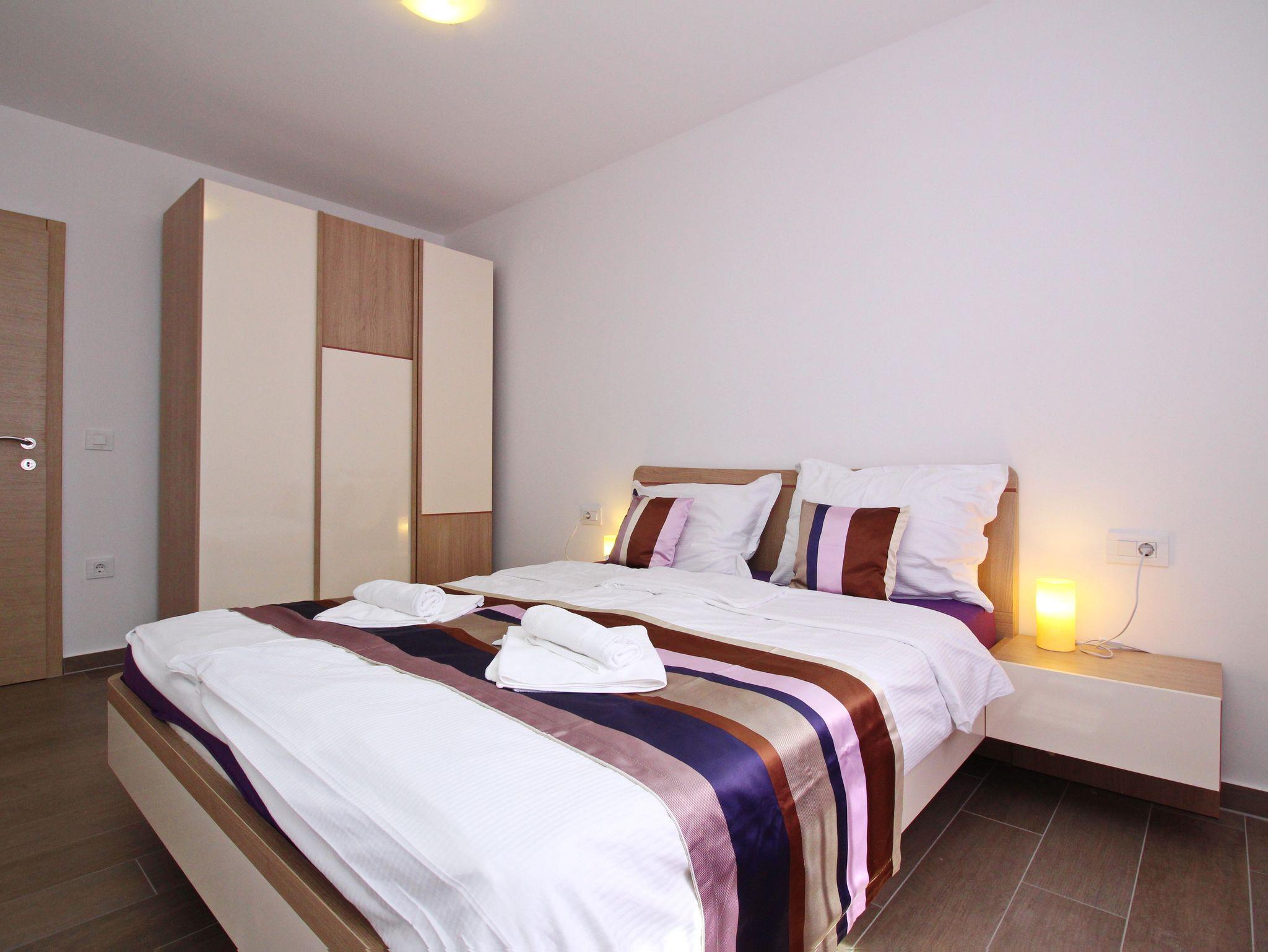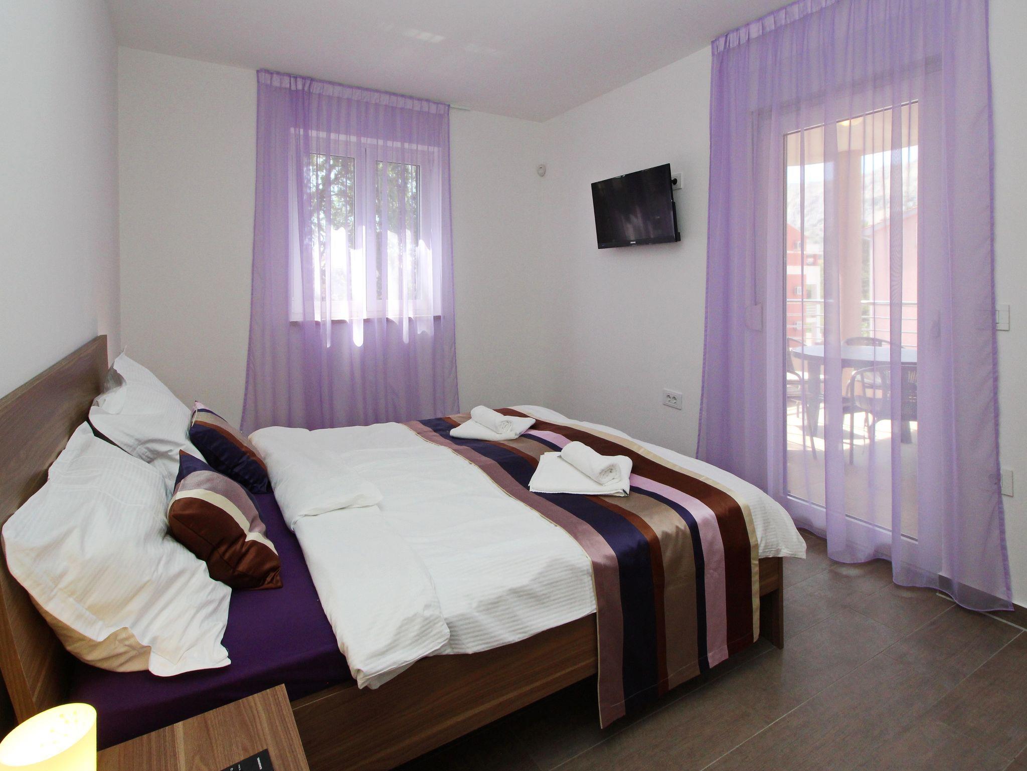 Ferienwohnung bietet Platz für 6 Gäste. Die Betten sind in Schlafzimmern, die es 2 gibt, und in Wohnzimmer, innerhalb einer Gesamtfläche von 63m2, angeordnet. Die Gäste haben eine eigene Terrasse zur Verfügung, auf der sie in warmen Sommernächten genießen können. In der Unterkunftseinheit besteht die Möglichkeit des Mitbringens von Haustieren gegen Aufpreis. IM PREIS INBEGRIFFEN: Kurtaxe, Endreinigung, Klimatisierung, Parkplatz, Internet. VERBINDLICHE ZUSÄTZLICHE KOSTEN: Aufzahlung für Kurzaufenthalte (prozentualer Zuschlag pro Nächtigungsanzahl: 30% - 1, 20% - 2, 10% - 3). UNVERBINDLICHE ZUSÄTZLICHE KOSTEN: Haustiere (10,00 € pro Nacht). Die Verfügbarkeit zusätzlicher Dienstleistungen in Ihrem reservierten Termin und die Preise derselben (falls nicht aufgeführt) müssen im Voraus überprüft werden. Zusätzliche Dienstleistungen die in der Zahlungsaufforderung nicht aufgeführt sind werden direkt beim Vermieter bezahlt, angenommen der Gast nutzt auch diese.
