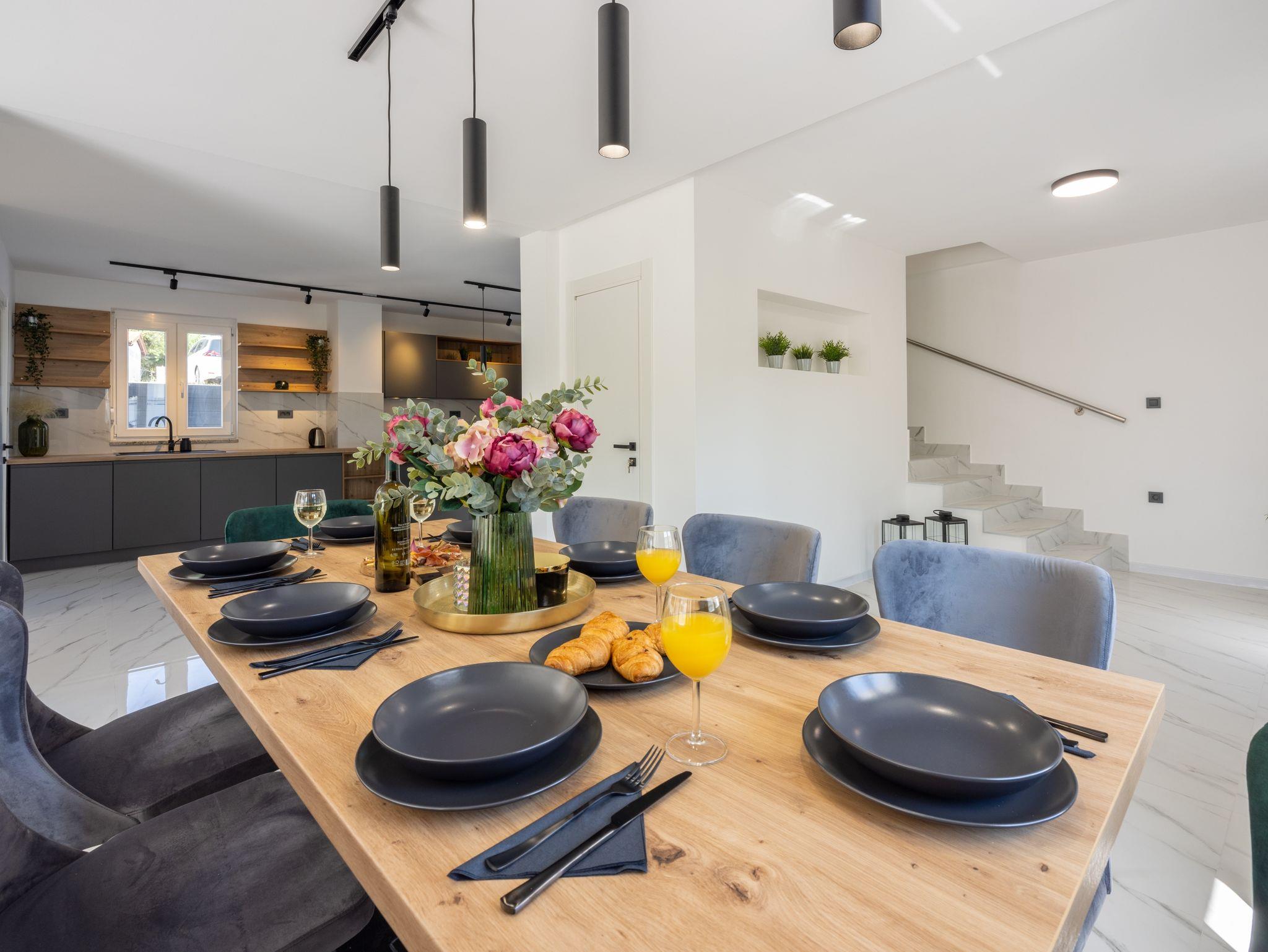 Haus bietet Platz für 8 Gäste. Die Betten sind in Schlafzimmern, die es 4 gibt, innerhalb einer Gesamtfläche von 141m2, angeordnet. Die Gäste haben einen eigenen Balkon zur Verfügung, auf der sie in warmen Sommernächten genießen können. Das Haus bietet Meerblick. Für vollen Genuss und Entspannung gibt es einen privaten Grill für Gäste dieser Unterkunft. Während ihres Aufenthalts können sich Gäste im privaten Schwimmbad entspannen. IM PREIS INBEGRIFFEN: Kurtaxe, Endreinigung, Klimatisierung, Pool, Parkplatz, Internet, Bügeleisen, Bügelbrett, Föhn. Die Verfügbarkeit zusätzlicher Dienstleistungen in Ihrem reservierten Termin und die Preise derselben (falls nicht aufgeführt) müssen im Voraus überprüft werden. Zusätzliche Dienstleistungen die in der Zahlungsaufforderung nicht aufgeführt sind werden direkt beim Vermieter bezahlt, angenommen der Gast nutzt auch diese. Ermäßigung auf den Grundpreis: Gratistag 14=13 (bei einem Aufenthalt von 14 Tagen oder mehr erhalten Sie einen Gratistag für den Aufenthalt bis 31.12.26).