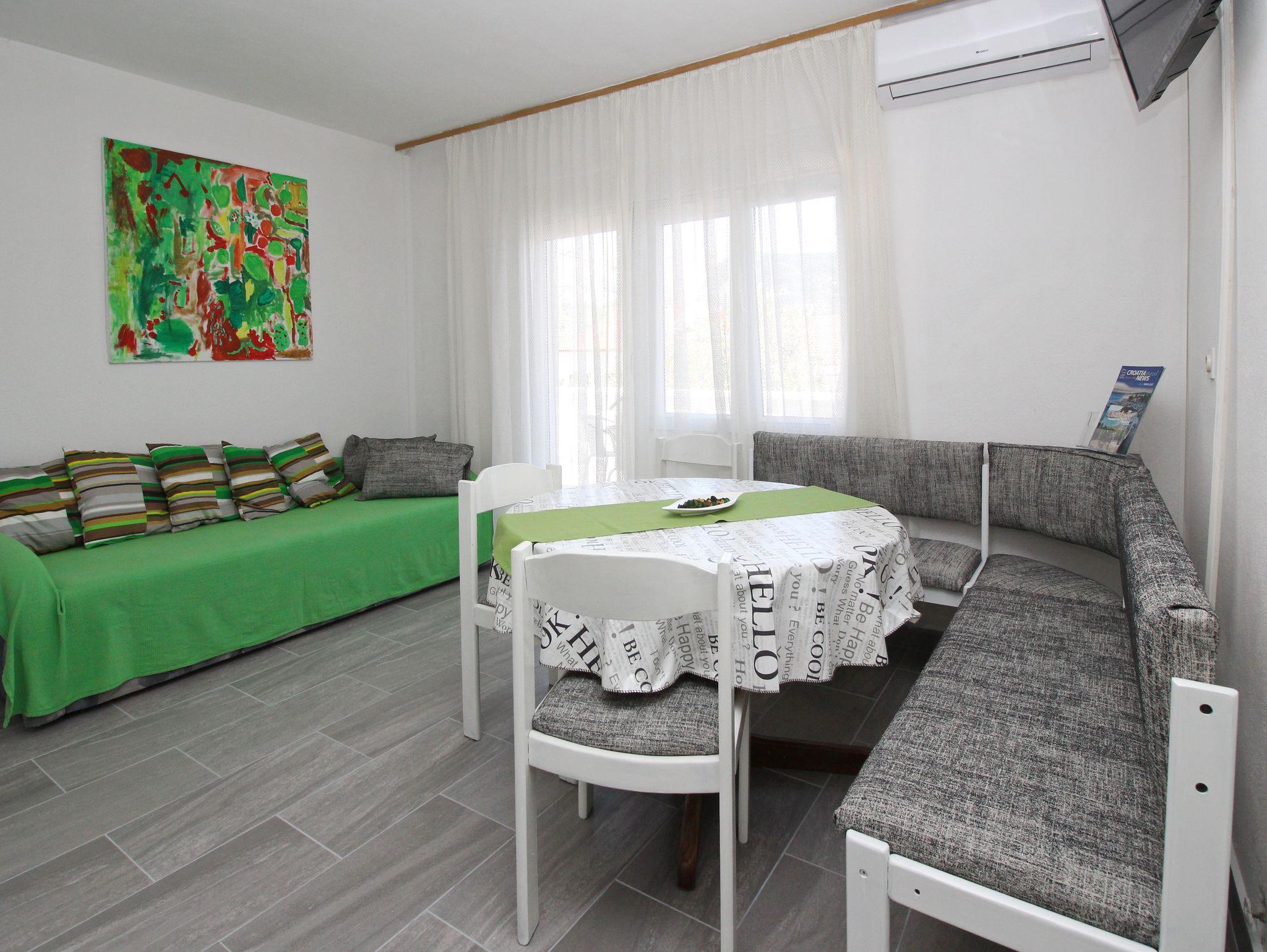 Ferienwohnung bietet Platz für 6 Gäste. Die Betten sind in Schlafzimmern, die es 2 gibt, und in Wohnzimmer, innerhalb einer Gesamtfläche von 41m2, angeordnet. Die Gäste haben eine eigene Terrasse zur Verfügung, auf der sie in warmen Sommernächten genießen können. In der Unterkunftseinheit besteht die Möglichkeit des Mitbringens von Haustieren gegen Aufpreis. IM PREIS INBEGRIFFEN: Kurtaxe, Endreinigung, Klimatisierung, Parkplatz, Internet. VERBINDLICHE ZUSÄTZLICHE KOSTEN: Aufzahlung für Kurzaufenthalte (prozentualer Zuschlag pro Nächtigungsanzahl: 30% - 1, 20% - 2, 10% - 3). UNVERBINDLICHE ZUSÄTZLICHE KOSTEN: Haustiere (19,00 € pro Nacht). Die Verfügbarkeit zusätzlicher Dienstleistungen in Ihrem reservierten Termin und die Preise derselben (falls nicht aufgeführt) müssen im Voraus überprüft werden. Zusätzliche Dienstleistungen die in der Zahlungsaufforderung nicht aufgeführt sind werden direkt beim Vermieter bezahlt, angenommen der Gast nutzt auch diese.