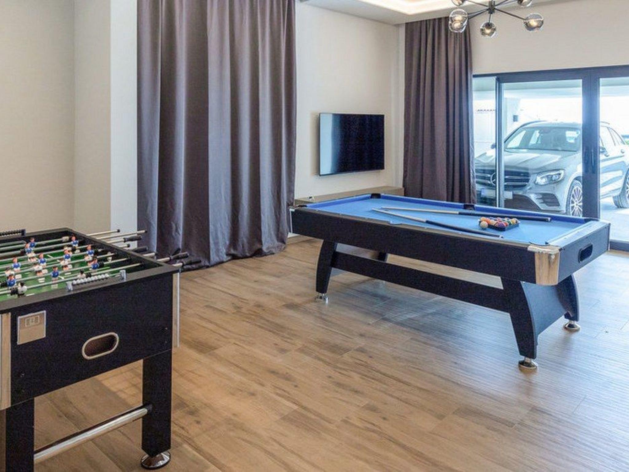 Inside, you will find well thought-out furnishings that fulfil every requirement. With a total of four bedrooms and six bathrooms, the house offers enough space for up to eight people, making it the ideal choice for larger families or groups. The comfort features also include amenities such as a dishwasher, air conditioning in all rooms and entertainment options such as billiards, making your stay even more enjoyable. Thanks to the comprehensive facilities, this holiday home leaves nothing to be desired.