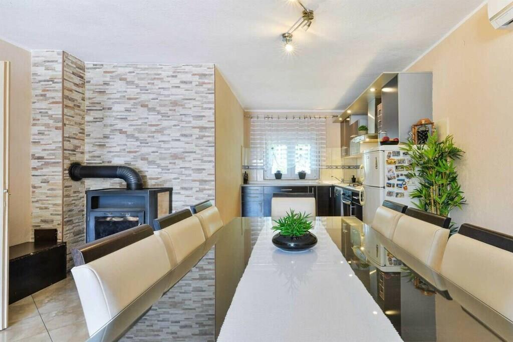 Das Ferienhaus Meri wird vollständig als geräumiges Haus von 120m² vermietet. Das Haus ist mit drei Schlafzimmern ausgestattet, von denen zwei Zimmer mit Doppelbetten und ein Zimmer mit einem Einzelbett und einem Arbeitstisch ausgestattet sind. Ein großes Hauptbadezimmer mit einer Waschmaschine, eine kleine Gästetoilette, eine voll ausgestattete Küche, ein geräumiges Esszimmer und ein Wohnzimmer. Das Haus ist klimatisiert und gut ausgestattet. Draußen gibt es einen Swimmingpool und eine Terrasse, um das Essen zu genießen und Kontakte zu knüpfen. Innerhalb des Hofes befindet sich ein großer Parkplatz für Autos und Fahrräder sowie ein Platz zum Spielen für Kinder (Trampolin).