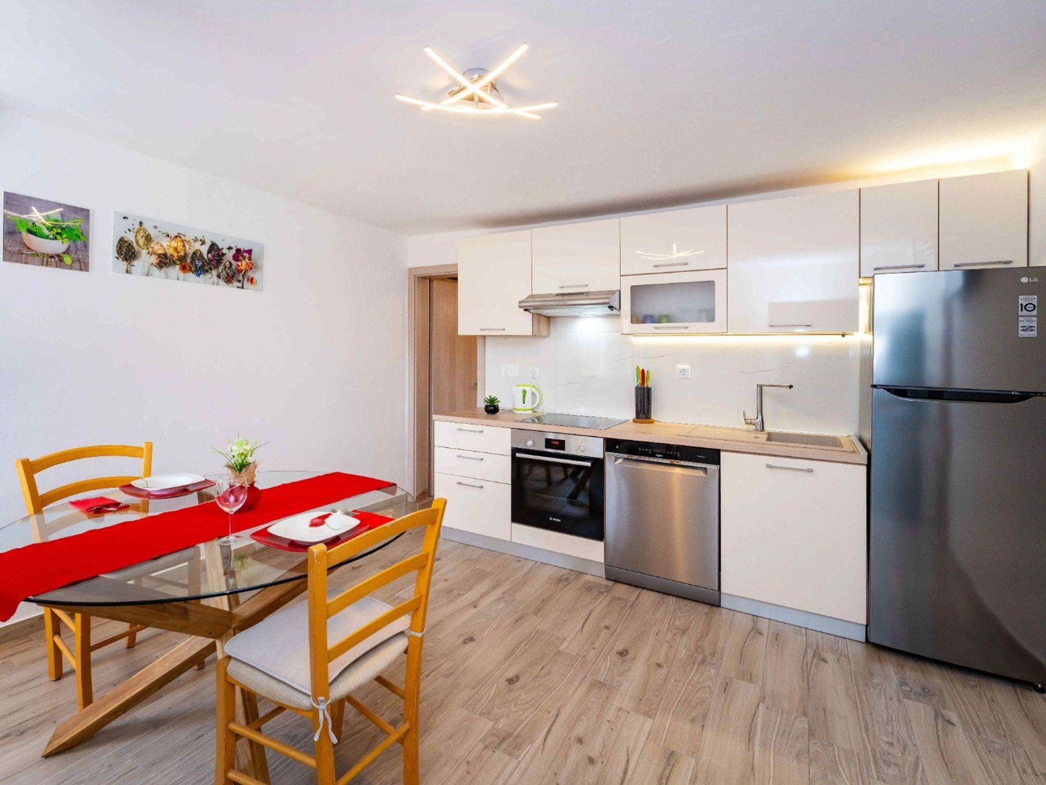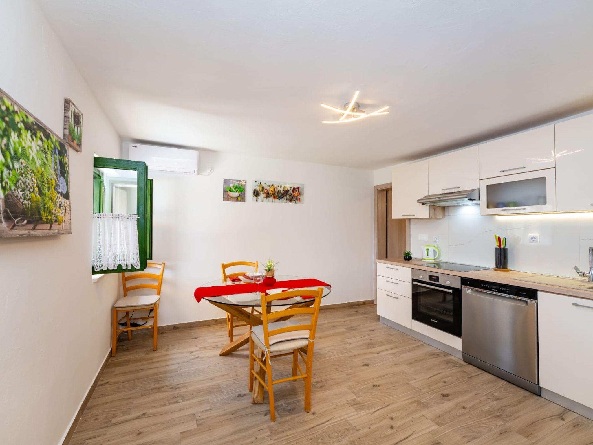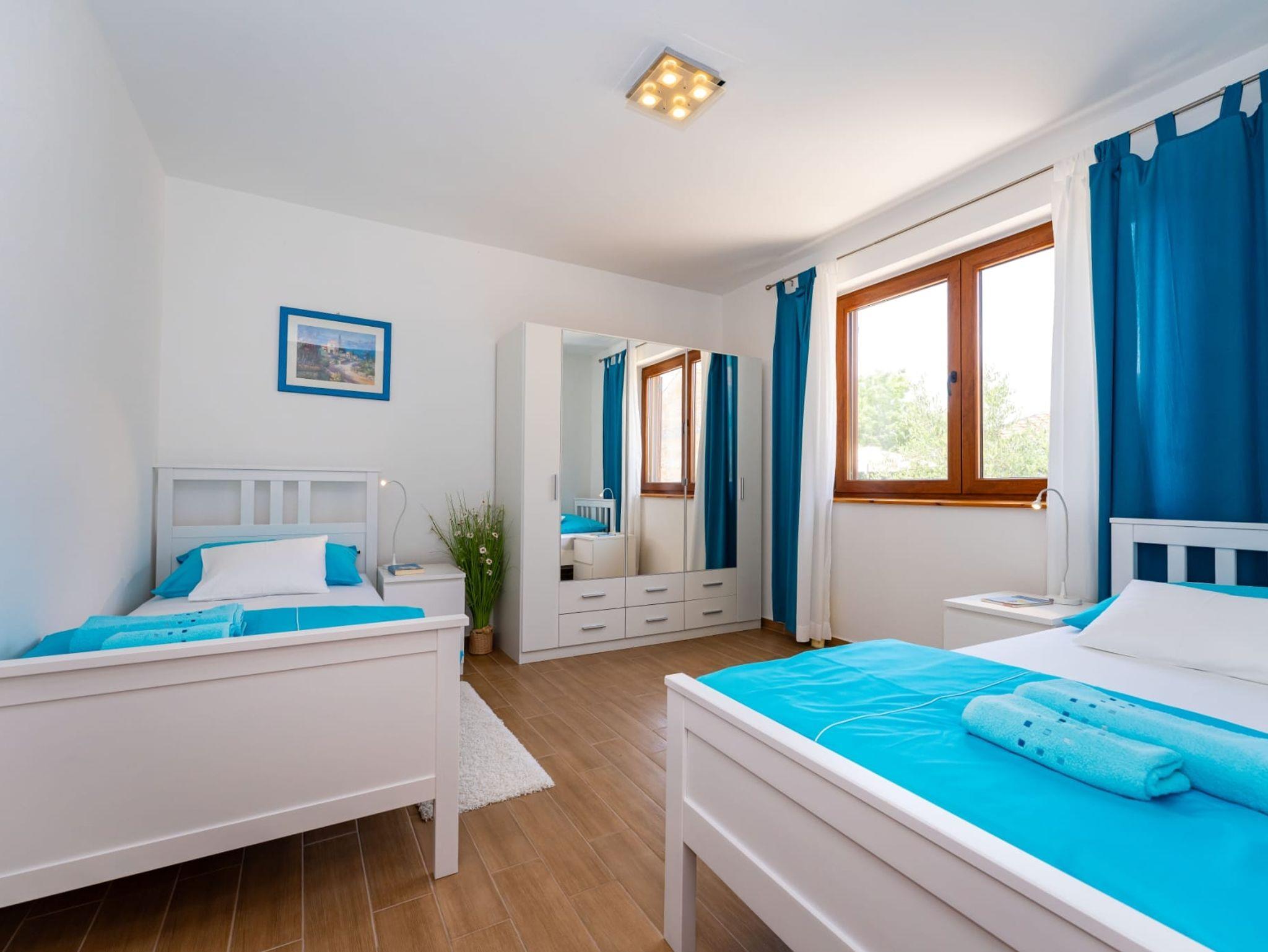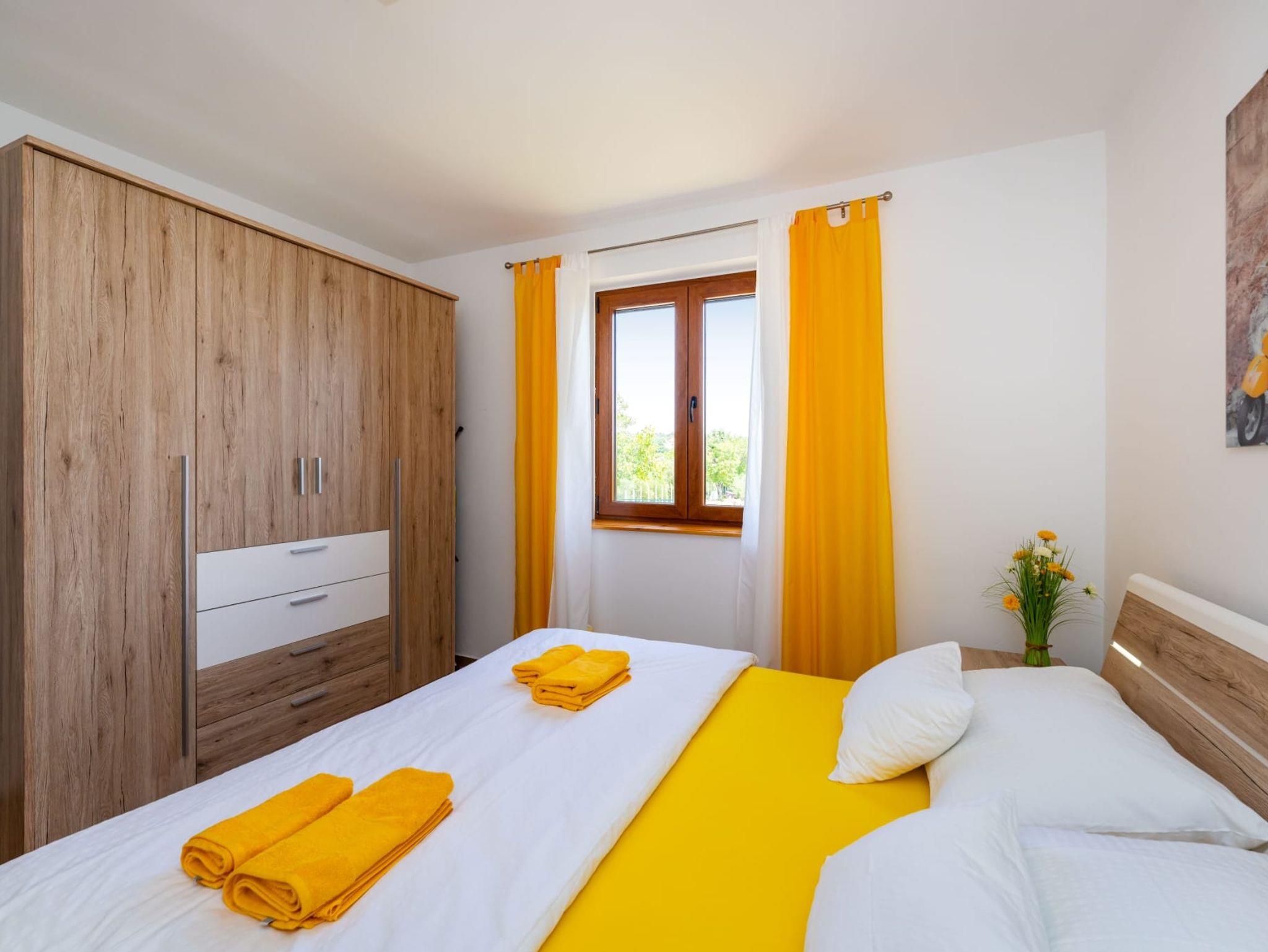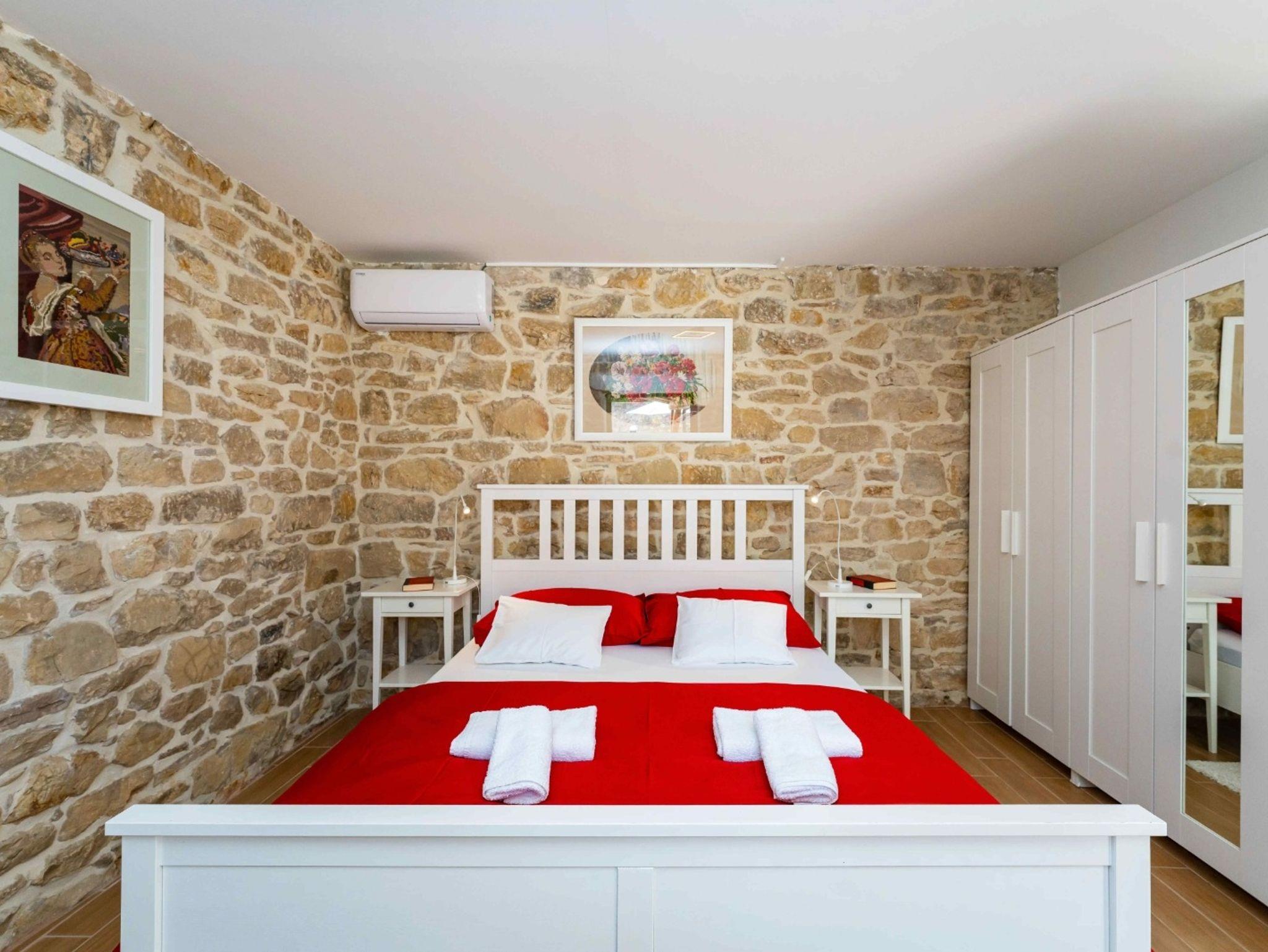 Haus bietet Platz für 8 Gäste. Die Betten sind in Schlafzimmern, die es 4 gibt, innerhalb einer Gesamtfläche von 124m2, angeordnet. Die Gäste haben eine eigene Terrasse zur Verfügung, auf der sie in warmen Sommernächten genießen können. Für vollen Genuss und Entspannung gibt es einen privaten Grill für Gäste dieser Unterkunft. Während ihres Aufenthalts können Gäste das gemeinsam zur Nutzung stehende Schwimmbad benutzen. In der Unterkunftseinheit besteht die Möglichkeit des Mitbringens von Haustieren, und die Dienstleistung ist im Preis der Unterkunft enthalten. IM PREIS INBEGRIFFEN: Kurtaxe, Endreinigung, Klimatisierung, Pool, Parkplatz, Internet, Haustiere, Kinderbett, Zusatzbett, Bügeleisen, Bügelbrett, Föhn, Sonnenschirm, Liegestühle. Die Verfügbarkeit zusätzlicher Dienstleistungen in Ihrem reservierten Termin und die Preise derselben (falls nicht aufgeführt) müssen im Voraus überprüft werden. Zusätzliche Dienstleistungen die in der Zahlungsaufforderung nicht aufgeführt sind werden direkt beim Vermieter bezahlt, angenommen der Gast nutzt auch diese.