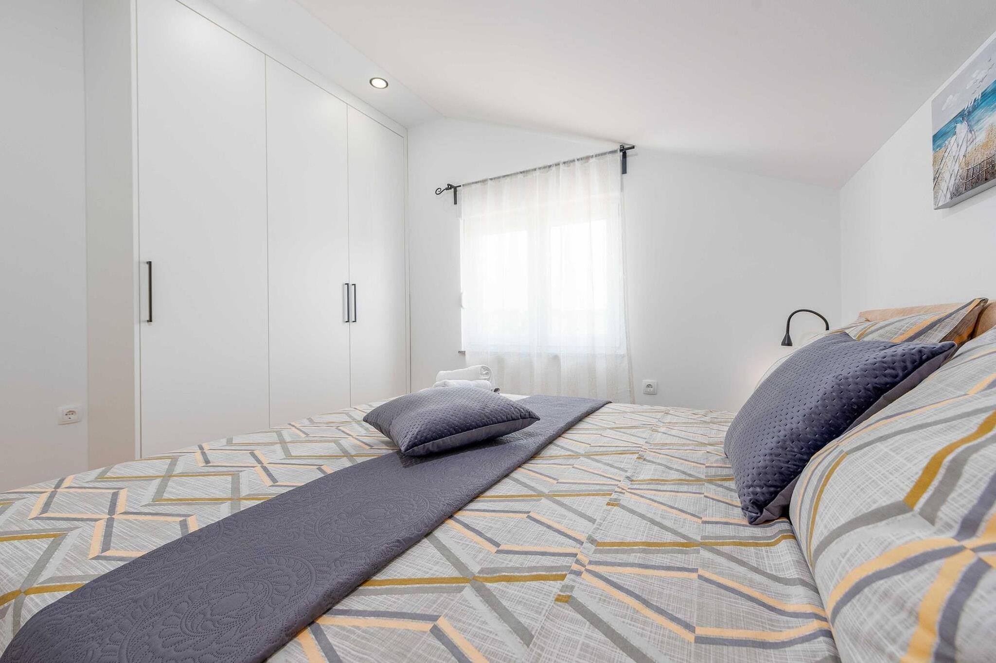 The house in Benkovacko Selo has 4 bedrooms and capacity for 10 persons. Accommodation of 200 m², It has waterfront and mountain. The property is located 1 km supermarket, 1 km the restaurant, 2 km coffee shop, 2 km bus station "Benkovac", 10 km rock beach "Karin", 20 km city "Biograd na Moru", 20 km nature reserve "Nature Park Vrana Lake", 20 km international airport "Zadar International Airport", 35 km city "Zadar", 35 km hospital "Zadar hospital", 45 km nature reserve "National park Krka", 50 km nature reserve "National Park Paklenica". The accommodation is equipped with the following items: garden, outdoor furniture, fenced plot, 30 m² terrace, washing machine, barbecue, fireplace, iron, safe, internet (Wi-Fi), hair dryer, balcony, children area, gym / fitness centre, sauna, hot tub, air conditioning in the living room, swimming pool private, heated swimming pool private, open-air parking in the same building, 4 electric anti-mosquito devices, mosquito nets throughout the accommodation, 2 TVs, satellite tv (Languages: English). The open plan kitchen, electric, is equipped with refrigerator, microwave, oven, freezer, dishwasher, dishes/cutlery, kitchen utensils, coffee machine, toaster, kettle, juicer and stove.