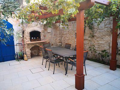 Spacious holiday flat for up to six people in a recently renovated (2017) old villa in the historic part of the village of Betina This cosily furnished holiday flat is located just 20 m from the sea, in the pedestrian zone. It is located in an over 160-year-old natural stone house, which is a listed building and was lovingly restored by hand in 2017. With its authentic and unusual appearance, reminiscent of the charm of the past, the house is also a frequent eye-catcher for passers-by and guests. It is built in a Mediterranean style, with thick walls to protect it from the heat.