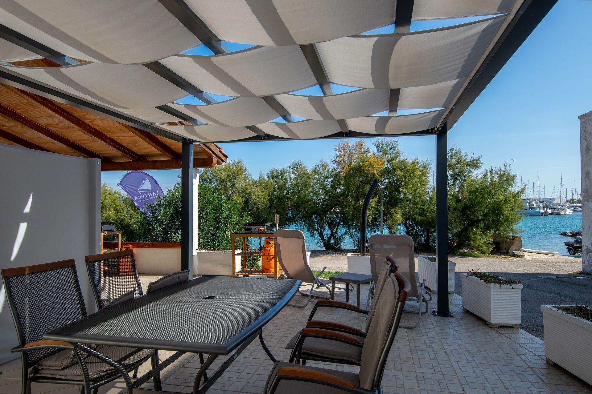 The holiday flat is located in a flat house on the sunny island of Murter, on the central part of the Adriatic coast of Croatia. The flat house is located directly on the beach.