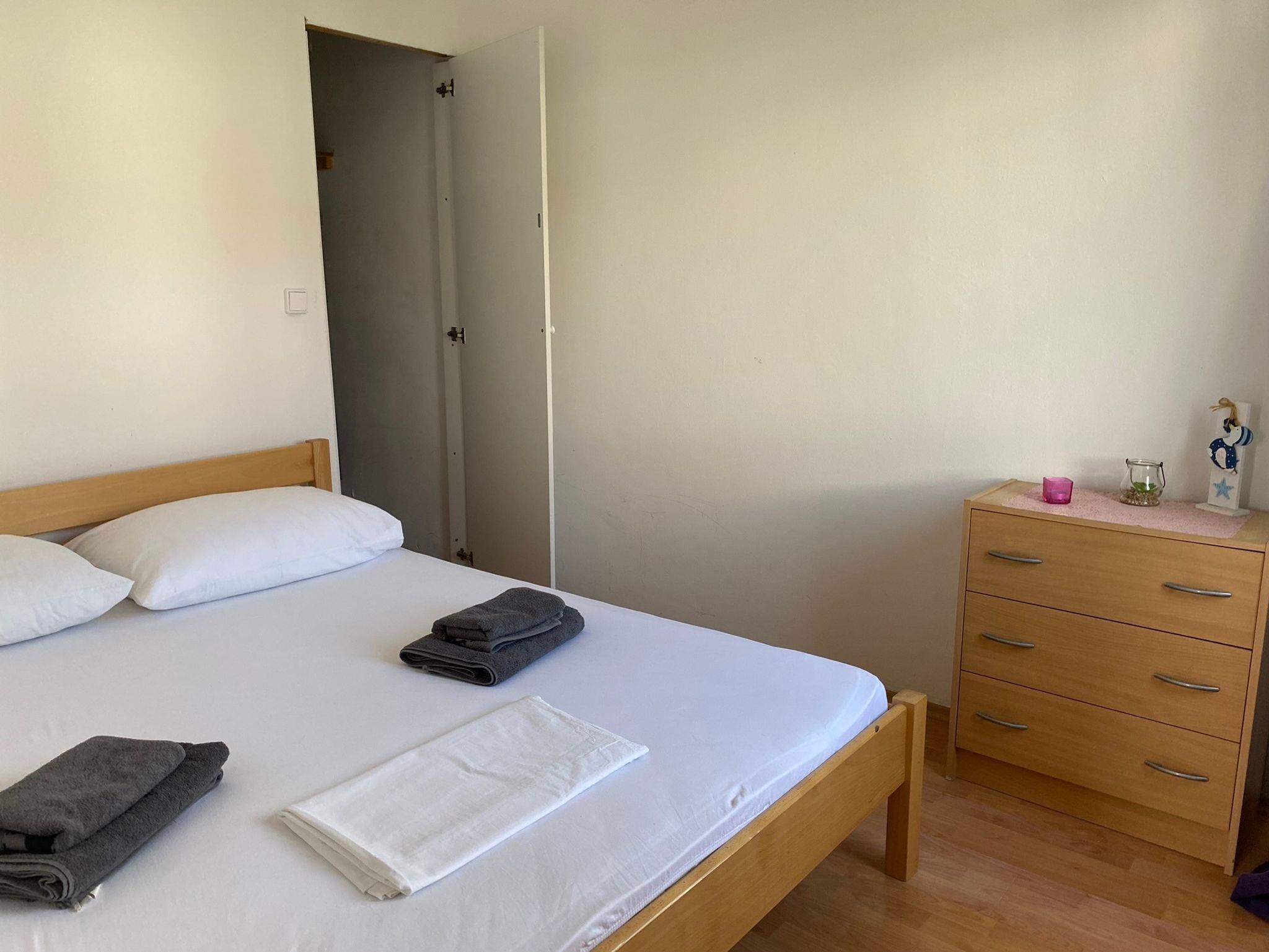 Ferienwohnung bietet Platz für 3 Gäste. Die Betten sind in Schlafzimmern, die es 1 gibt, und in Wohnzimmer, innerhalb einer Gesamtfläche von 24m2, angeordnet. Die Gäste haben einen eigenen Balkon zur Verfügung, auf der sie in warmen Sommernächten genießen können. In der Unterkunftseinheit besteht die Möglichkeit des Mitbringens von Haustieren gegen Aufpreis. IM PREIS INBEGRIFFEN: Kurtaxe, Endreinigung, Klimatisierung, Parkplatz, Internet, Bügeleisen, Föhn, Liegestühle. VERBINDLICHE ZUSÄTZLICHE KOSTEN: Aufzahlung für Kurzaufenthalte (prozentualer Zuschlag pro Nächtigungsanzahl: 30% - 1, 20% - 2, 10% - 3). UNVERBINDLICHE ZUSÄTZLICHE KOSTEN: Bootsanlegeplatz (10,00 € pro Nacht), Haustiere (5,00 € pro Nacht). Die Verfügbarkeit zusätzlicher Dienstleistungen in Ihrem reservierten Termin und die Preise derselben (falls nicht aufgeführt) müssen im Voraus überprüft werden. Zusätzliche Dienstleistungen die in der Zahlungsaufforderung nicht aufgeführt sind werden direkt beim Vermieter bezahlt, angenommen der Gast nutzt auch diese. Ermäßigung auf den Grundpreis: Gratistag 14=13 (bei einem Aufenthalt von 14 Tagen oder mehr erhalten Sie einen Gratistag für den Aufenthalt bis 31.12.26).