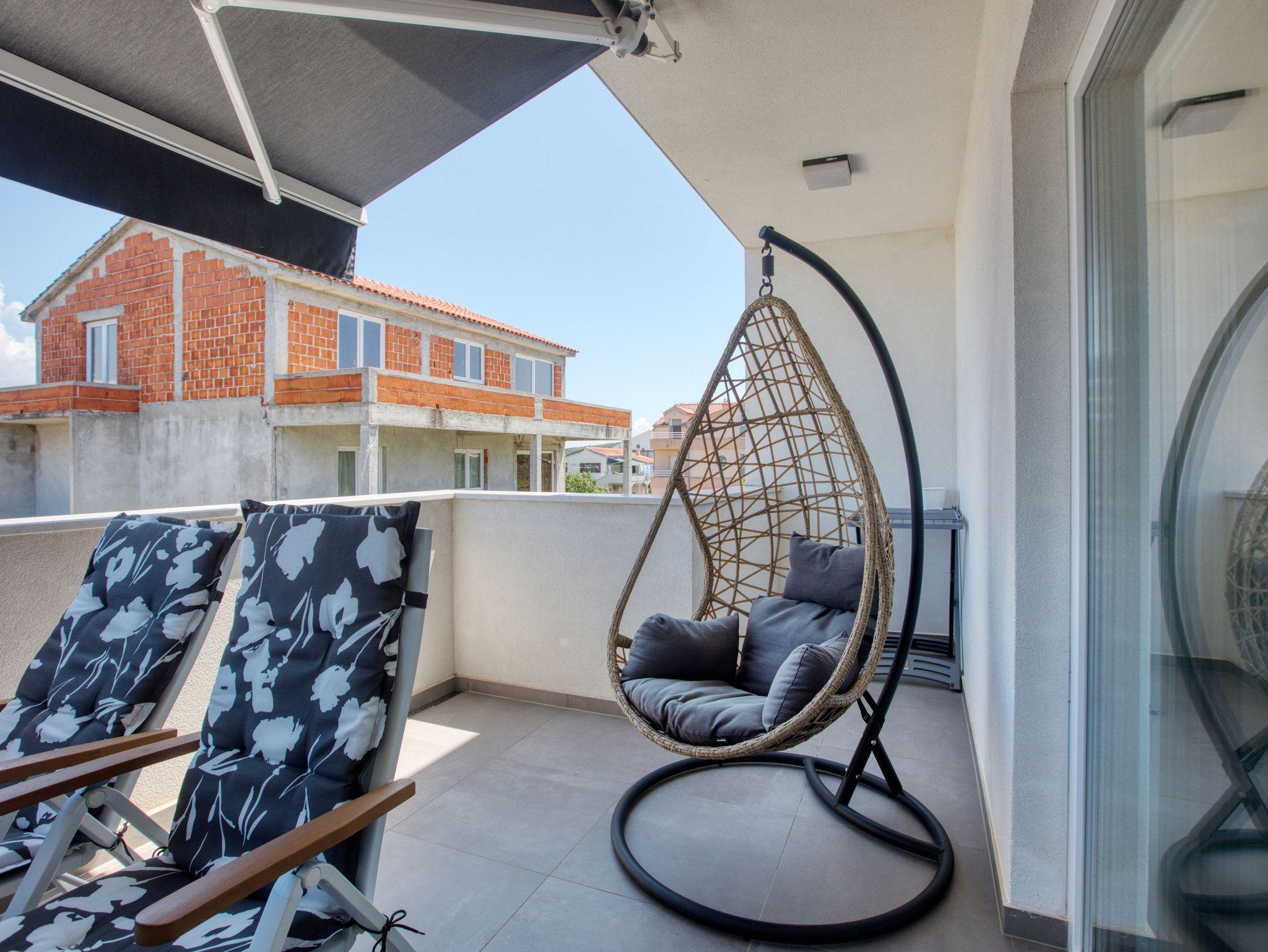 Ferienwohnung bietet Platz für 4 Gäste. Die Betten sind in Schlafzimmern, die es 1 gibt, und in Wohnzimmer, innerhalb einer Gesamtfläche von 47m2, angeordnet. Die Gäste haben eine eigene Terrasse zur Verfügung, auf der sie in warmen Sommernächten genießen können. Das Apartment bietet Meerblick. Es ist erlaubt, Speisen auf dem Gemeinschafts-Grill vorzubereiten. IM PREIS INBEGRIFFEN: Kurtaxe, Endreinigung, Klimatisierung, Parkplatz, Internet, Wäschewaschen, Kinderbett, Bügeleisen, Bügelbrett, Föhn, tragbarer Grill. VERBINDLICHE ZUSÄTZLICHE KOSTEN: Aufzahlung für Kurzaufenthalte (prozentualer Zuschlag pro Nächtigungsanzahl: 30% - 1, 20% - 2, 10% - 3). Die Verfügbarkeit zusätzlicher Dienstleistungen in Ihrem reservierten Termin und die Preise derselben (falls nicht aufgeführt) müssen im Voraus überprüft werden. Zusätzliche Dienstleistungen die in der Zahlungsaufforderung nicht aufgeführt sind werden direkt beim Vermieter bezahlt, angenommen der Gast nutzt auch diese. Ermäßigung auf den Grundpreis: Gratistag 21=19 (bei einem Aufenthalt von 21 Tagen oder mehr erhalten Sie 2 Gratistage für den Aufenthalt bis 31.12.26).