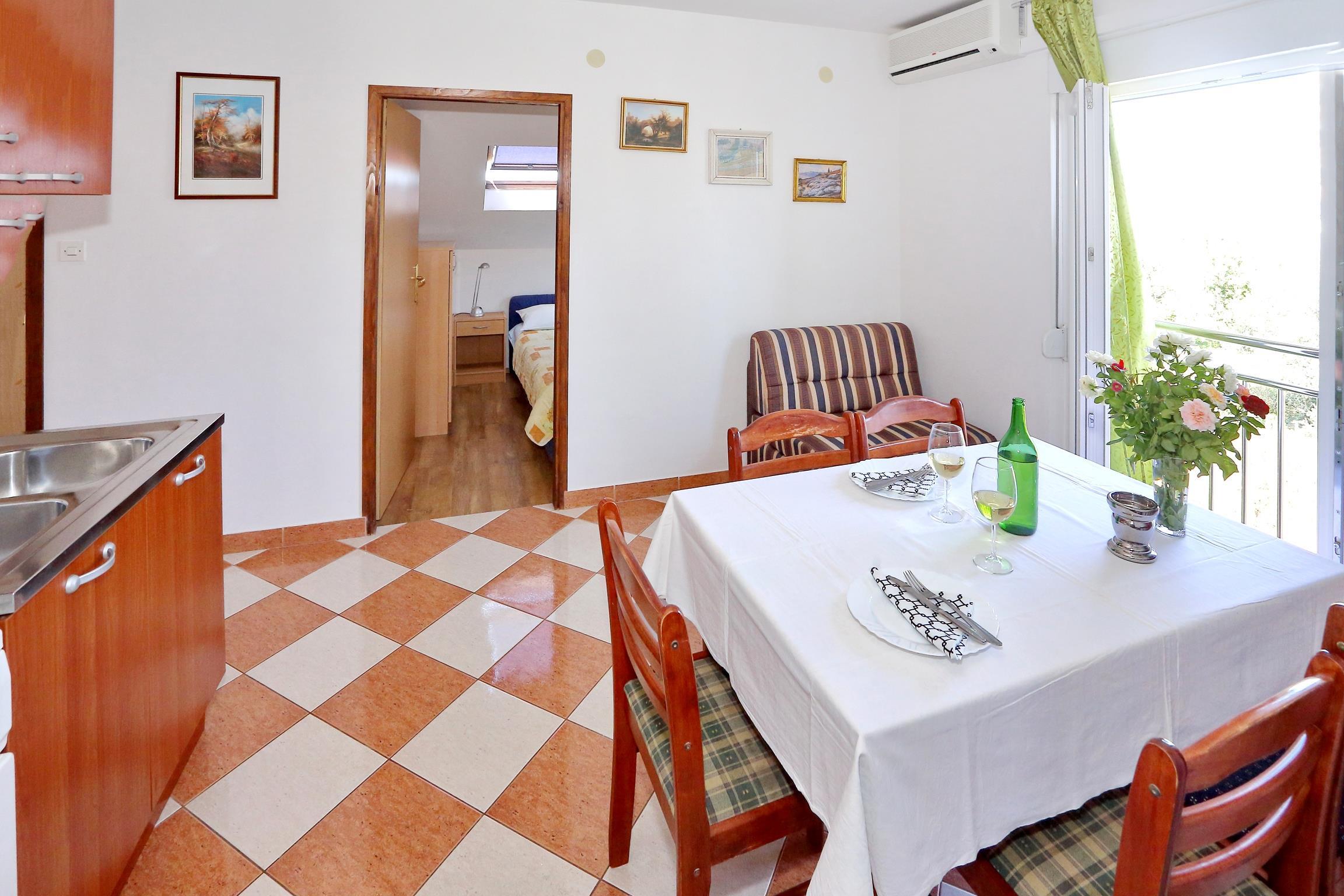 House 6160 in the town of Bibinje, Zadar - North Dalmatia has accommodation units of type Apartment (6) and is 420 m away from the sea. The nearest beach to this accommodation is a pebble beach. As the house is divided into several accommodation units, other guests will most likely be present during your stay. The hosts will be in the house during your holiday. The house owner is under no obligation to accept additional persons and pets that were not stated in the reservation request and it is necessary to report them in advance.