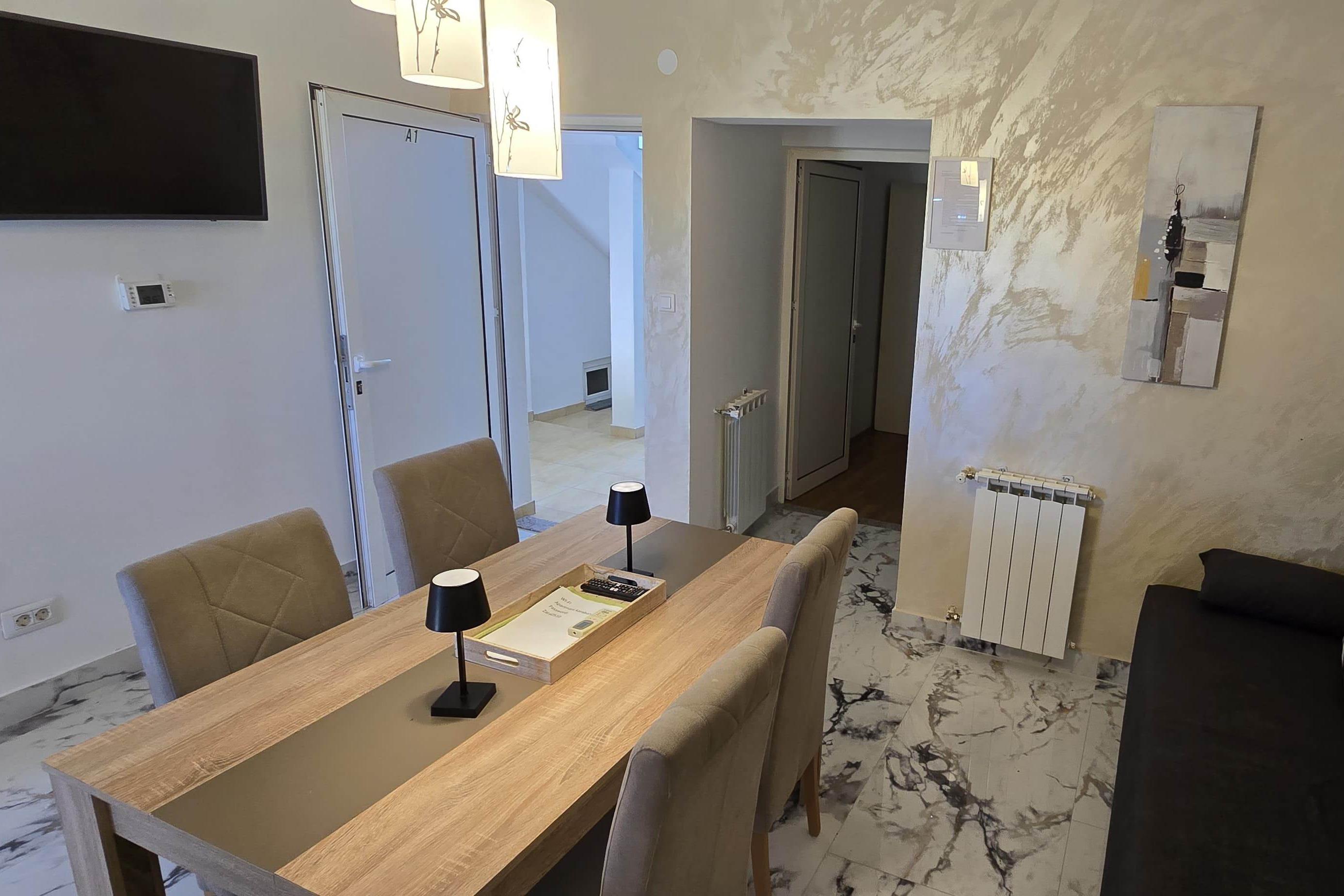 Apartment can accommodate 4 guests. Beds are situated in 1 sleeping rooms, but also in the dining room, within 35m2. Guests can use a private terrace to enjoy the warm summer evenings. Food can be prepared using barbecue which is shared with other guests too. Shared pool is on disposal during stay.