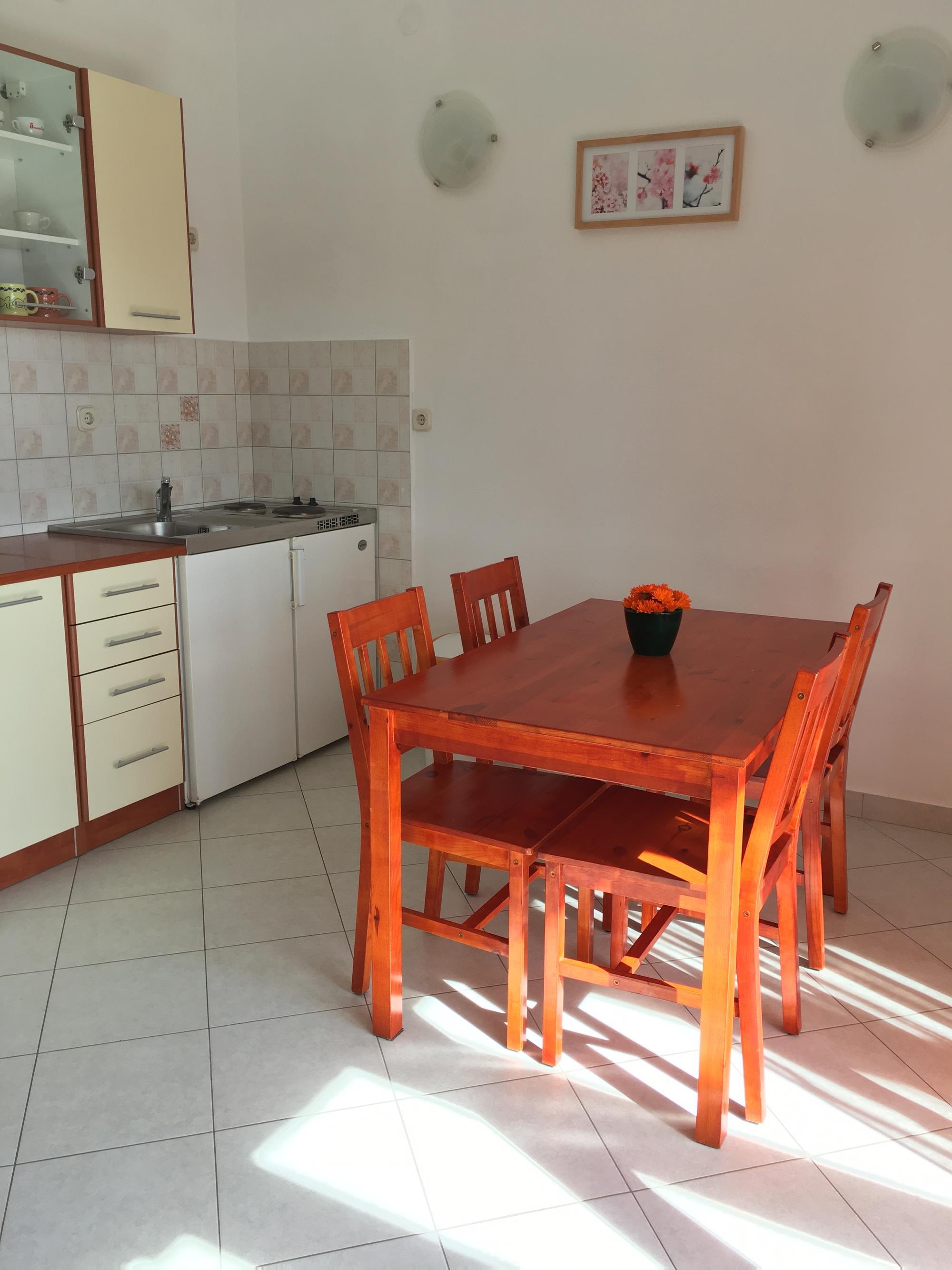 Apartment can accommodate 4 guests. Beds are situated in 1 sleeping rooms, but also in the living room, within 50m2. Guests can use a private terrace to enjoy the warm summer evenings. The apartment offers the sea view. Food can be prepared using barbecue which is shared with other guests too.