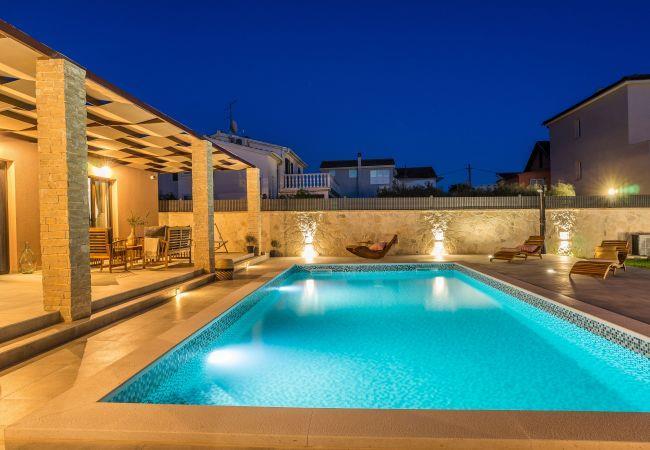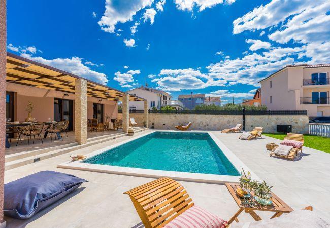 This beautiful one-story house is located in a charming and traditional place called Bibinje, which is 10 km from Zadar. You will never be bored in this tourist destination because the whole summer is full of events, folklore evenings, parties and concerts. The beaches continue one after the other along the coast and offer numerous restaurants and cafes for entertainment and refreshment. Throughout the town you have a number of restaurants and taverns with a rich offer of Mediterranean specialties. The house itself is 50 meters from the beach and offers direct access to the sea and an endless beach as far as the eye can see.