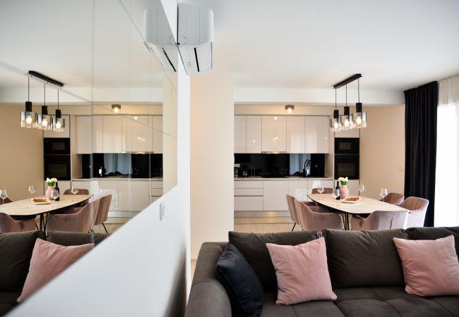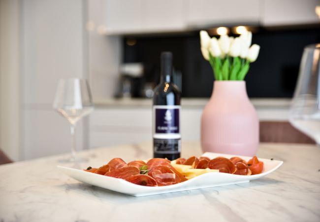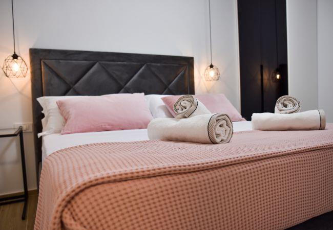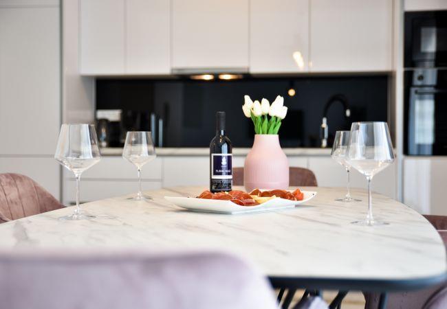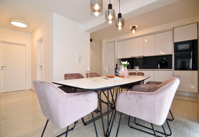 Apartment A2 is 83 m2 in size and is located on the 1st floor of the villa. The apartment is fully equipped and consists of 2 bedrooms with double beds and 2 bathrooms with shower. With a sofa bed in the living room, it is suitable for a group of 6 people. All furniture and appliances are of a high qiality La Perla is a newly built villa located in a small tourist town Bibinje, only 150 m from the local beach. The villa consists of 4 modern apartments with a shared pool on the roof of the house, and a roof terrace with garden furniture and deck longes overlooking the sea. The pool is 32m2 large and heated.
