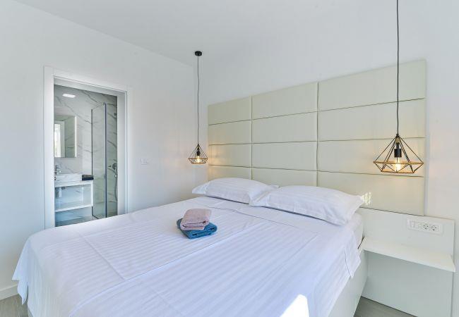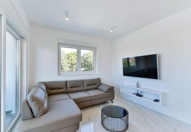 This brand new apartment is located in Bibinje, only 5 km from the center of the city of Zadar. It is part of a 3 unit complex with a communal pool and is located on the first floor.
