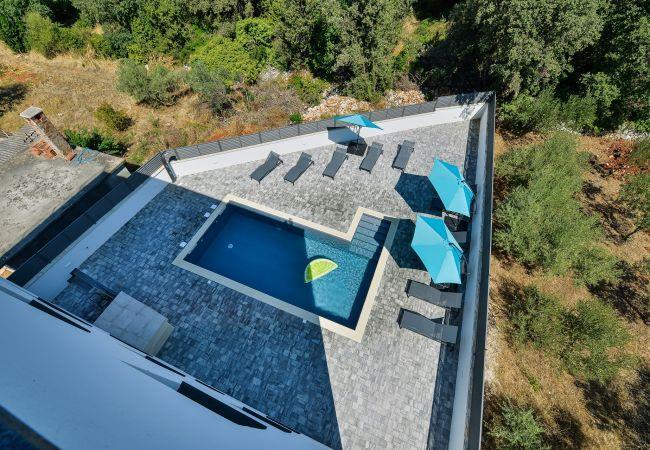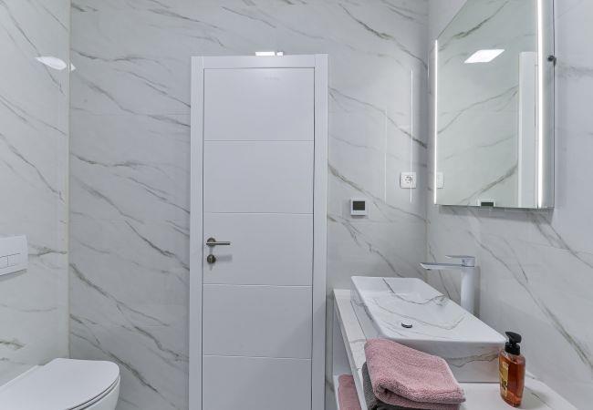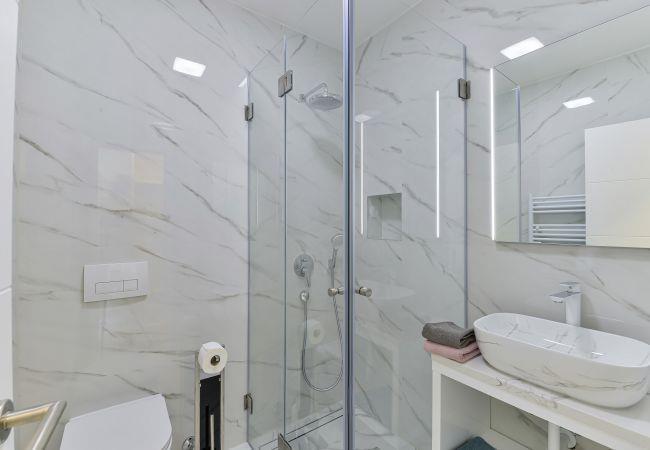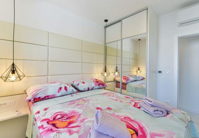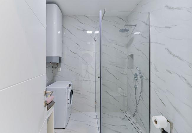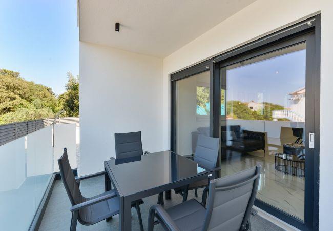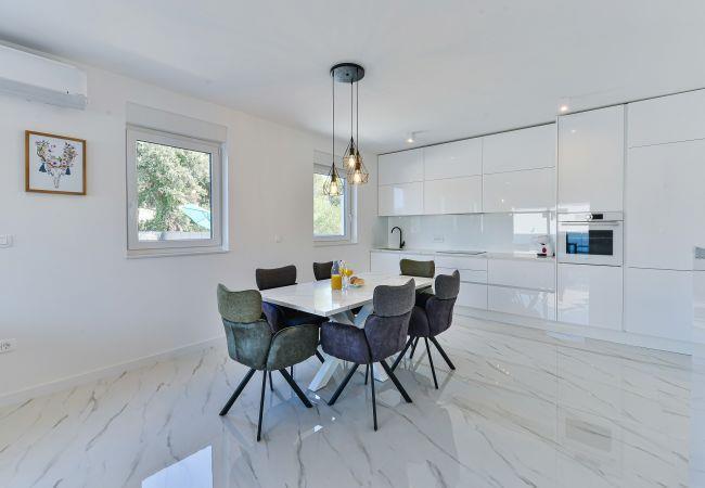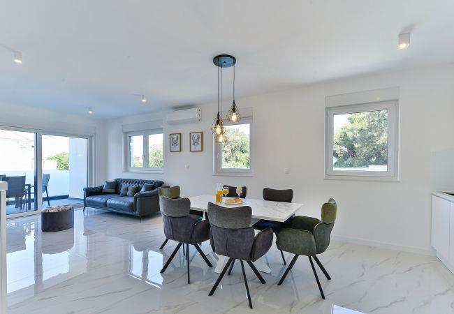 This brand new apartment is located in Bibinje, only 5 km from the center of the city of Zadar. It is part of a 3 unit complex with a communal pool and is on the ground floor separated by a private entrance.