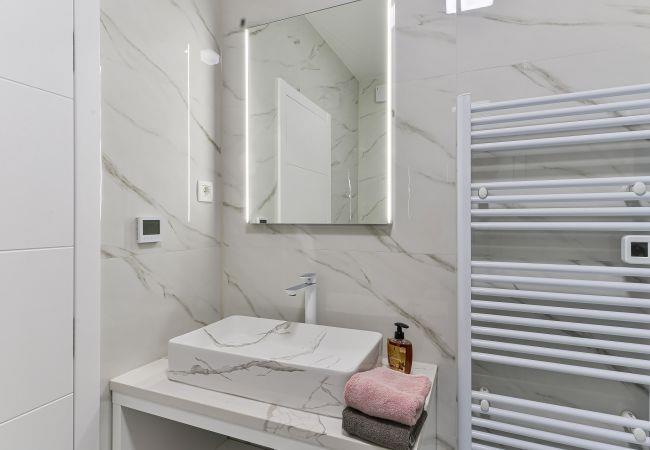 The apartment has 3 rooms with double beds, all air-conditioned, making it a perfect place for a traveling group of 6 people. One room has its own bathroom and the other two rooms share a bathroom. The living room, kitchen and dining room have an open concept that offers a space to spend quality time together.