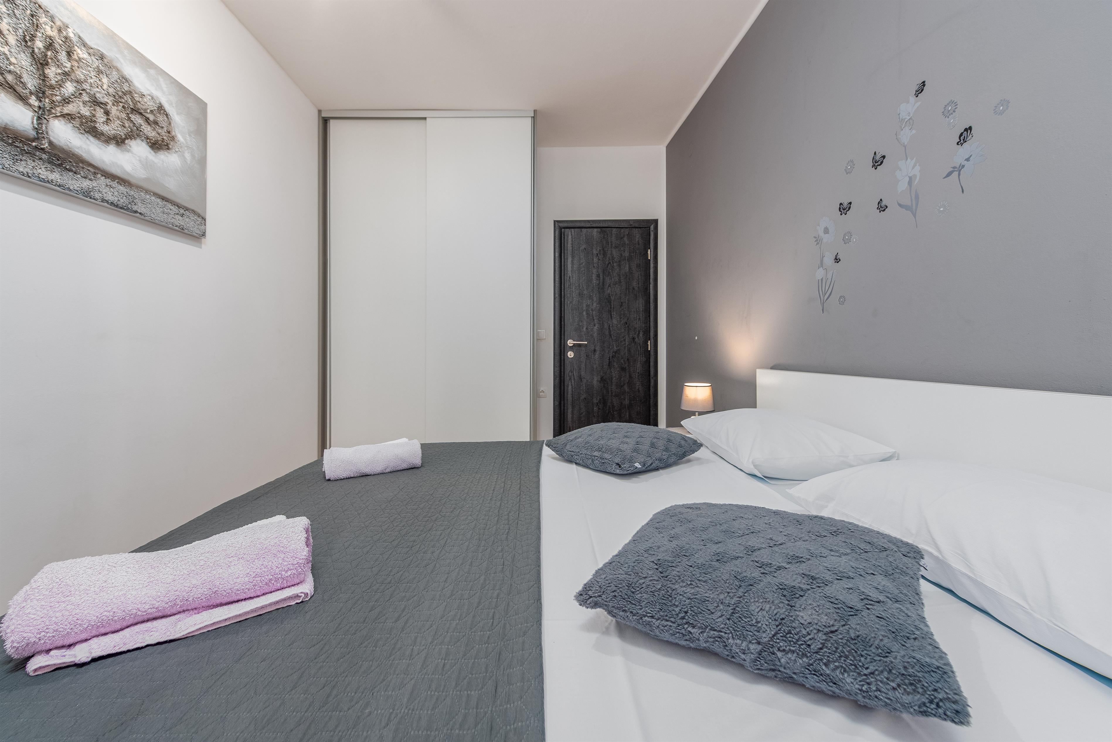 Apartment can accommodate 6 guests. Beds are situated in 2 sleeping rooms, but also in the living room, within 63m2. Guests can use a private terrace to enjoy the warm summer evenings. Food can be prepared using barbecue which is shared with other guests too. This accommodation unit welcomes pets at an additional charge.