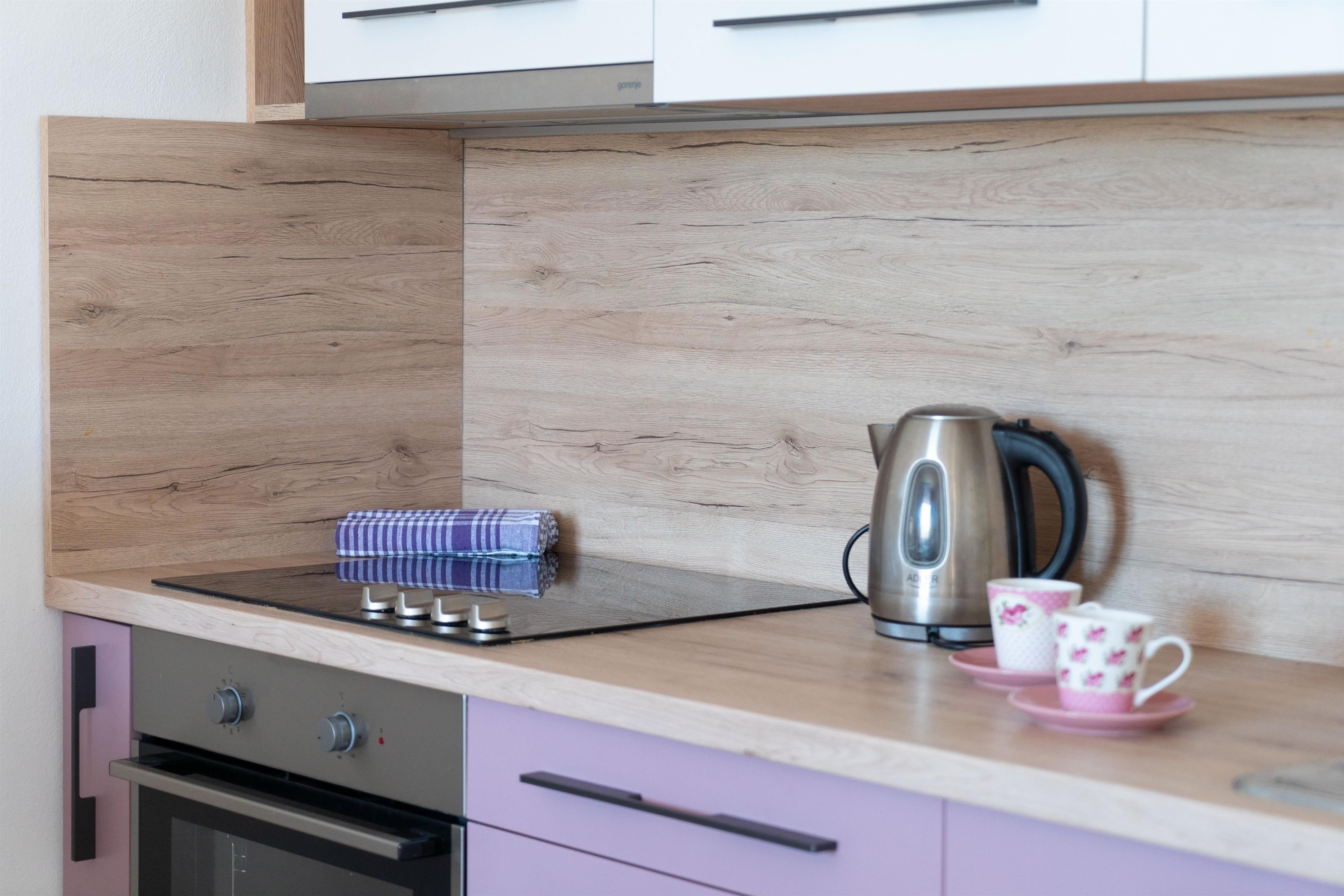 Kitchen (5 m2): Standard equipment: Refrigerator, Stove, Sink, Additional equipment: Combined refrigerator/freezer, Dishwasher, Oven, On request: Microwave oven, Water kettle