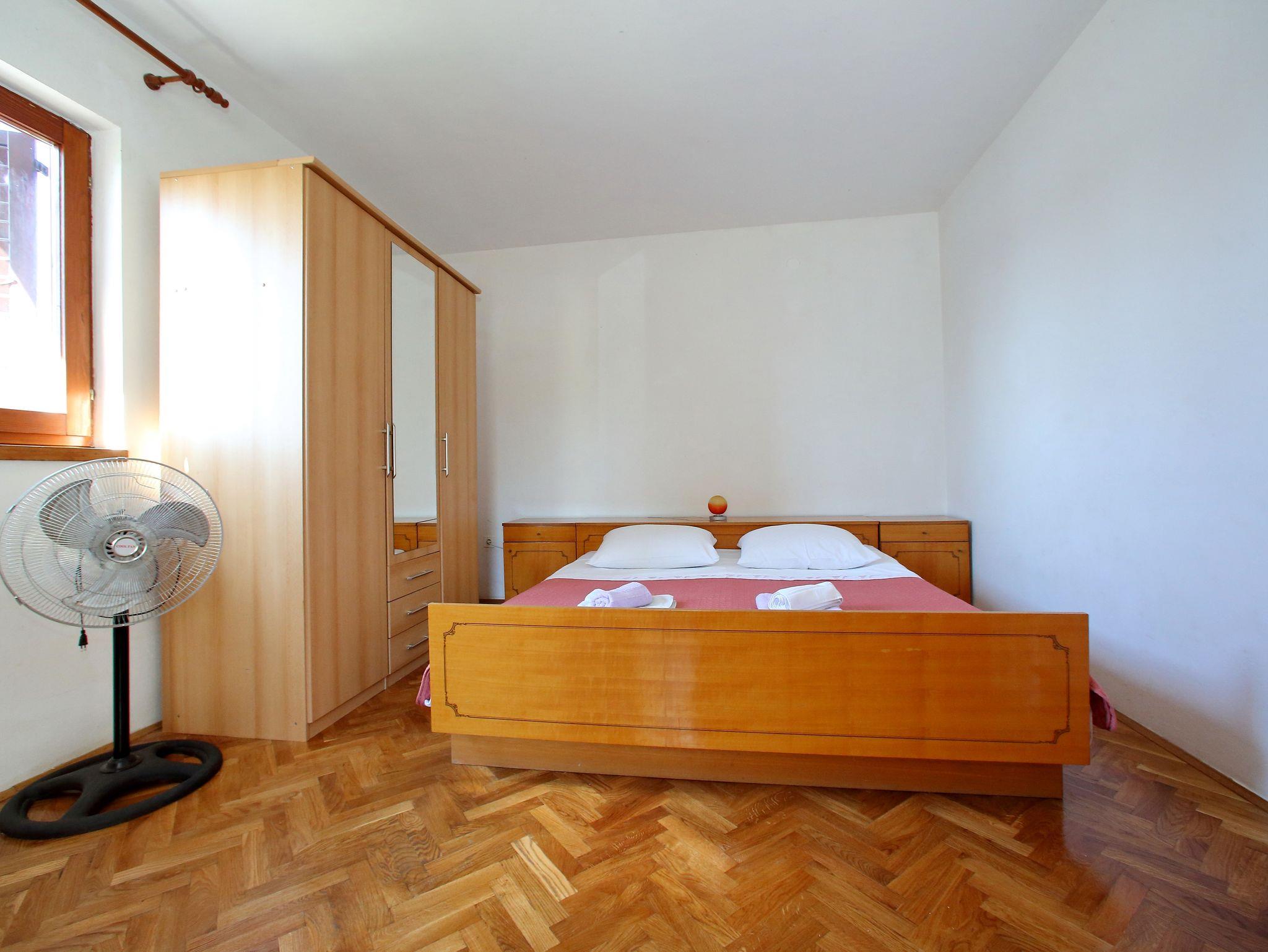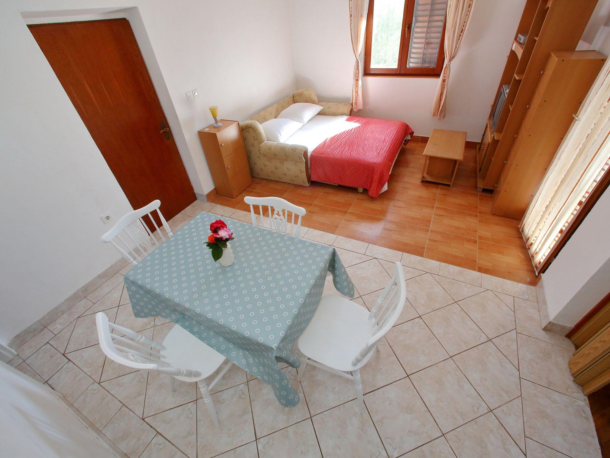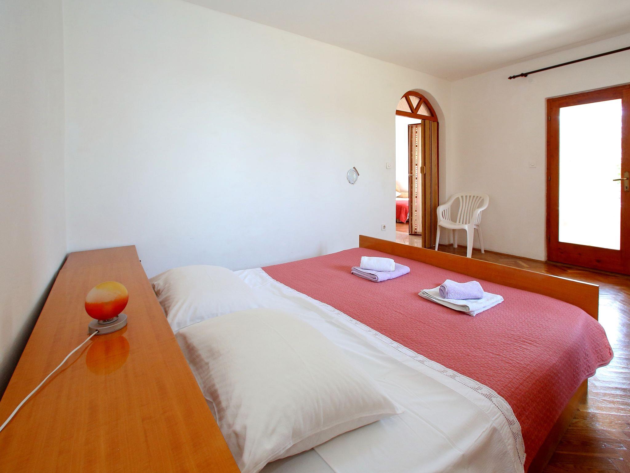 Ferienwohnung bietet Platz für 4 Gäste. Die Betten sind in Schlafzimmern, die es 1 gibt, und in Wohnzimmer, innerhalb einer Gesamtfläche von 44m2, angeordnet. Die Gäste haben eine eigene Terrasse zur Verfügung, auf der sie in warmen Sommernächten genießen können. Das Apartment bietet Meerblick. Es ist erlaubt, Speisen auf dem Gemeinschafts-Grill vorzubereiten. In der Unterkunftseinheit besteht die Möglichkeit des Mitbringens von Haustieren gegen Aufpreis. IM PREIS INBEGRIFFEN: Kurtaxe, Endreinigung, Parkplatz, Internet, tragbarer Grill. VERBINDLICHE ZUSÄTZLICHE KOSTEN: Aufzahlung für Kurzaufenthalte (prozentualer Zuschlag pro Nächtigungsanzahl: 30% - 1, 20% - 2, 10% - 3). UNVERBINDLICHE ZUSÄTZLICHE KOSTEN: Klimatisierung (5,00 € pro Nacht), Haustiere (5,00 € pro Nacht), Zusatzbett (5,00 € pro Nacht). Die Verfügbarkeit zusätzlicher Dienstleistungen in Ihrem reservierten Termin und die Preise derselben (falls nicht aufgeführt) müssen im Voraus überprüft werden. Zusätzliche Dienstleistungen die in der Zahlungsaufforderung nicht aufgeführt sind werden direkt beim Vermieter bezahlt, angenommen der Gast nutzt auch diese.