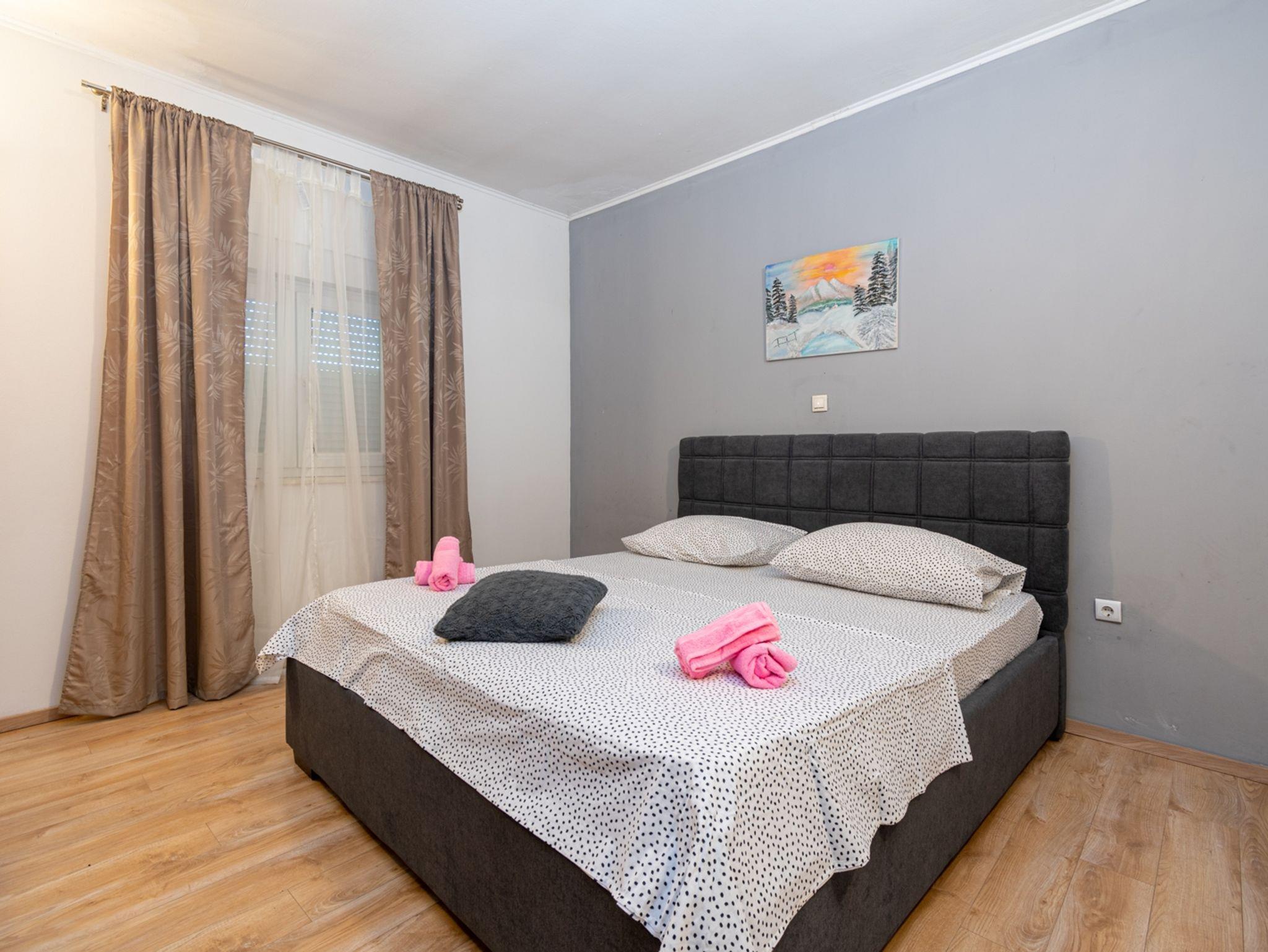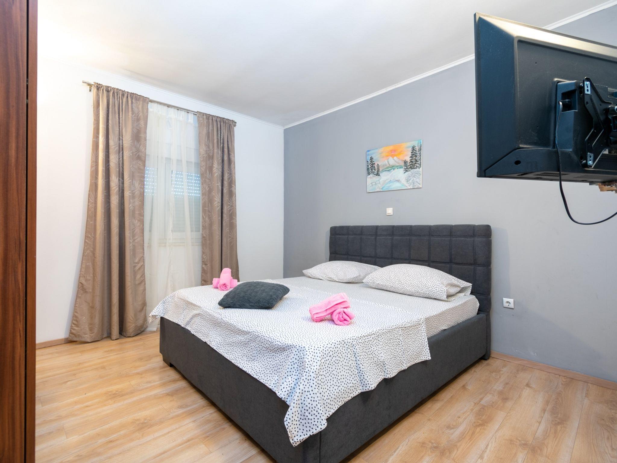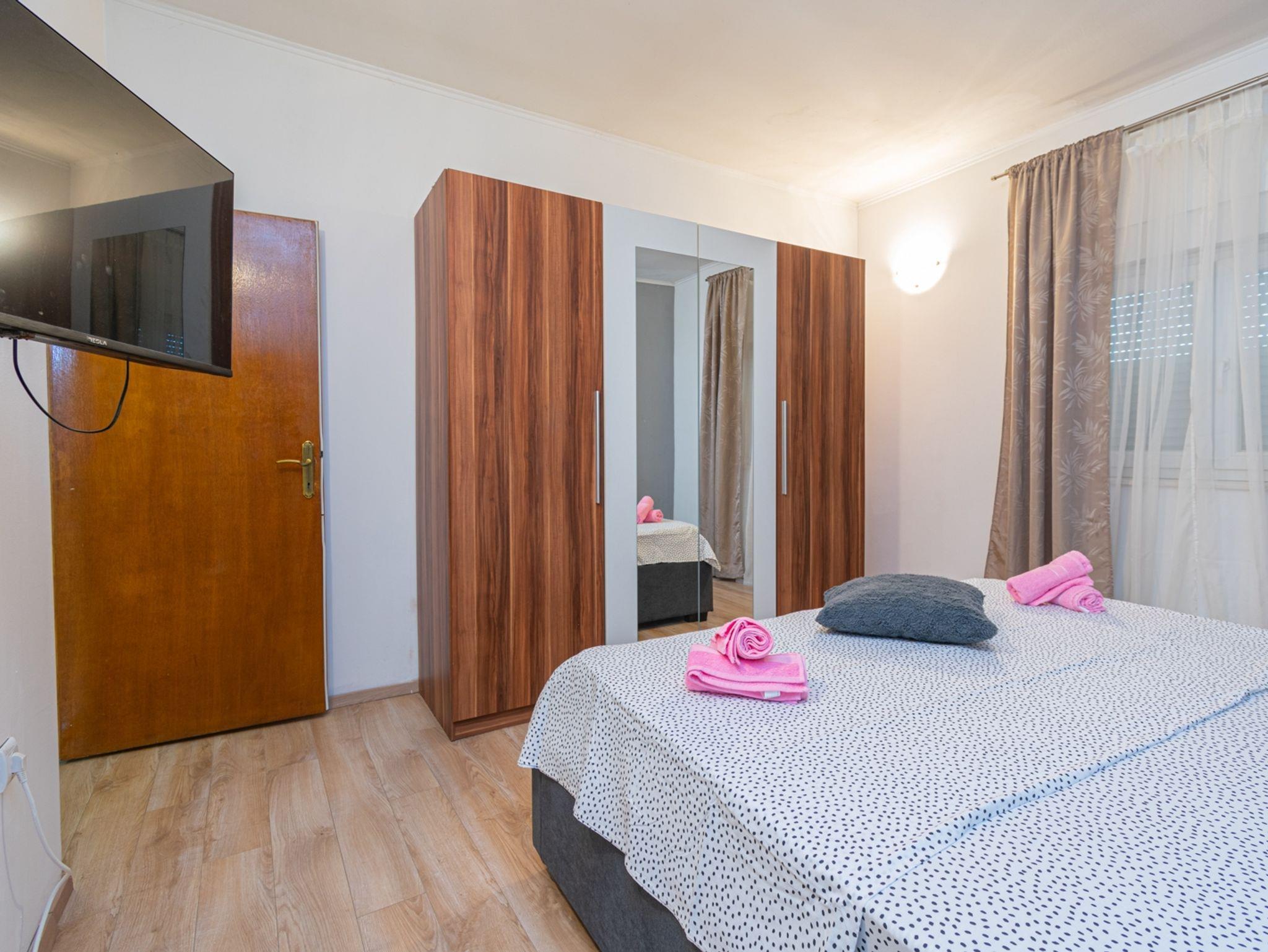Ferienwohnung bietet Platz für 7 Gäste. Die Betten sind in Schlafzimmern, die es 3 gibt, und in Wohnzimmer, innerhalb einer Gesamtfläche von 91m2, angeordnet. Die Gäste haben eine eigene Terrasse zur Verfügung, auf der sie in warmen Sommernächten genießen können. Das Apartment bietet Meerblick. Es ist erlaubt, Speisen auf dem Gemeinschafts-Grill vorzubereiten. IM PREIS INBEGRIFFEN: Kurtaxe, Endreinigung, Klimatisierung, Parkplatz, Internet, Bügeleisen, Bügelbrett, Föhn. VERBINDLICHE ZUSÄTZLICHE KOSTEN: Aufzahlung für Kurzaufenthalte (prozentualer Zuschlag pro Nächtigungsanzahl: 30% - 1, 20% - 2, 10% - 3). Die Verfügbarkeit zusätzlicher Dienstleistungen in Ihrem reservierten Termin und die Preise derselben (falls nicht aufgeführt) müssen im Voraus überprüft werden. Zusätzliche Dienstleistungen die in der Zahlungsaufforderung nicht aufgeführt sind werden direkt beim Vermieter bezahlt, angenommen der Gast nutzt auch diese. Ermäßigung auf den Grundpreis: Gratistag 14=13 (bei einem Aufenthalt von 14 Tagen oder mehr erhalten Sie einen Gratistag für den Aufenthalt bis 31.12.26).
