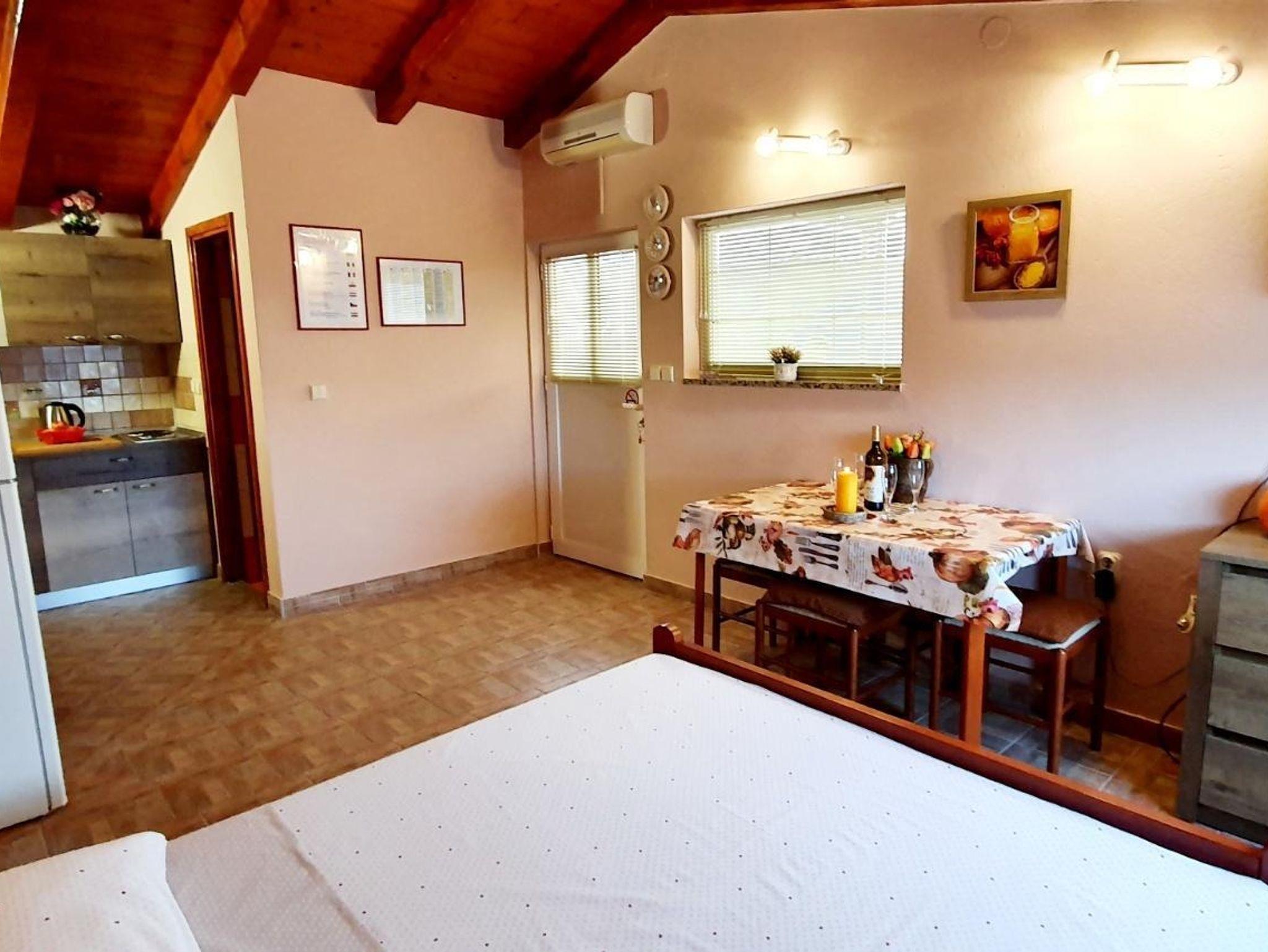 Studio bietet Platz für 4 Gäste. Die Betten sind in Schlafzimmern, die es 1 gibt, und in Wohnzimmer, innerhalb einer Gesamtfläche von 31m2, angeordnet. Die Gäste haben eine eigene Terrasse zur Verfügung, auf der sie in warmen Sommernächten genießen können. Das Studio-Apartment bietet Meerblick. Für vollen Genuss und Entspannung gibt es einen privaten Grill für Gäste dieser Unterkunft. IM PREIS INBEGRIFFEN: Kurtaxe, Endreinigung, Klimatisierung, Parkplatz, Internet, Bügeleisen, Bügelbrett, Föhn. Die Verfügbarkeit zusätzlicher Dienstleistungen in Ihrem reservierten Termin und die Preise derselben (falls nicht aufgeführt) müssen im Voraus überprüft werden. Zusätzliche Dienstleistungen die in der Zahlungsaufforderung nicht aufgeführt sind werden direkt beim Vermieter bezahlt, angenommen der Gast nutzt auch diese. Ermäßigung auf den Grundpreis: Gratistag 14=13 (bei einem Aufenthalt von 14 Tagen oder mehr erhalten Sie einen Gratistag für den Aufenthalt bis 31.12.26).