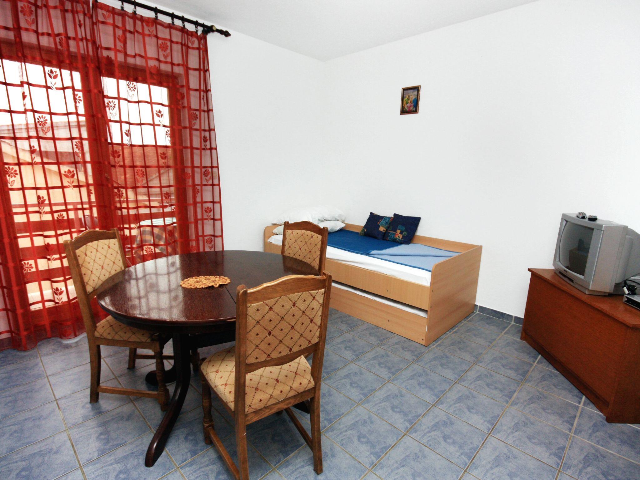 Ferienwohnung bietet Platz für 4 Gäste. Die Betten sind in Schlafzimmern, die es 1 gibt, und in Esszimmer, innerhalb einer Gesamtfläche von 36m2, angeordnet. Die Gäste haben einen eigenen Balkon zur Verfügung, auf der sie in warmen Sommernächten genießen können. Das Apartment bietet Meerblick. Es ist erlaubt, Speisen auf dem Gemeinschafts-Grill vorzubereiten. IM PREIS INBEGRIFFEN: Kurtaxe, Endreinigung, Klimatisierung, Parkplatz, Internet, Kinderbett. VERBINDLICHE ZUSÄTZLICHE KOSTEN: Aufzahlung für Kurzaufenthalte (prozentualer Zuschlag pro Nächtigungsanzahl: 30% - 1, 20% - 2, 10% - 3). Die Verfügbarkeit zusätzlicher Dienstleistungen in Ihrem reservierten Termin und die Preise derselben (falls nicht aufgeführt) müssen im Voraus überprüft werden. Zusätzliche Dienstleistungen die in der Zahlungsaufforderung nicht aufgeführt sind werden direkt beim Vermieter bezahlt, angenommen der Gast nutzt auch diese.