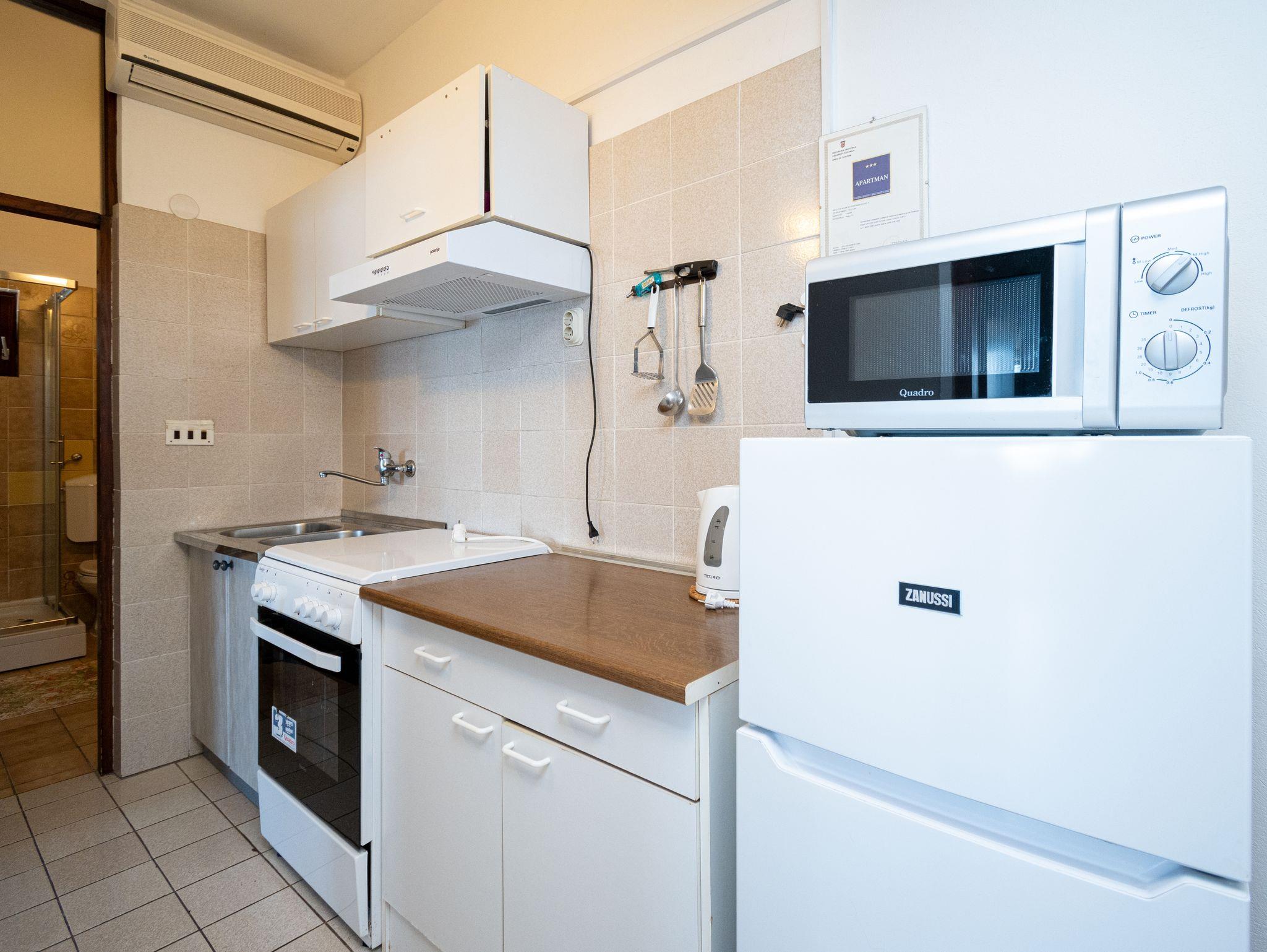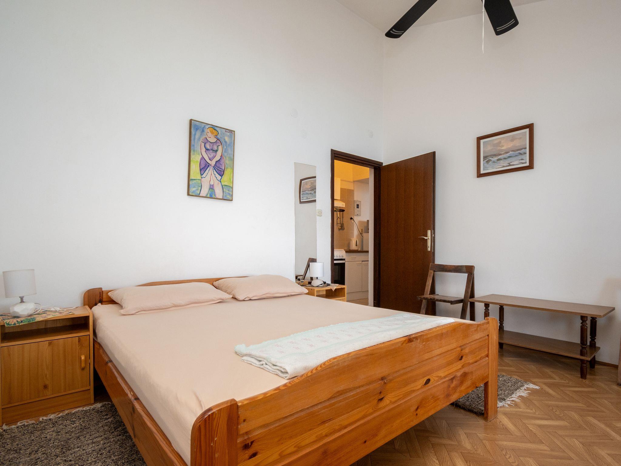 Ferienwohnung bietet Platz für 4 Gäste. Die Betten sind in Schlafzimmern, die es 1 gibt, und in Wohnzimmer, innerhalb einer Gesamtfläche von 42m2, angeordnet. Die Gäste haben eine eigene Terrasse zur Verfügung, auf der sie in warmen Sommernächten genießen können. Das Apartment bietet Meerblick. Es ist erlaubt, Speisen auf dem Gemeinschafts-Grill vorzubereiten. IM PREIS INBEGRIFFEN: Kurtaxe, Endreinigung, Parkplatz, Internet, Kinderbett, Bügeleisen, Bügelbrett, Föhn. UNVERBINDLICHE ZUSÄTZLICHE KOSTEN: Klimatisierung (7,00 € pro Nacht), Wäschewaschen (7,00 € Waschen), Bootsanlegeplatz (8,00 € pro Nacht). Die Verfügbarkeit zusätzlicher Dienstleistungen in Ihrem reservierten Termin und die Preise derselben (falls nicht aufgeführt) müssen im Voraus überprüft werden. Zusätzliche Dienstleistungen die in der Zahlungsaufforderung nicht aufgeführt sind werden direkt beim Vermieter bezahlt, angenommen der Gast nutzt auch diese. Ermäßigung auf den Grundpreis: Gratistag 28=25 (bei einem Aufenthalt von 28 oder mehr Tagen erhalten Sie 3 kostenlose Tage für den Aufenthalt bis 31.12.26).