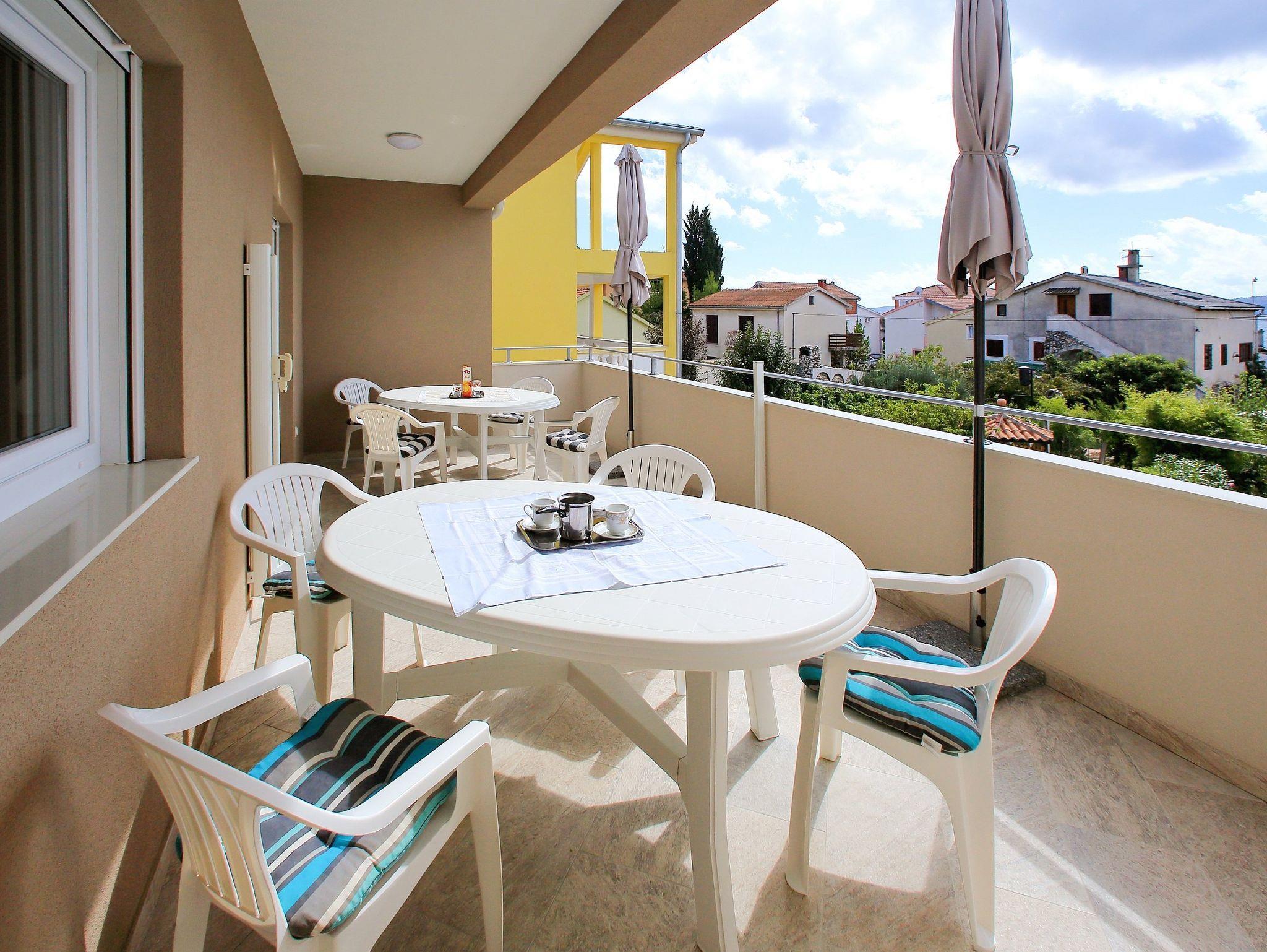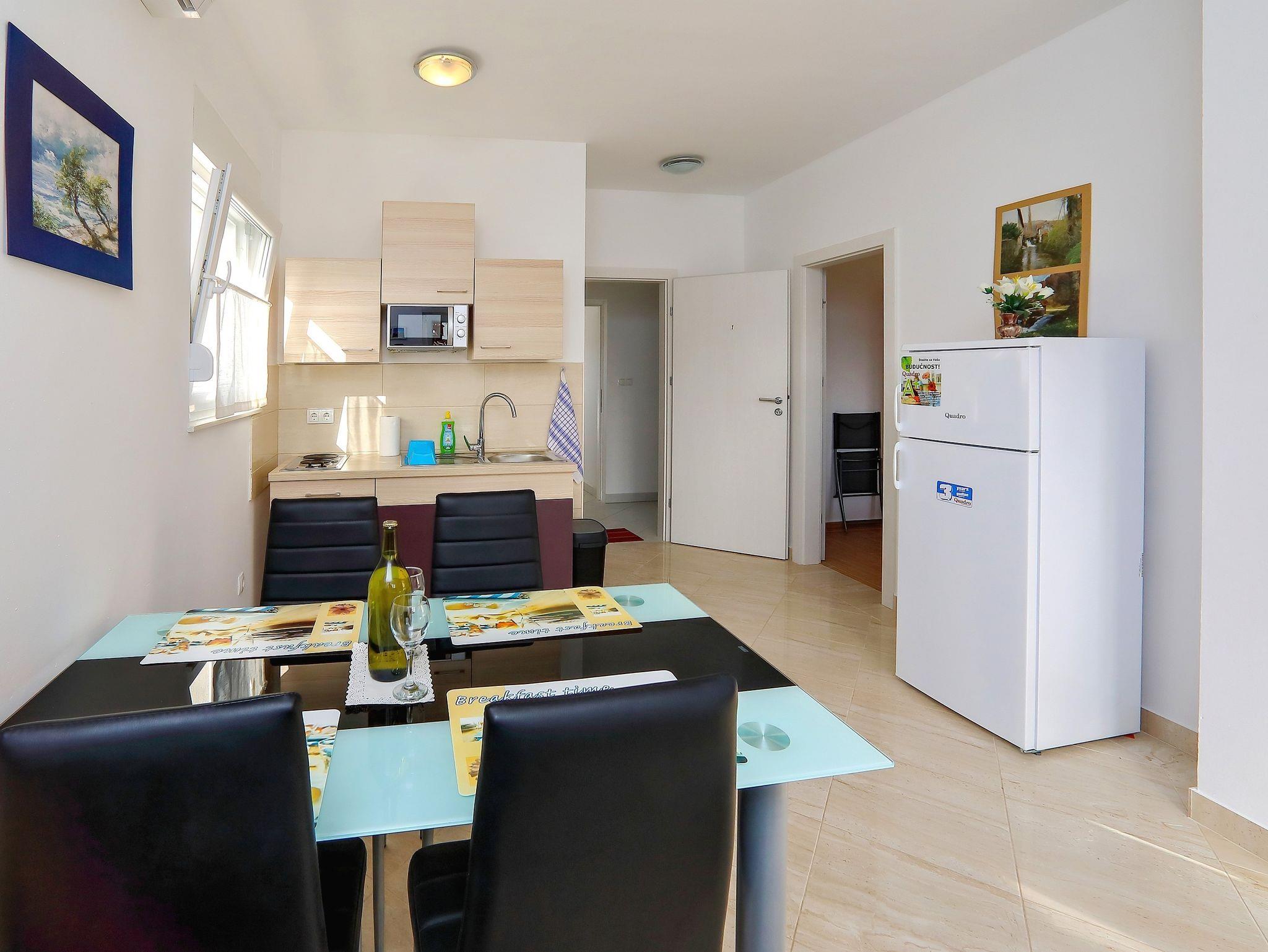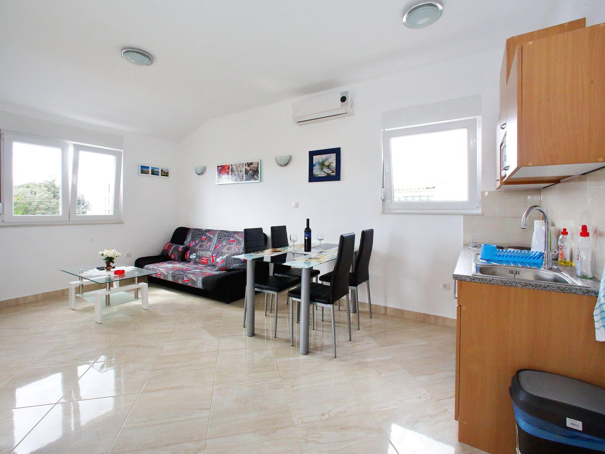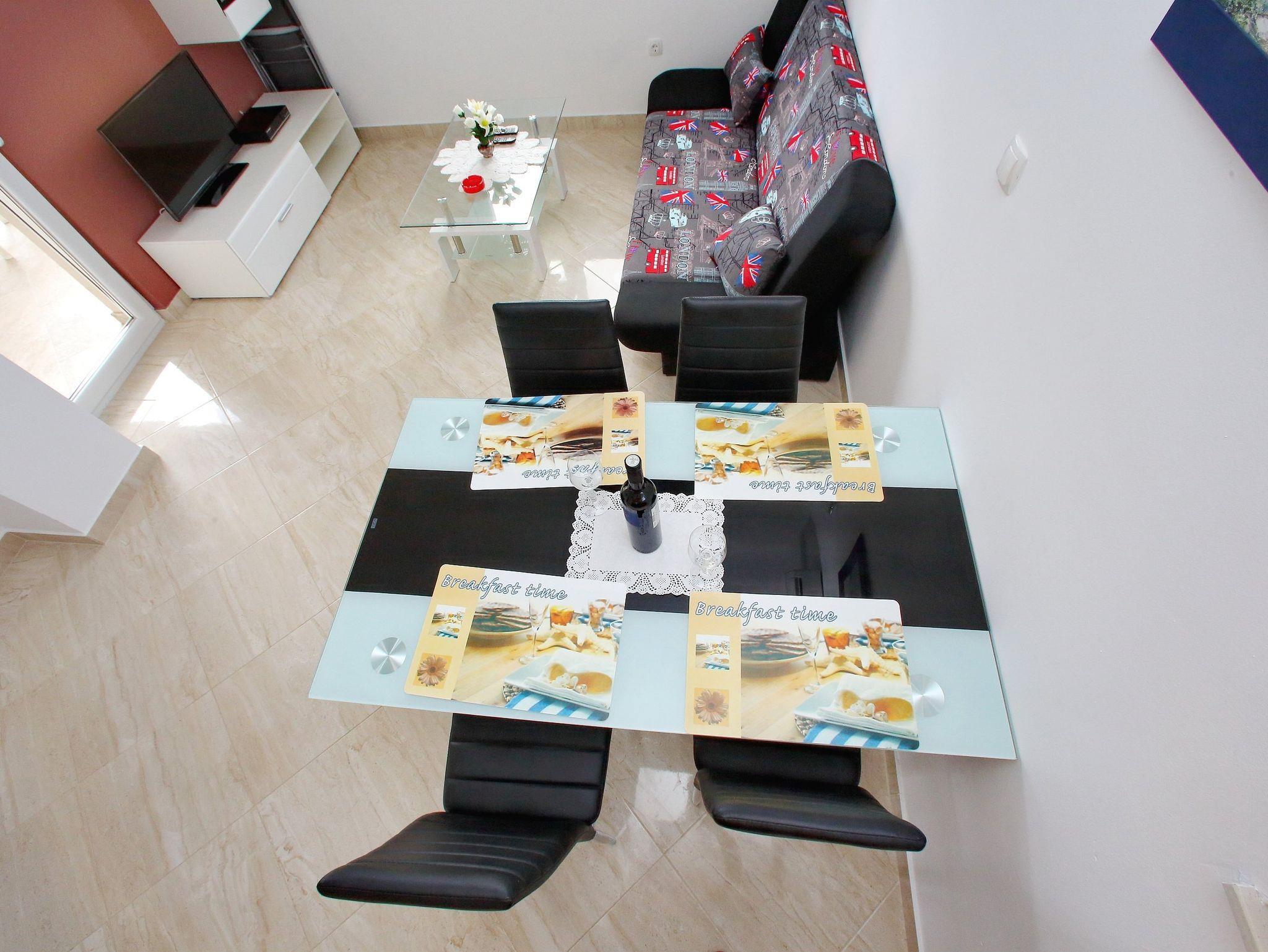 Ferienwohnung bietet Platz für 4 Gäste. Die Betten sind in Schlafzimmern, die es 1 gibt, und in Wohnzimmer, innerhalb einer Gesamtfläche von 44m2, angeordnet. Die Gäste haben eine eigene Terrasse zur Verfügung, auf der sie in warmen Sommernächten genießen können. Das Apartment bietet Meerblick. Für vollen Genuss und Entspannung gibt es einen privaten Grill für Gäste dieser Unterkunft. IM PREIS INBEGRIFFEN: Kurtaxe, Endreinigung, Klimatisierung, Parkplatz, Internet, Kinderbett, Bügeleisen, Föhn. VERBINDLICHE ZUSÄTZLICHE KOSTEN: Aufzahlung für Kurzaufenthalte (prozentualer Zuschlag pro Nächtigungsanzahl: 30% - 1, 20% - 2, 10% - 3). Die Verfügbarkeit zusätzlicher Dienstleistungen in Ihrem reservierten Termin und die Preise derselben (falls nicht aufgeführt) müssen im Voraus überprüft werden. Zusätzliche Dienstleistungen die in der Zahlungsaufforderung nicht aufgeführt sind werden direkt beim Vermieter bezahlt, angenommen der Gast nutzt auch diese.