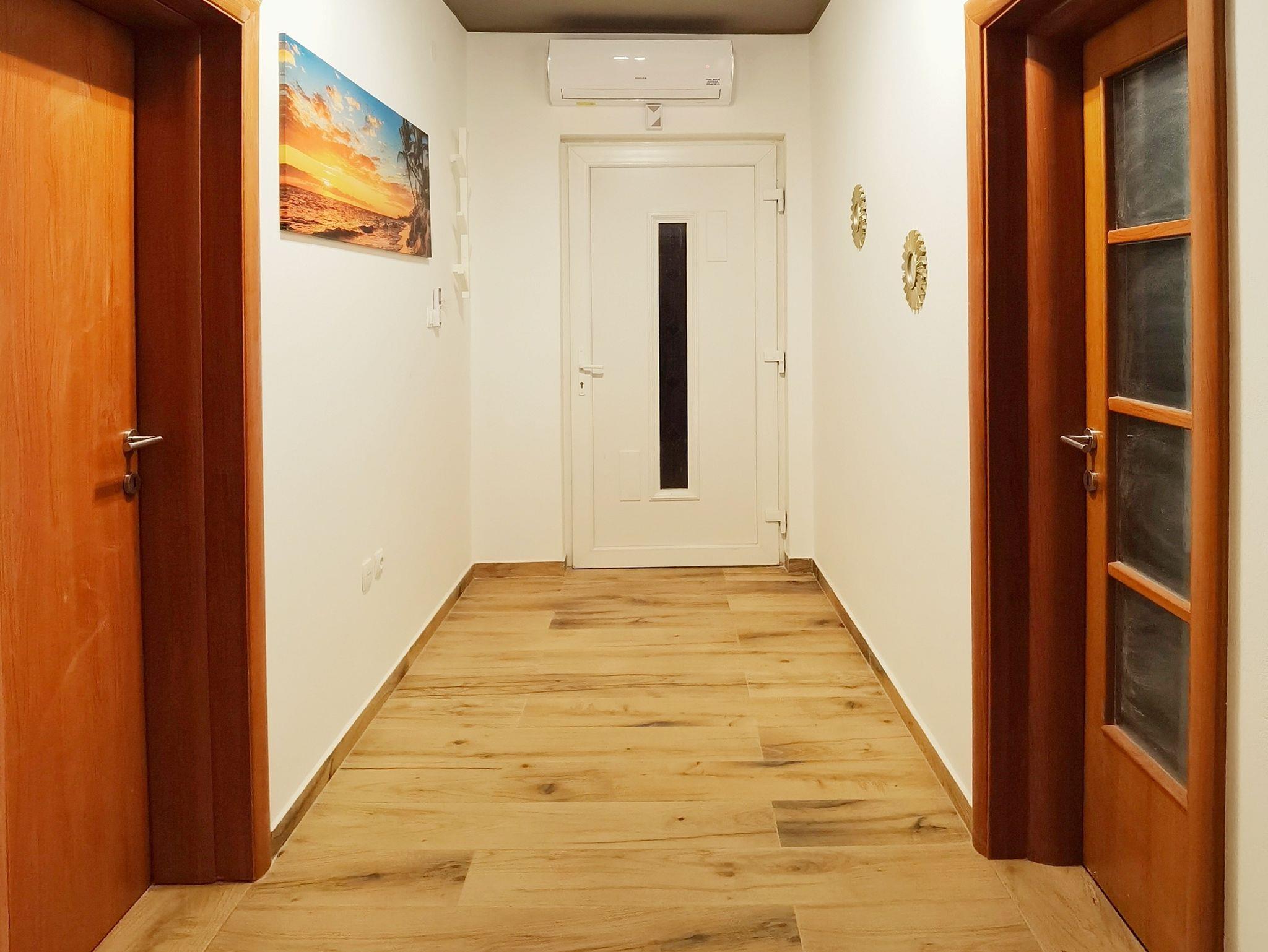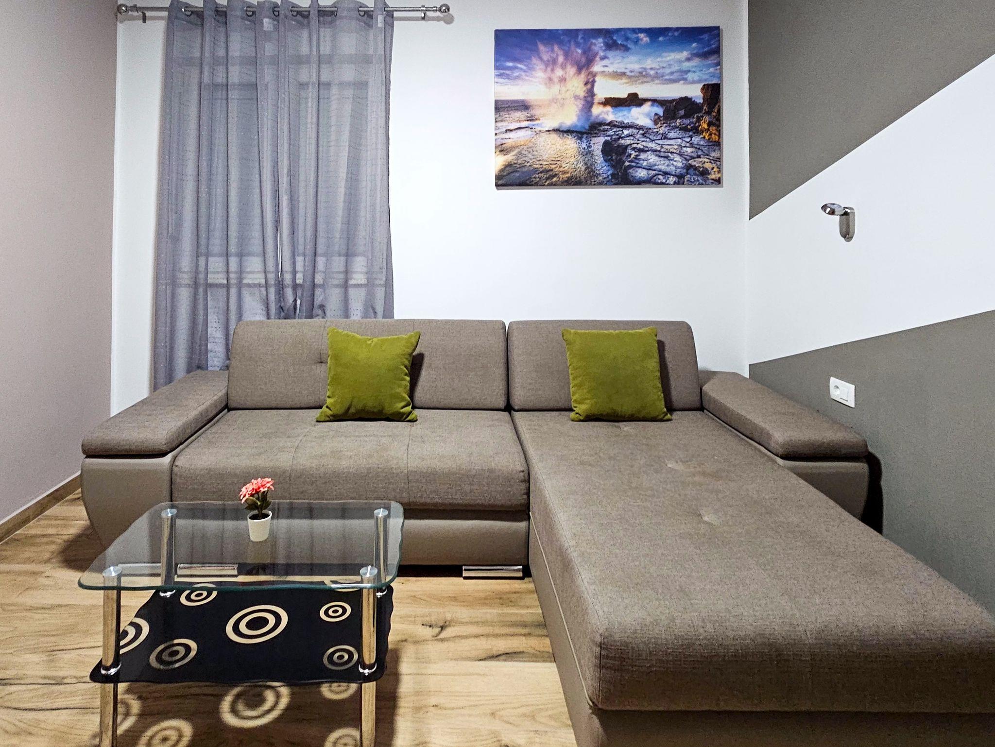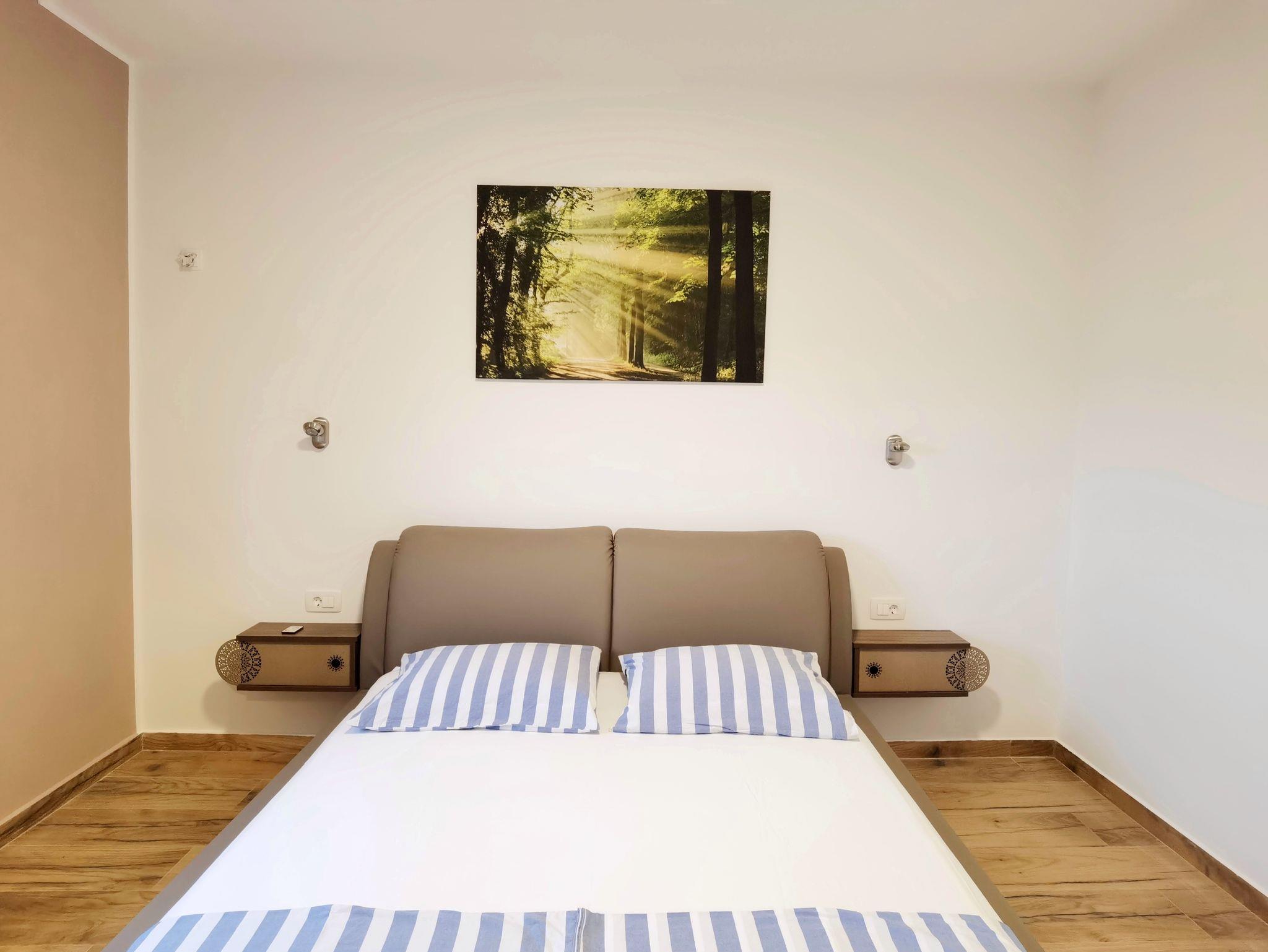 Ferienwohnung bietet Platz für 4 Gäste. Die Betten sind in Schlafzimmern, die es 2 gibt, innerhalb einer Gesamtfläche von 66m2, angeordnet. Die Gäste haben eine eigene Terrasse zur Verfügung, auf der sie in warmen Sommernächten genießen können. Es ist erlaubt, Speisen auf dem Gemeinschafts-Grill vorzubereiten. Während ihres Aufenthalts können Gäste das gemeinsam zur Nutzung stehende Schwimmbad benutzen. IM PREIS INBEGRIFFEN: Kurtaxe, Endreinigung, Klimatisierung, Pool, Parkplatz, Internet, Kinderbett, Bügeleisen, Bügelbrett, Föhn. VERBINDLICHE ZUSÄTZLICHE KOSTEN: Aufzahlung für Kurzaufenthalte (prozentualer Zuschlag pro Nächtigungsanzahl: 30% - 1, 20% - 2, 10% - 3). Die Verfügbarkeit zusätzlicher Dienstleistungen in Ihrem reservierten Termin und die Preise derselben (falls nicht aufgeführt) müssen im Voraus überprüft werden. Zusätzliche Dienstleistungen die in der Zahlungsaufforderung nicht aufgeführt sind werden direkt beim Vermieter bezahlt, angenommen der Gast nutzt auch diese. Ermäßigung auf den Grundpreis: Gratistag 14=13 (bei einem Aufenthalt von 14 Tagen oder mehr erhalten Sie einen Gratistag für den Aufenthalt bis 31.12.26).