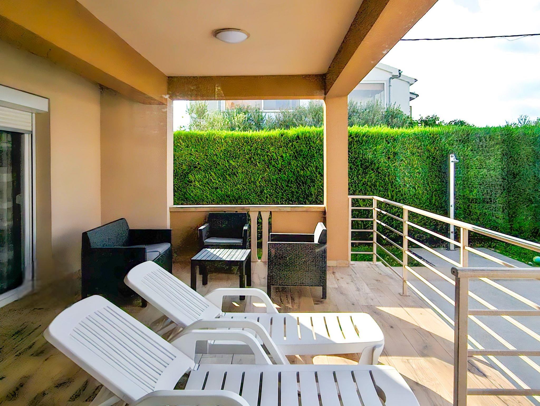 Hof (1000m2, Kinderbereich, Sitzbereich), Parkplatz (Anzahl der Parkplätze: 5, Entfernung vom Objekt: im Hof), Pool: gemeinsam, Dimensionen: 8.5m x 4.5m x 1.5m, Wassertyp: Süßwasser, Grill: gemeinsam, WiFi Internet, Föhn, Bügeleisen, Bügelbrett, Kinderbett