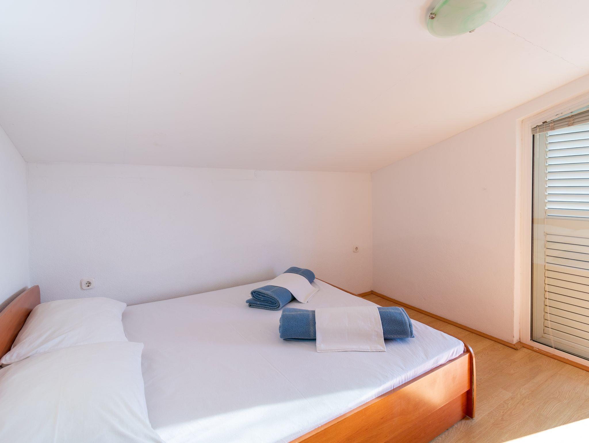 Ferienwohnung bietet Platz für 5 Gäste. Die Betten sind in Schlafzimmern, die es 2 gibt, und in Esszimmer, innerhalb einer Gesamtfläche von 38m2, angeordnet. Die Gäste haben eine eigene Terrasse zur Verfügung, auf der sie in warmen Sommernächten genießen können. Das Apartment bietet Meerblick. Es ist erlaubt, Speisen auf dem Gemeinschafts-Grill vorzubereiten. IM PREIS INBEGRIFFEN: Kurtaxe, Endreinigung, Parkplatz, Internet, Kinderbett, Zusatzbett, Bügeleisen, Bügelbrett, Föhn, tragbarer Grill. VERBINDLICHE ZUSÄTZLICHE KOSTEN: Aufzahlung für Kurzaufenthalte (prozentualer Zuschlag pro Nächtigungsanzahl: 30% - 1, 20% - 2, 10% - 3). UNVERBINDLICHE ZUSÄTZLICHE KOSTEN: Klimatisierung (5,00 € pro Nacht). Die Verfügbarkeit zusätzlicher Dienstleistungen in Ihrem reservierten Termin und die Preise derselben (falls nicht aufgeführt) müssen im Voraus überprüft werden. Zusätzliche Dienstleistungen die in der Zahlungsaufforderung nicht aufgeführt sind werden direkt beim Vermieter bezahlt, angenommen der Gast nutzt auch diese. Ermäßigung auf den Grundpreis: Gratistag 21=19 (bei einem Aufenthalt von 21 Tagen oder mehr erhalten Sie 2 Gratistage für den Aufenthalt bis 31.12.26).