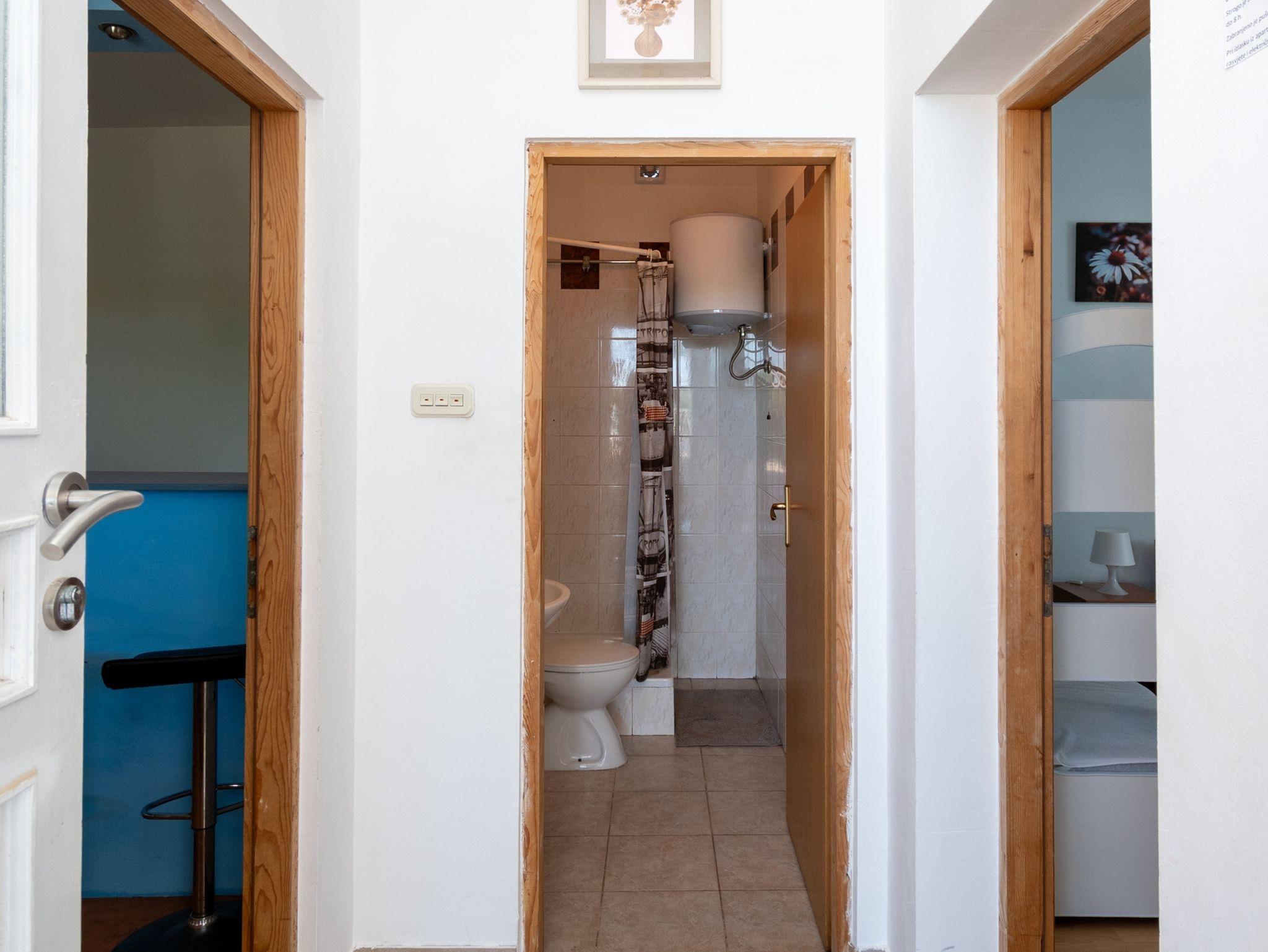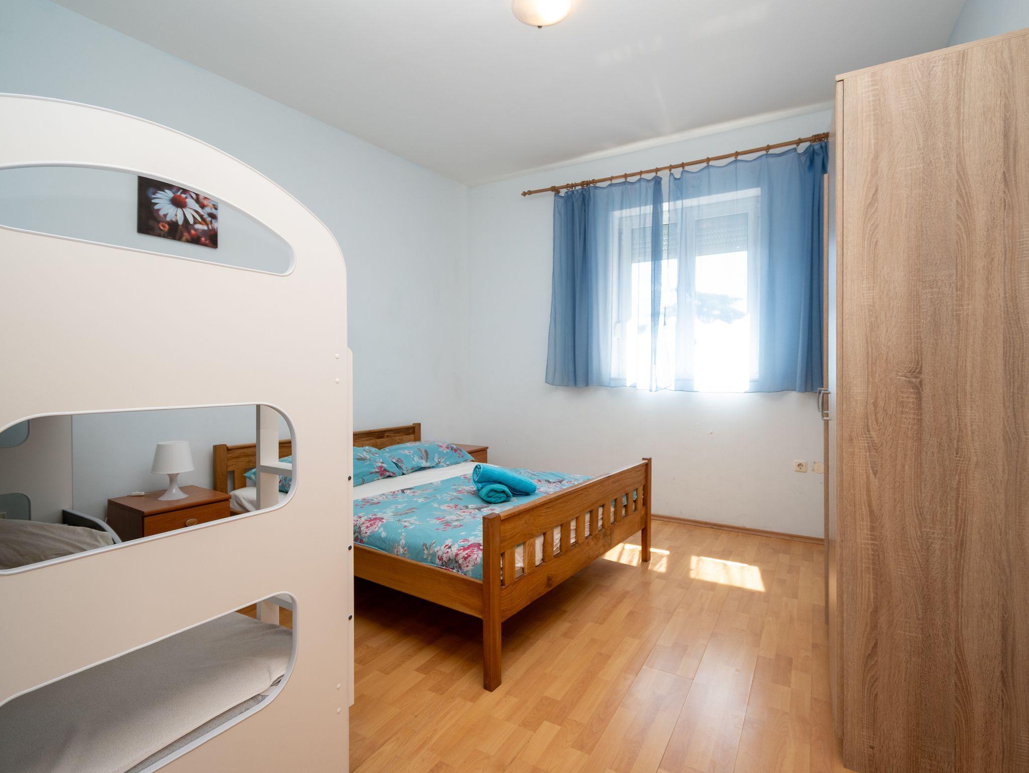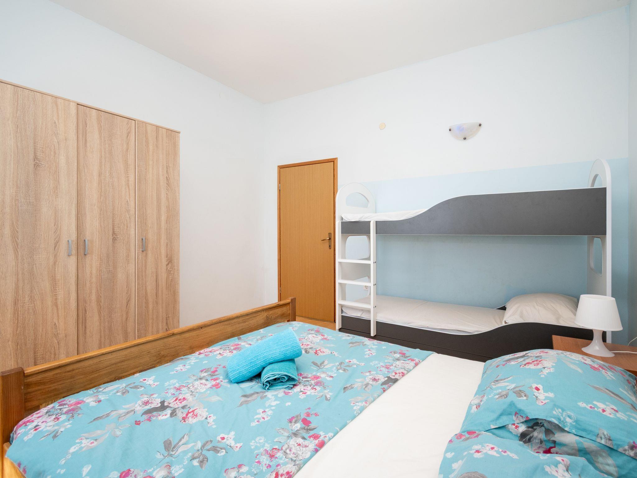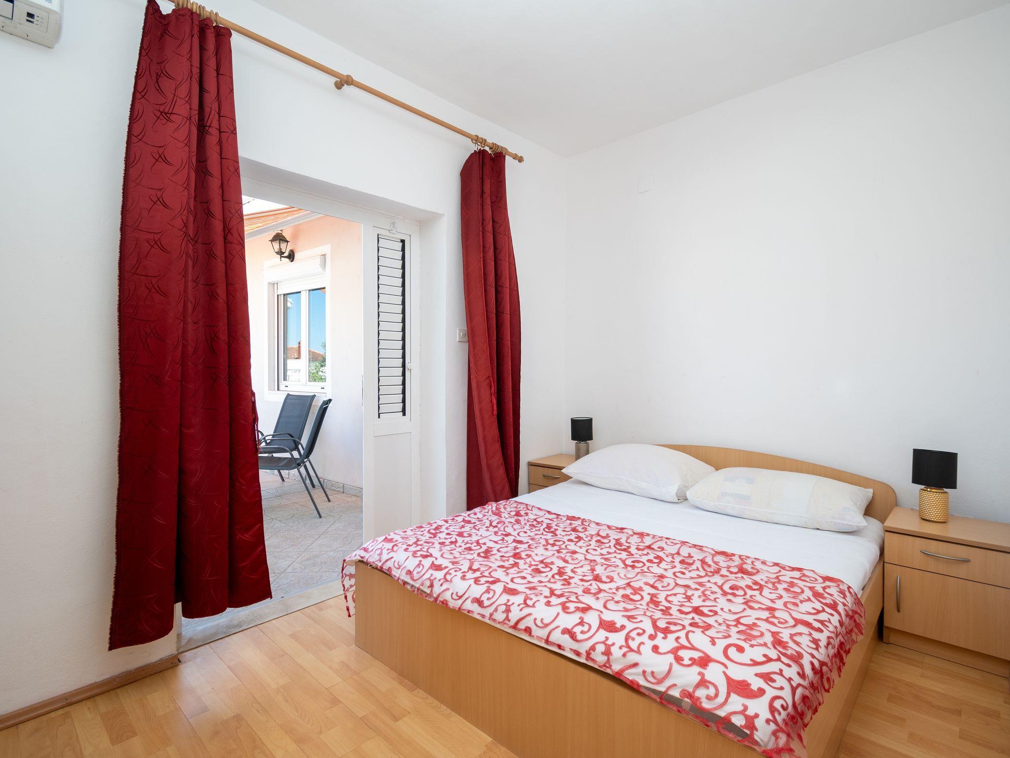 Ferienwohnung bietet Platz für 5 Gäste. Die Betten sind in Schlafzimmern, die es 2 gibt, innerhalb einer Gesamtfläche von 51m2, angeordnet. Die Gäste haben eine eigene Terrasse zur Verfügung, auf der sie in warmen Sommernächten genießen können. Das Apartment bietet Meerblick. Es ist erlaubt, Speisen auf dem Gemeinschafts-Grill vorzubereiten. Durch die Terrasse der gebuchten Unterkunftseinheit gehen auch andere Gäste oder Vermieter. Unterkunftseinheit hat Räume, die von dem Rest der Einheit abgetrennt werden. IM PREIS INBEGRIFFEN: Kurtaxe, Endreinigung, Klimatisierung, Parkplatz, Internet, Föhn. VERBINDLICHE ZUSÄTZLICHE KOSTEN: Aufzahlung für Kurzaufenthalte (prozentualer Zuschlag pro Nächtigungsanzahl: 30% - 1, 20% - 2, 10% - 3). Die Verfügbarkeit zusätzlicher Dienstleistungen in Ihrem reservierten Termin und die Preise derselben (falls nicht aufgeführt) müssen im Voraus überprüft werden. Zusätzliche Dienstleistungen die in der Zahlungsaufforderung nicht aufgeführt sind werden direkt beim Vermieter bezahlt, angenommen der Gast nutzt auch diese.