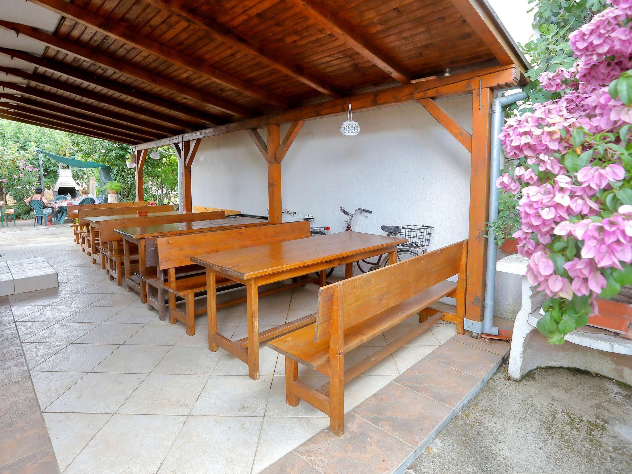 Hof (100m2, Sitzbereich), Parkplatz (Anzahl der Parkplätze: 8, Entfernung vom Objekt: im Hof), Grill: gemeinsam, WiFi Internet, Wäschewaschen, Fahrrad (Anzahl: 4), Föhn, Bügeleisen, Bügelbrett, Kinderbett