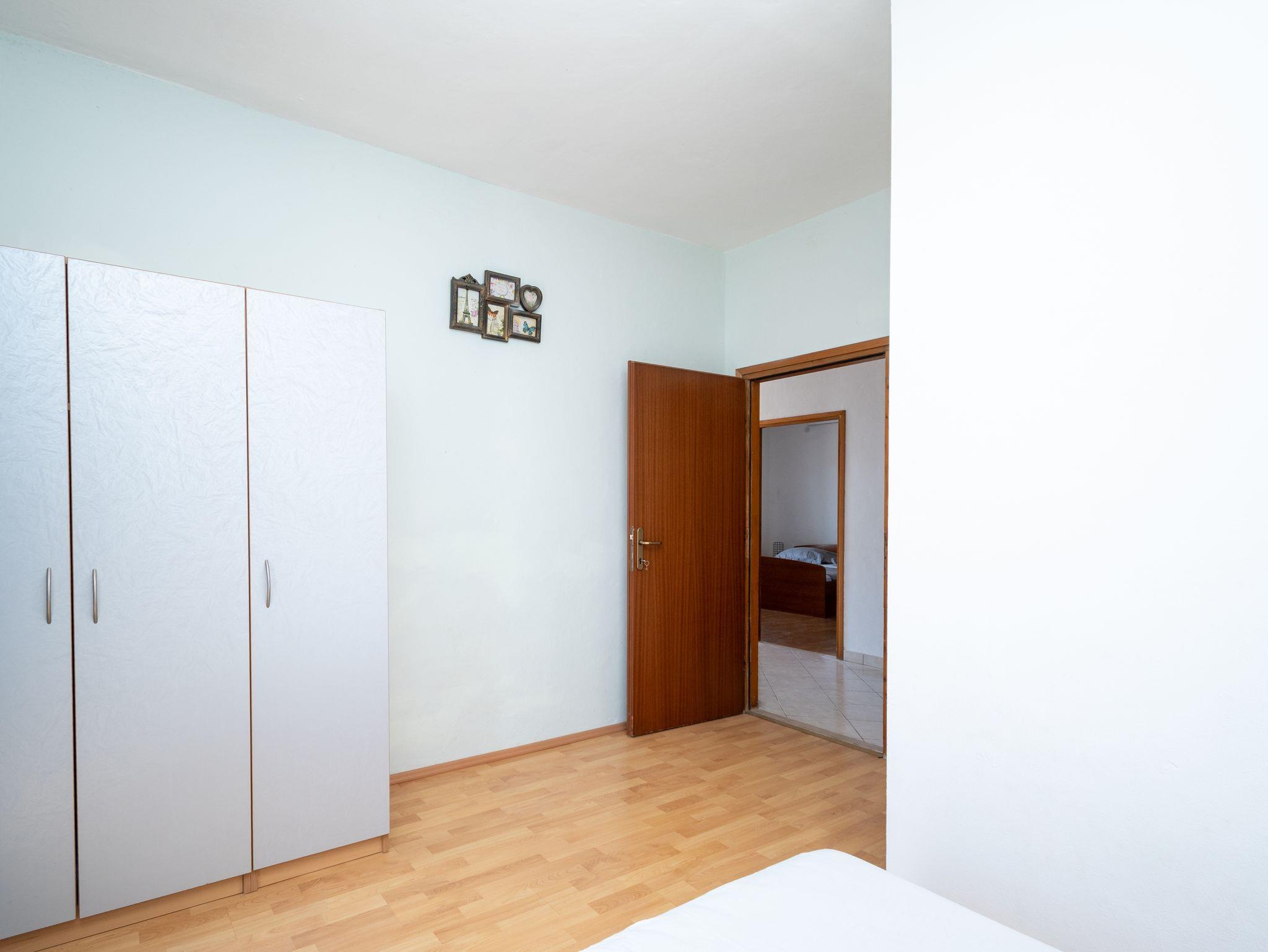 Ferienwohnung bietet Platz für 6 Gäste. Die Betten sind in Schlafzimmern, die es 2 gibt, innerhalb einer Gesamtfläche von 57m2, angeordnet. Die Gäste haben eine eigene Terrasse zur Verfügung, auf der sie in warmen Sommernächten genießen können. Das Apartment bietet Meerblick. Es ist erlaubt, Speisen auf dem Gemeinschafts-Grill vorzubereiten. IM PREIS INBEGRIFFEN: Kurtaxe, Endreinigung, Klimatisierung, Parkplatz, Internet, Föhn. VERBINDLICHE ZUSÄTZLICHE KOSTEN: Aufzahlung für Kurzaufenthalte (prozentualer Zuschlag pro Nächtigungsanzahl: 30% - 1, 20% - 2, 10% - 3). Die Verfügbarkeit zusätzlicher Dienstleistungen in Ihrem reservierten Termin und die Preise derselben (falls nicht aufgeführt) müssen im Voraus überprüft werden. Zusätzliche Dienstleistungen die in der Zahlungsaufforderung nicht aufgeführt sind werden direkt beim Vermieter bezahlt, angenommen der Gast nutzt auch diese.