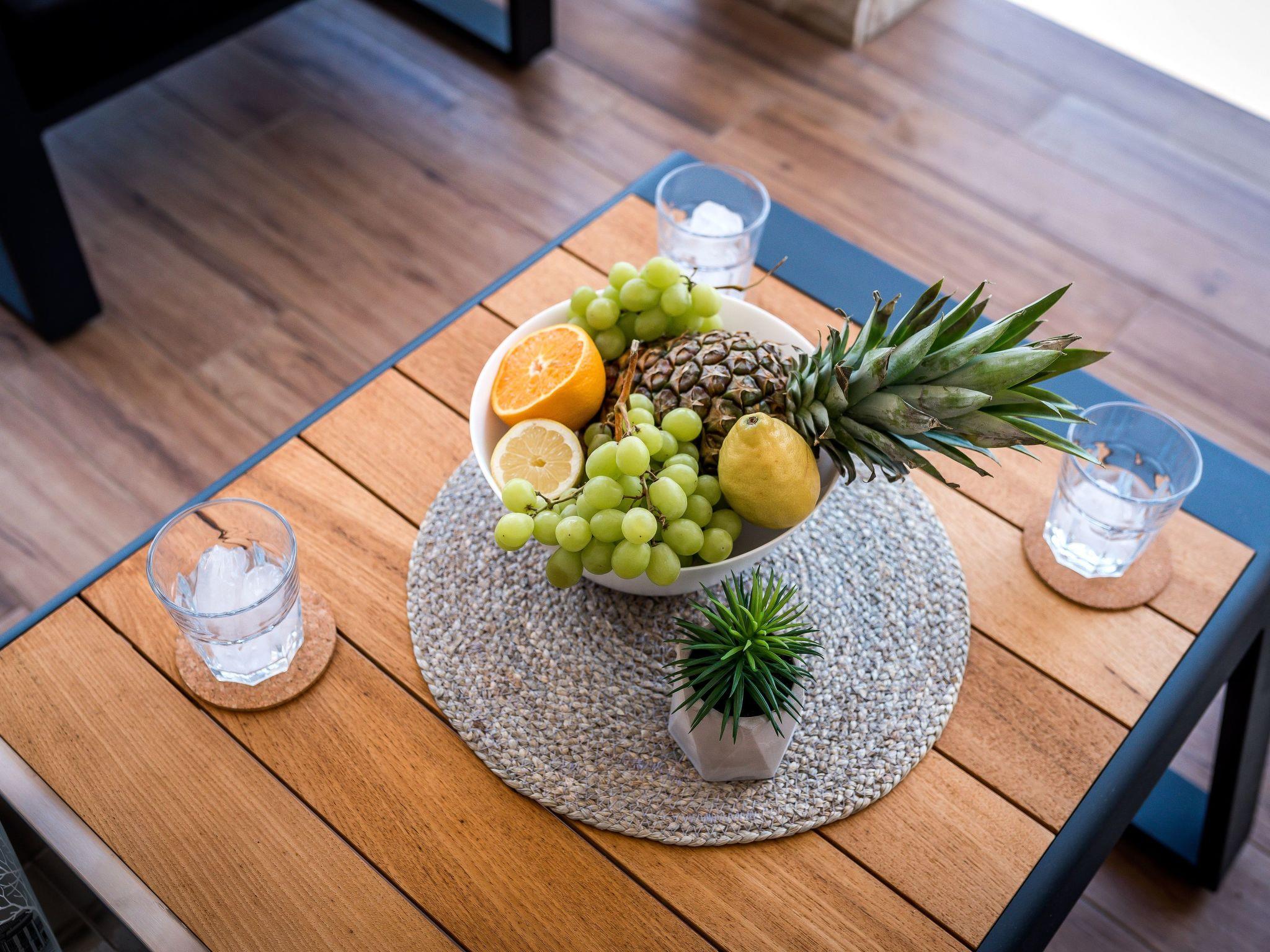 The villa has three modern bedrooms, two of which have double beds and one has two single beds. A comfortable sofa bed on the ground floor is an extra bed for two more people. All three rooms have their own bathroom with shower. Two en-suite rooms are located on the upper floor and one is on the ground floor of the villa.
