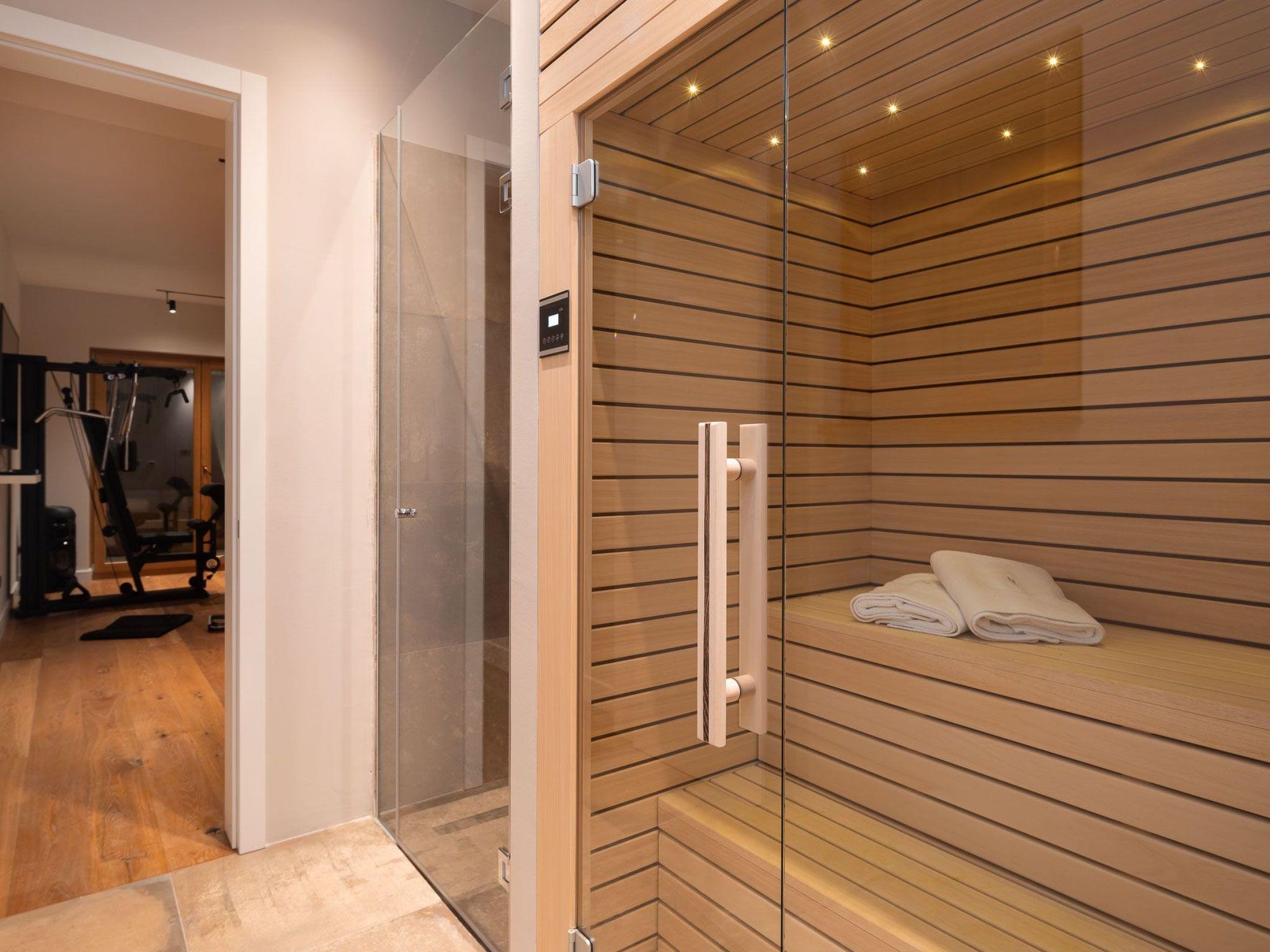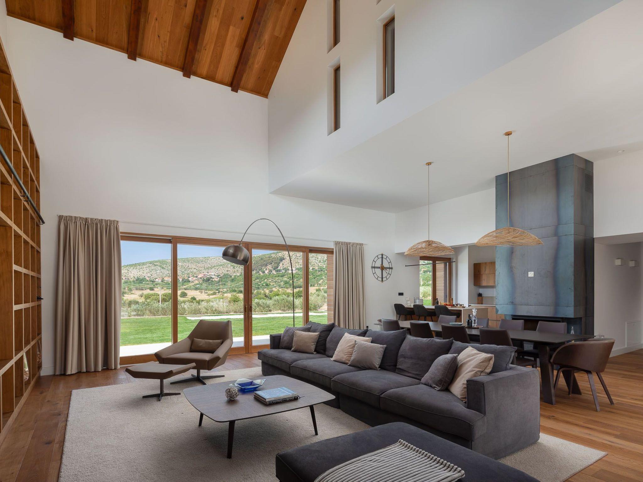 Inside, the house boasts a harmonious blend of comfort and convenience across its five bedrooms and an equal number of bathrooms, ensuring privacy and ease for every guest. With underfloor heating available throughout and air conditioning to keep the ambience perfect at any time of the year, comfort is guaranteed. The villa is equipped with a washing machine and clothes dryer for exclusive use, alongside a coffee machine and dishwasher to make your stay as smooth as possible. The presence of a fireplace adds a cozy warmth to the space, inviting you to gather around for memorable evenings indoors.
