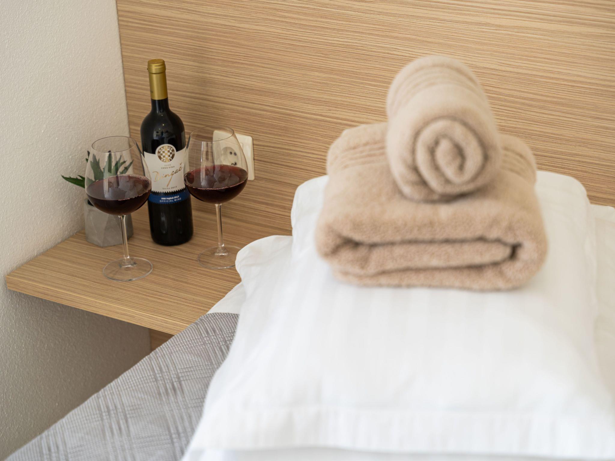 Each of our apartments is equipped to ensure your utmost comfort, featuring a kitchenette, private bathroom, balcony, and modern conveniences such as air conditioning and a Smart TV. The interiors are simply yet attractively furnished, presenting a warm and inviting atmosphere for all guests. Adhering to an exclusive adults-only policy (16+), we guarantee a tranquil and relaxing environment. Every apartment is styled similarly, showcasing appealing aesthetics and color schemes designed to enhance your stay.