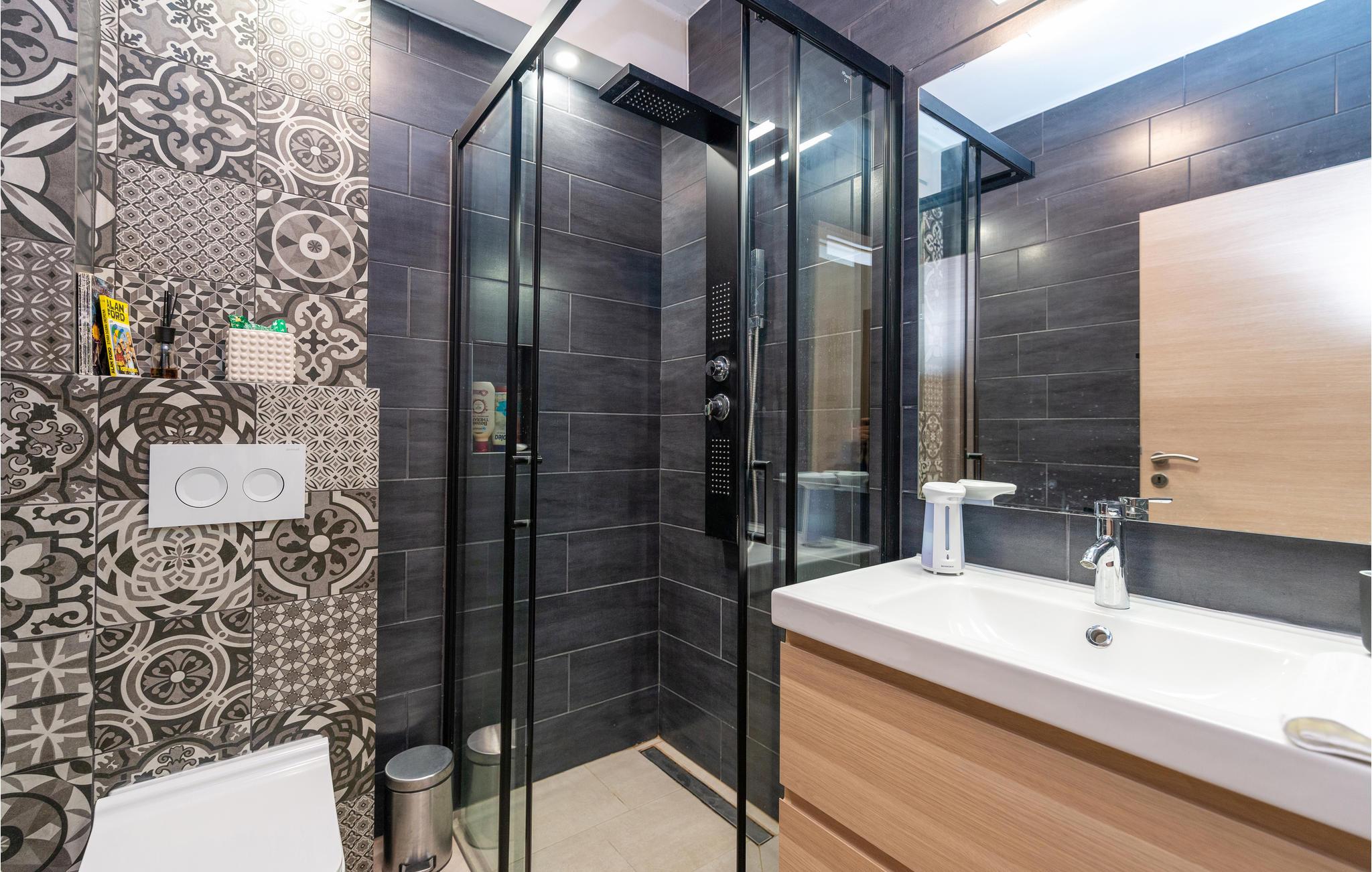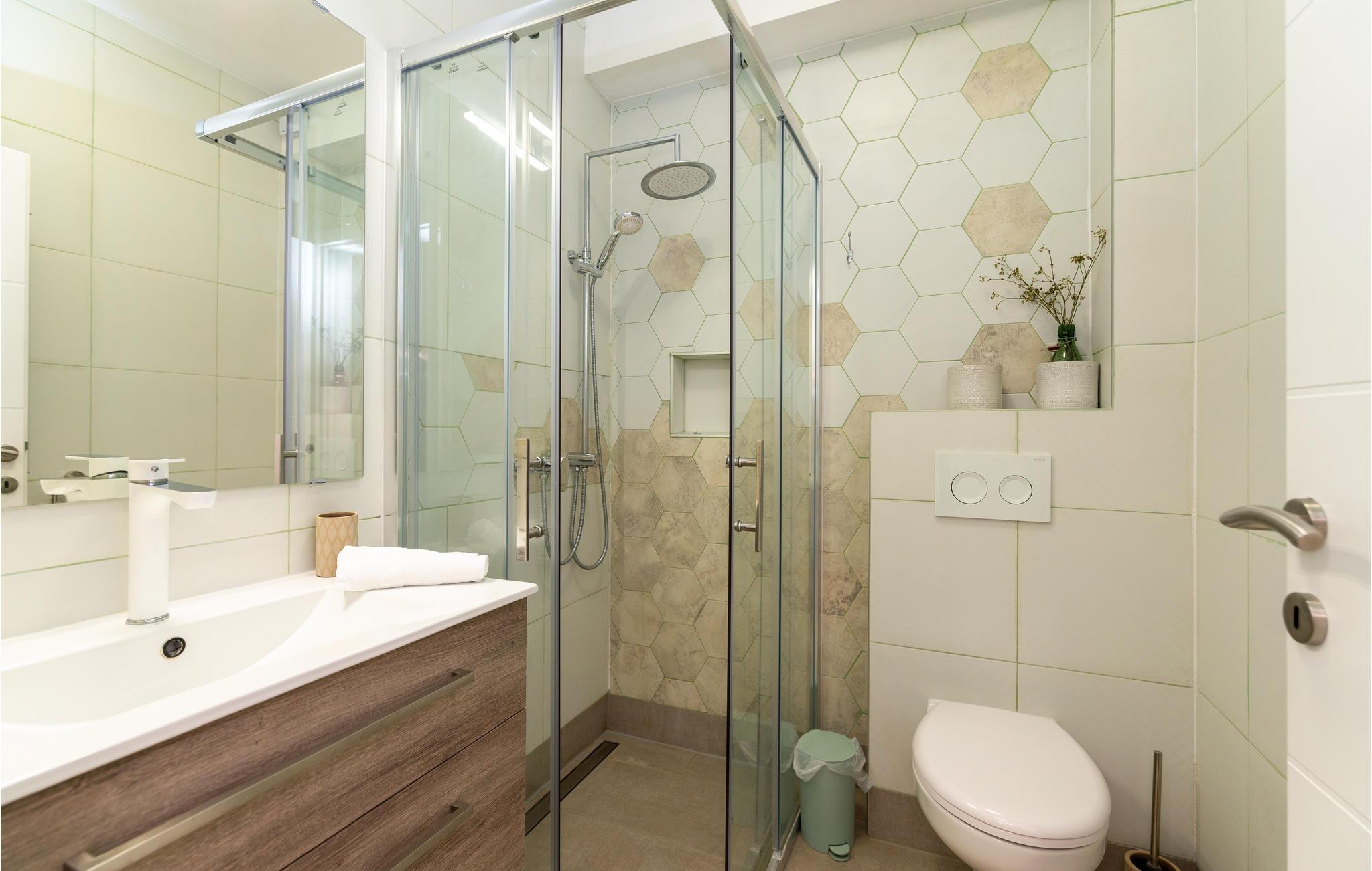 - WC mit warmem und kaltem Wasser, Dusche und Badewanne