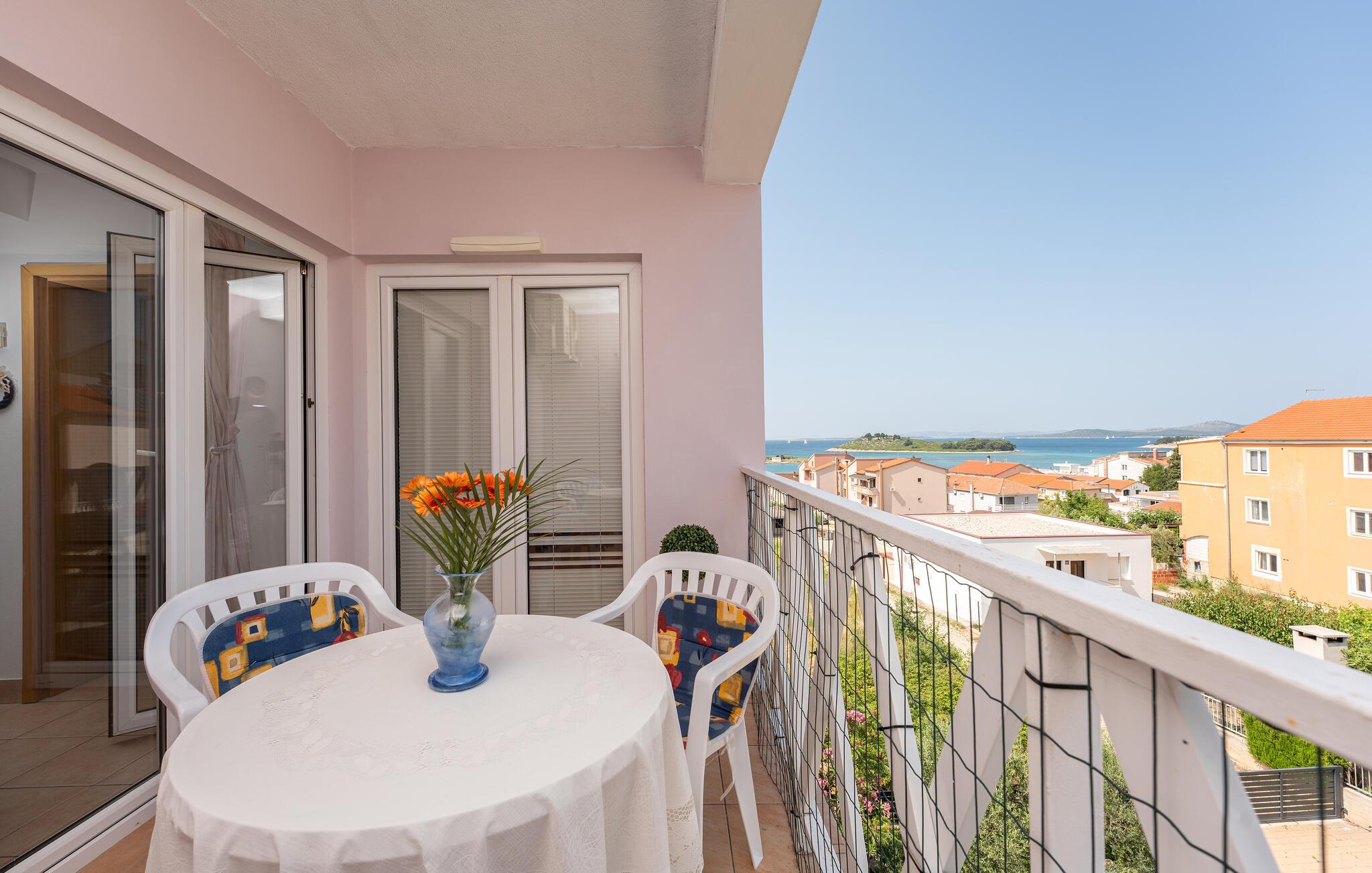 Genießen Sie den weiten Blick auf das Meer von Ihrem Balkon in dieser freundlich eingerichteten Wohnung.