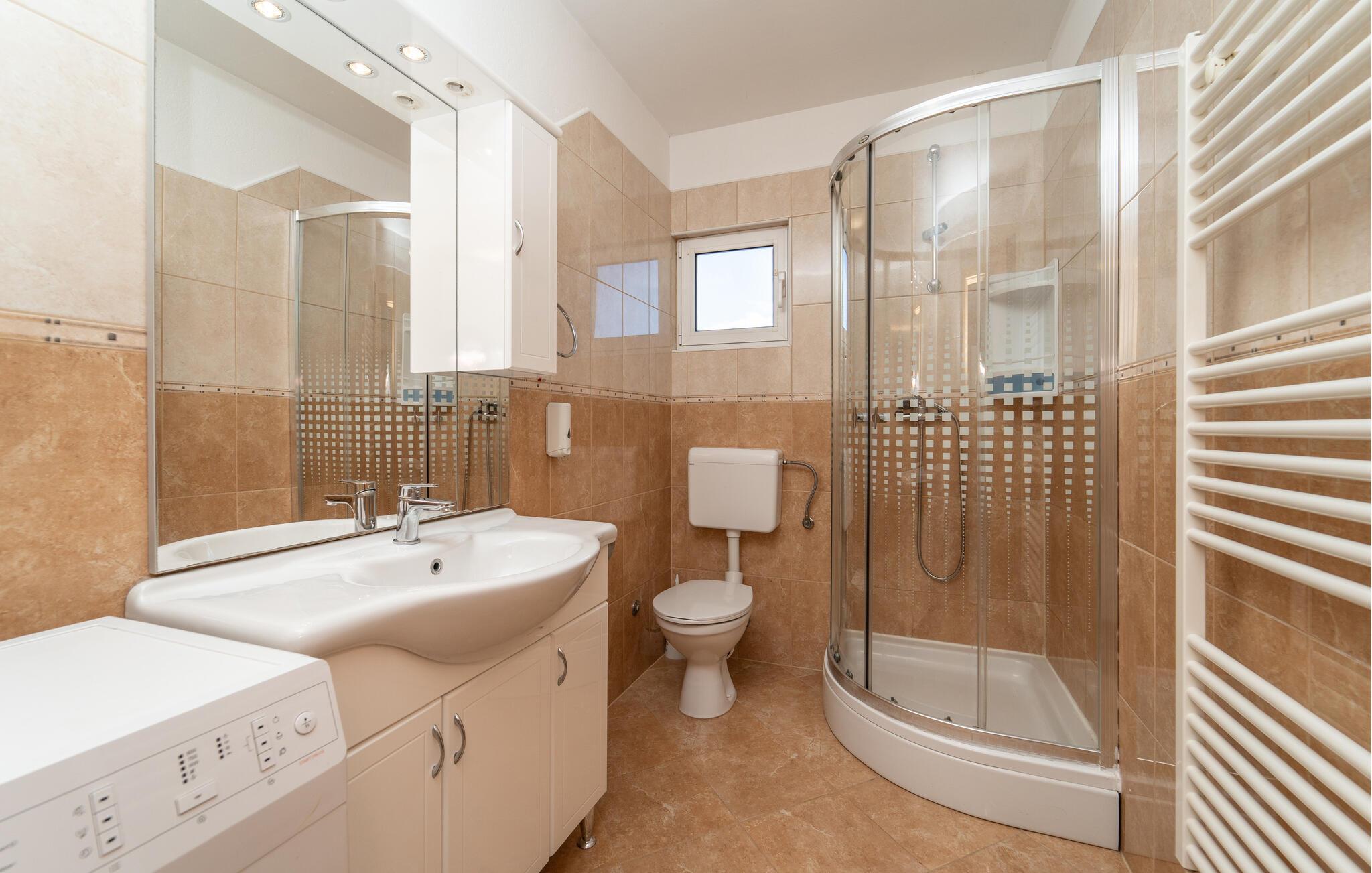 - WC mit warmem und kaltem Wasser, Dusche