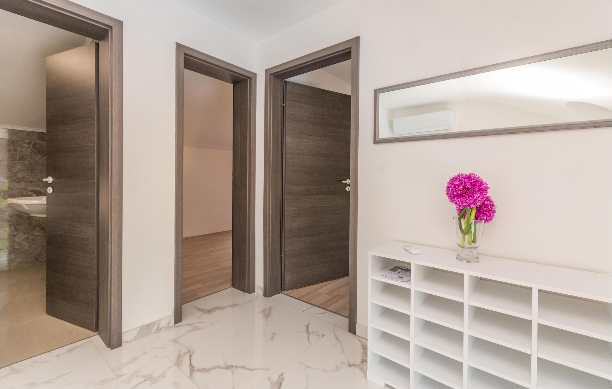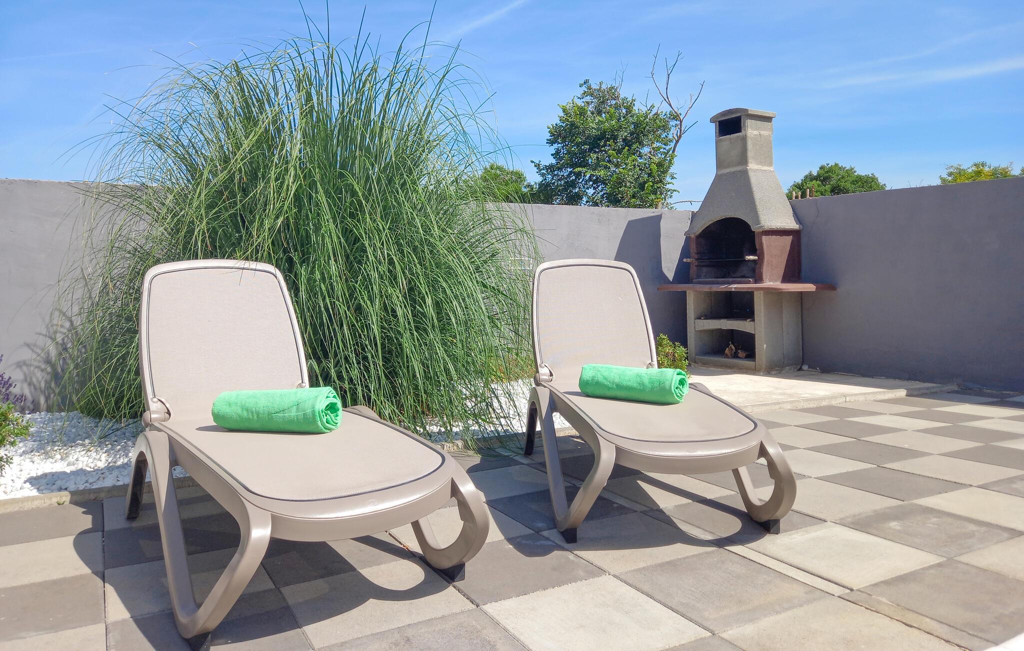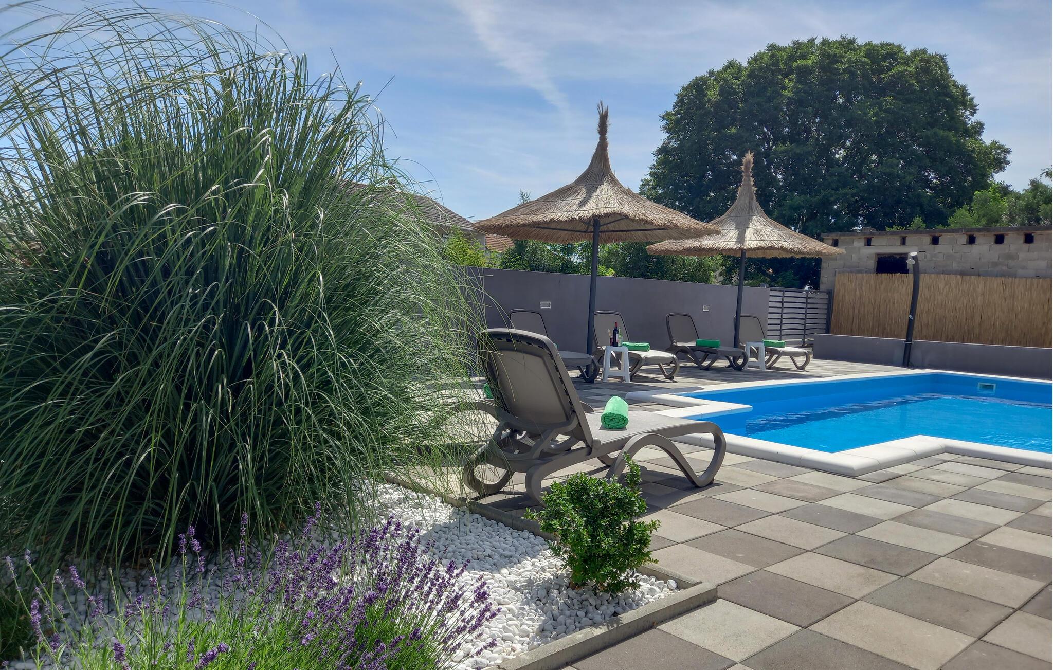 Dieses gemütlich und modern eingerichtete Ferienhaus wird Ihnen besonders gefallen. Die geschmackvollen Möbel in Verbindung mit hellen stilvollen Dekorationen erschafft eine wunderbare Atmosphäre zum Wohlfühlen. Hier können Sie es sich mit Ihrer Familie für einen Urlaub bequem machen und die Zeit in Kroatien genießen, während Sie auf nichts verzichten müssen, um einen entspannten Urlaub zu haben. Das Wohnzimmer öffnet sich auf eine geräumige Terrasse mit Außenpool, Sonnenliegen und Grill, wo Sie Ihren Morgenkaffee und Ihre Mahlzeiten gemeinsam genießen können. Auch für die kleinen Gäste gibt es einen privaten Garten in dem Sie unbeschwert spielen können.