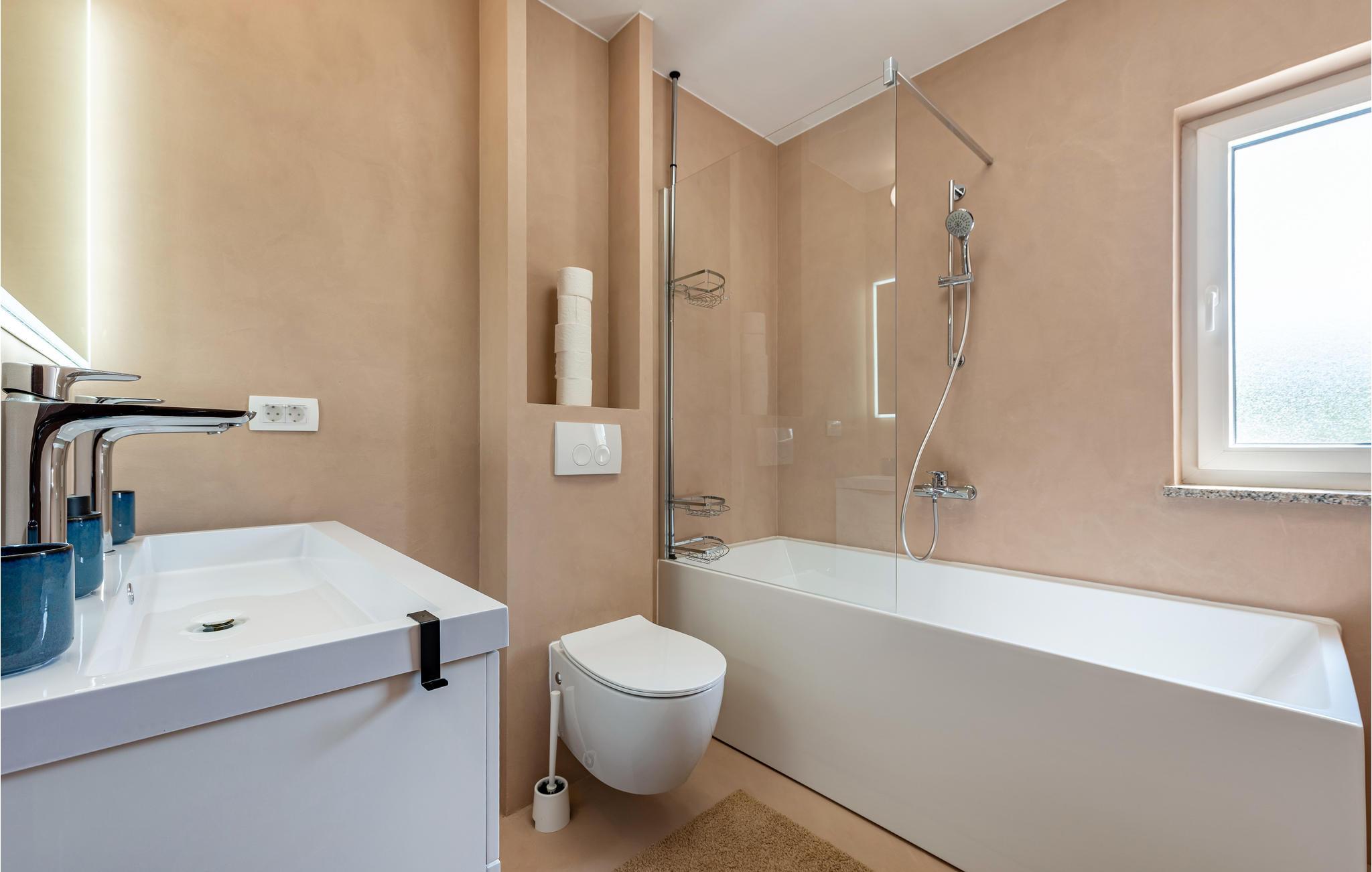 - WC mit warmem und kaltem Wasser, Badewanne