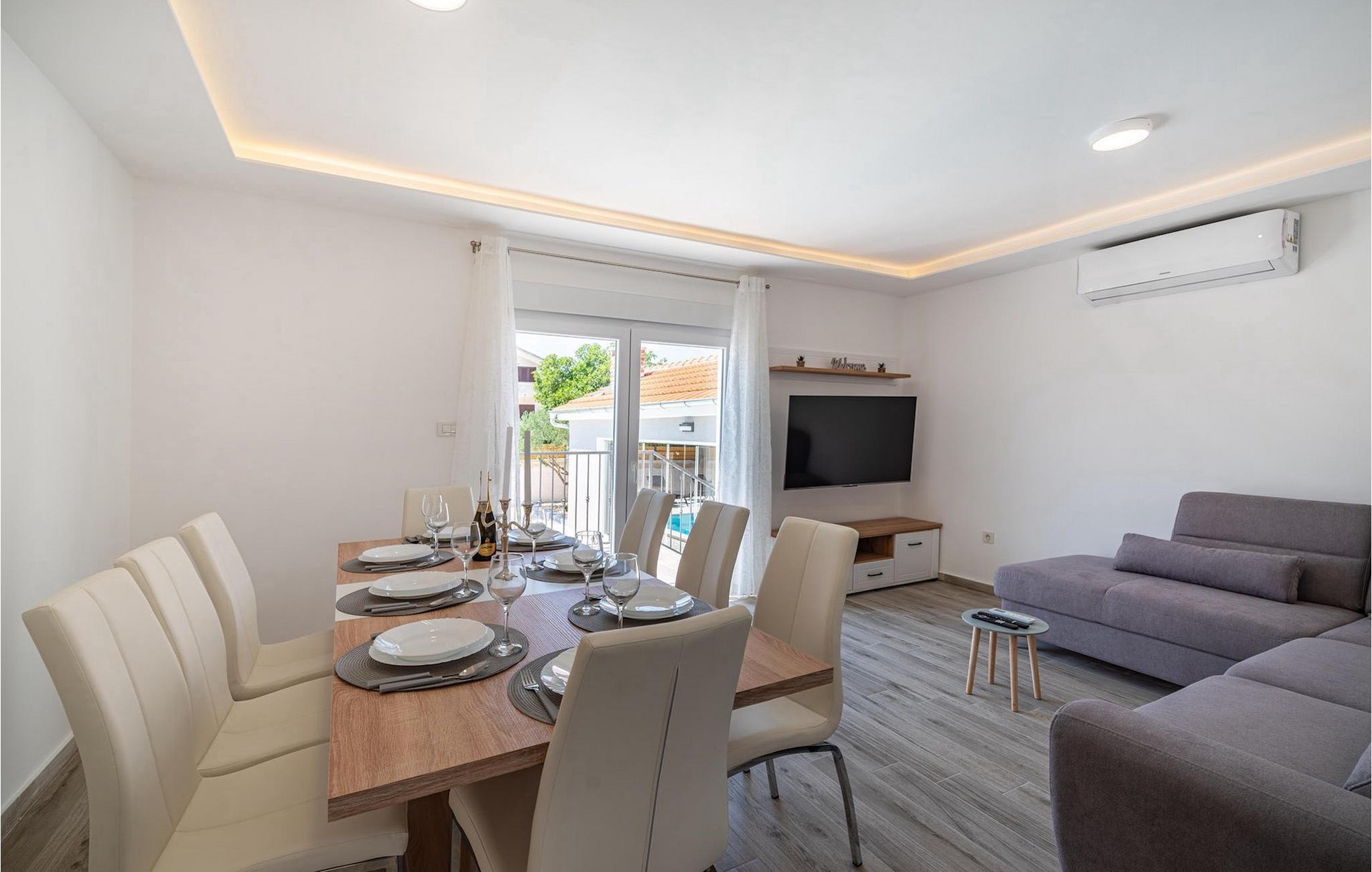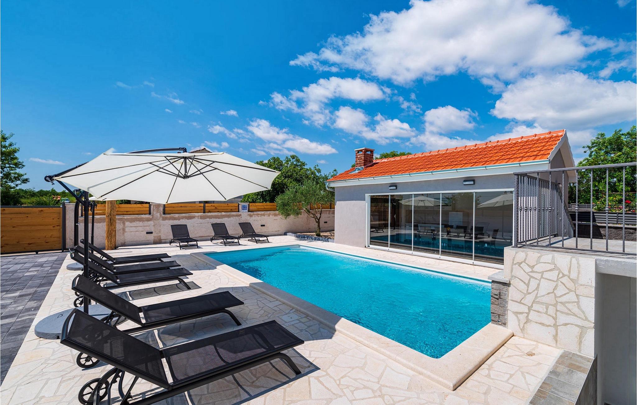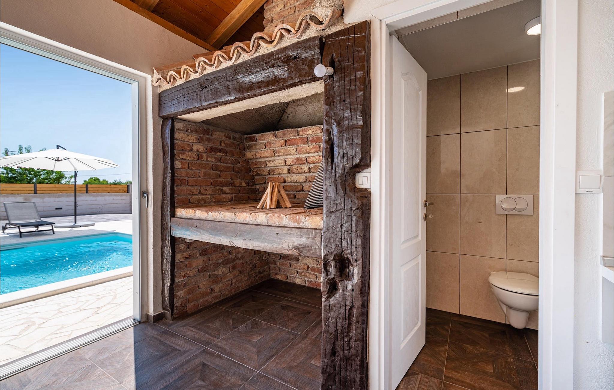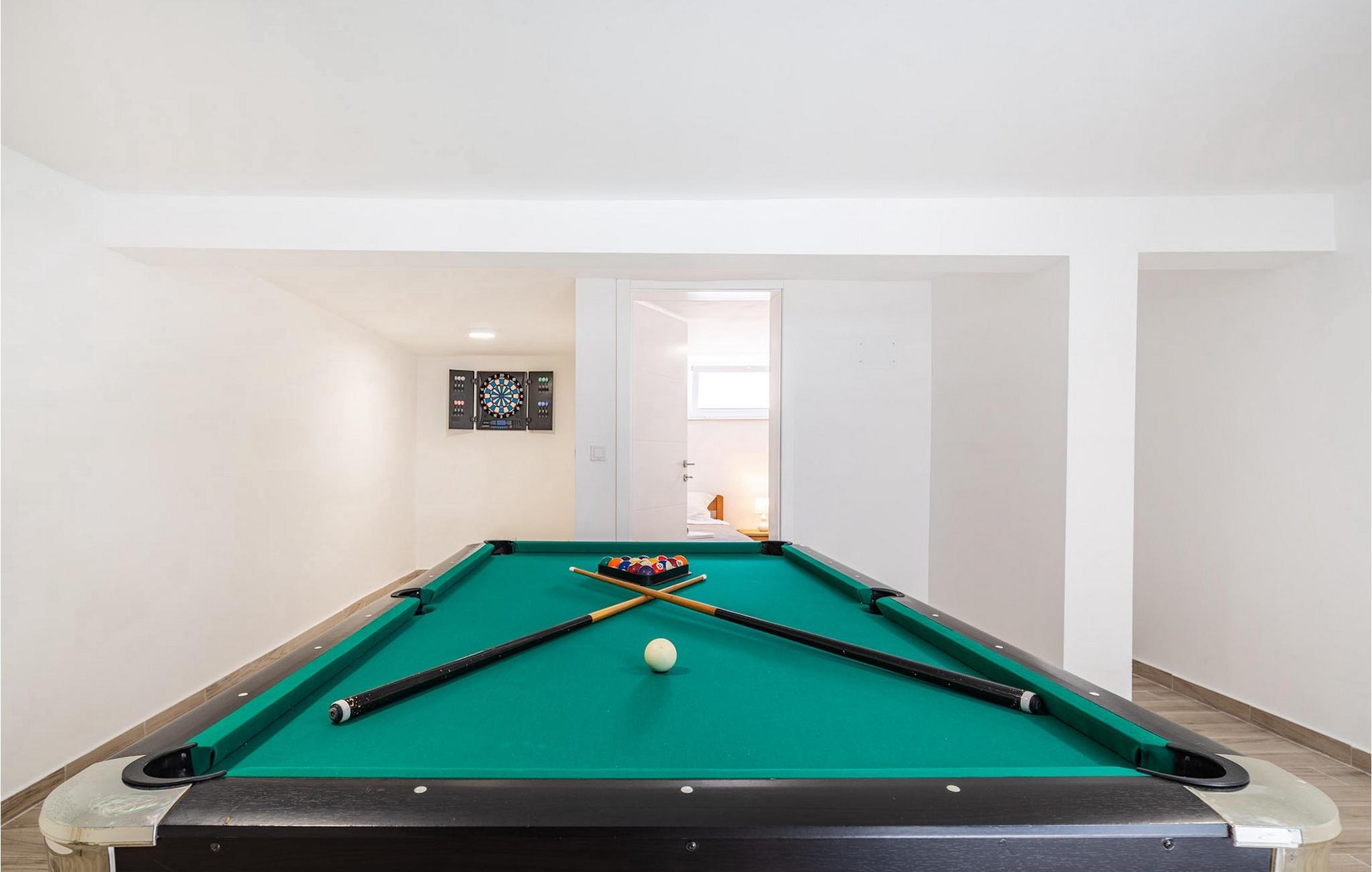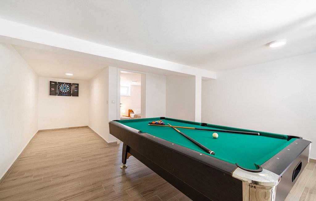 Die Villa Feniks im Dorf Polaca ist eine ideale Villa für einen Urlaub mit der Familie. Der Garten ist komplett eingezäunt und bietet Ihnen während Ihres Urlaubs die gewünschte Privatsphäre. Vor dieser wunderschönen Villa befindet sich ein 32 Quadratmetre großer Swimmingpool, in dem Sie sich von der Sommerhitze erfrischen können. Wenn Sie ein Fan des Sonnenbadens sind, entspannen Sie sich in den Liegestühlen am Pool und genießen Sie erfrischende Getränke und interessante Lektüre. Am Pool gibt es einen überdachten Bereich mit einer Außenküche und einem Esstisch aus Holz mit 8 Sitzplätzen, wo Sie dalmatinische Spezialitäten vom Grill genießen können. Wecken Sie das Kind in sich und haben Sie Spaß mit den jüngsten Familienmitgliedern auf dem Trampolin. An Unterhaltungsmöglichkeiten mangelt es in der Villa nicht: Im Kellerraum können Sie Billard oder Darts spielen. Auch das Innere der Villa wird Sie nicht enttäuschen. Im Erdgeschoss der Villa gibt es eine Küche mit allem, was Sie zum Zubereiten von Mahlzeiten benötigen, einen offenen Raum mit einem gemütlichen Wohnzimmer und ein Esszimmer. Im ersten Stock der Villa gibt es ein Badezimmer, ein Schlafzimmer mit einem Doppelbett, ein zweites Schlafzimmer, das ebenfalls über ein Doppelbett verfügt, und ein drittes Schlafzimmer mit einem Etagenbett, das sicherlich bei den jüngsten Gästen beliebt sein wird. Die Schlafzimmer im ersten Stock verfügen über einen Fernseher und eine Klimaanlage. Im Untergeschoss der Villa befindet sich ein viertes Schlafzimmer mit zwei Einzelbetten und Klimaanlage. Ein Urlaub in der Villa Phoenix wird Sie beleben und wie ein Phönix zu neuen Siegen im Leben emporheben. Verpassen Sie nicht einen unterhaltsamen Familienurlaub in der dalmatinischen Atmosphäre von Polaca. Die Villa Feniks befindet sich in Polaca, in der Nähe der Stadt Biograd na Moru. Es liegt in der Gegend von Ravni Kotar, die für ihre einheimische Maraska-Kirsche und den Agrotourismus bekannt ist. Besuchen Sie den Naturpark Vrana-See, der den größten natürlichen See und eines der größten Feuchtgebiete im Mittelmeerraum Kroatiens beherbergt. Im Parkgebiet gibt es 95 gesetzlich geschützte Arten. Die Altstadt von Vrana entstand im Mittelalter in unmittelbarer Nähe des Sees. Das Benediktinerkloster wurde später von den Tempelrittern genutzt und die Insignien – Symbole der Macht des kroatischen Königreichs – wurden lange Zeit innerhalb der Mauern aufbewahrt. Besuchen Sie die Touristenzentren Biograd na Moru und Pakoštane. Pakoštane liegt im Zentrum Dalmatiens mit vielen kulturellen und historischen Sehenswürdigkeiten wie den Kirchen St. Justin, St. Michael, St. Roka und lokale Feste wie Karneval, Sommerspiele. Biograd na moru ist ein bekannter beliebter Sommerurlaubsort mit wunderschönen Sandstränden. Geschichtsliebhaber können das Biograd-Museum besuchen. Besuchen Sie zahlreiche Inseln wie Pašman, Galesnjak und NP Kornati. Ein unumgängliches Ziel ist Zadar, die kulturelle und historische Wiege Kroatiens, berühmt für die Kirche Hl. Donata, Hl. Stošija und Hl. Maria, Truhe des Hl. Šimuna, Hauptstraße Kalelarga, Meeresorgel und Gruß an die Sonne.