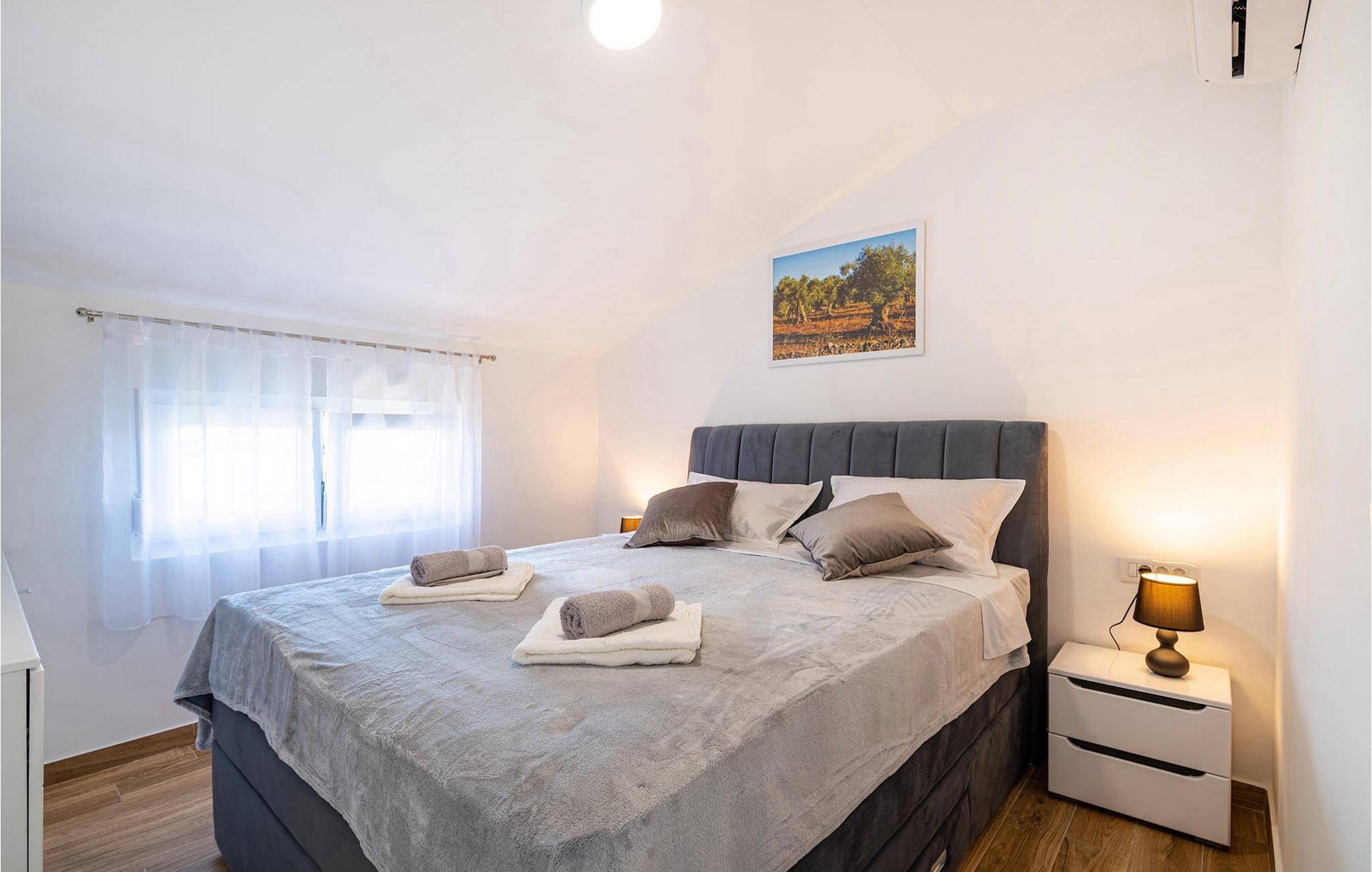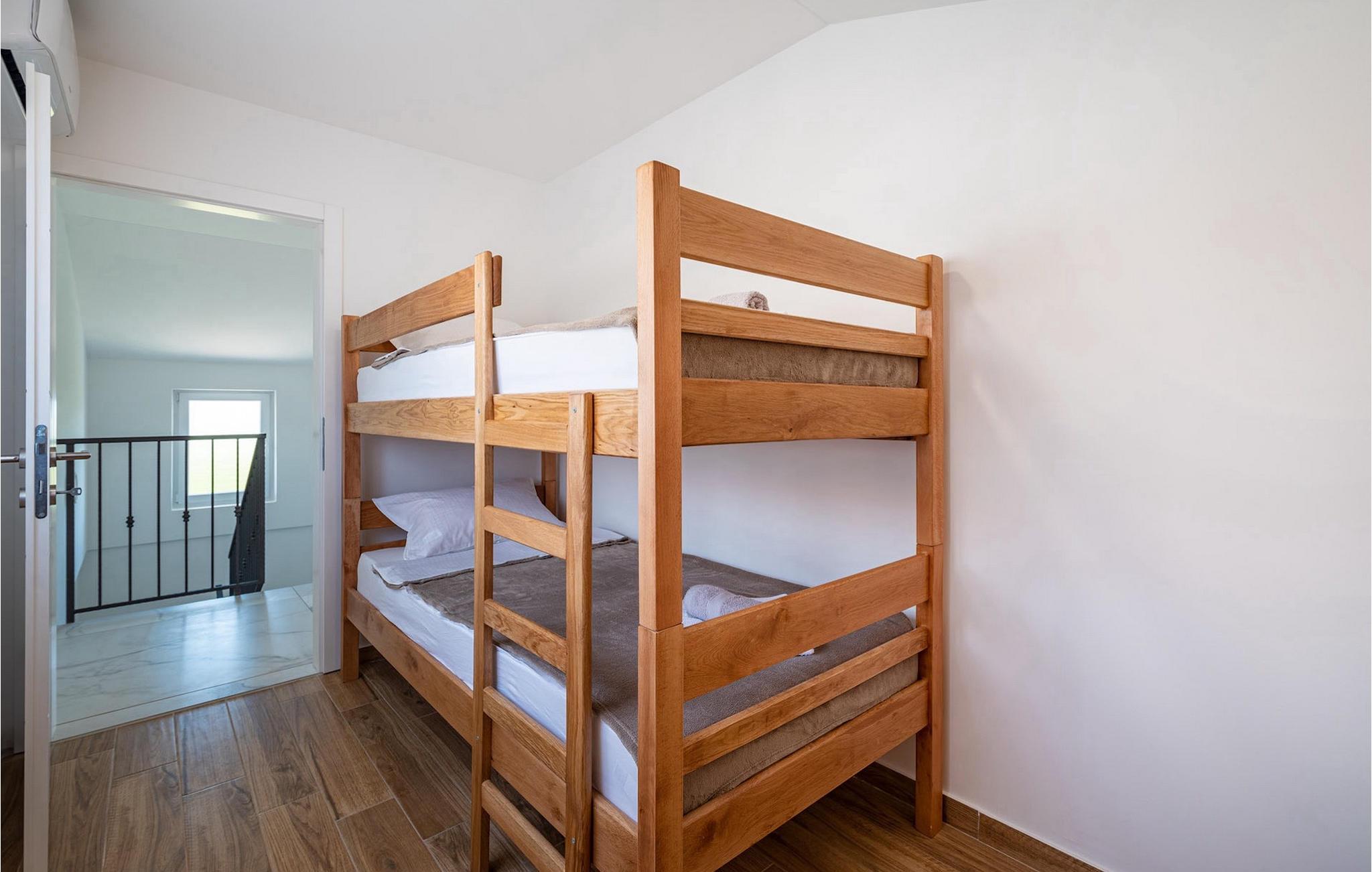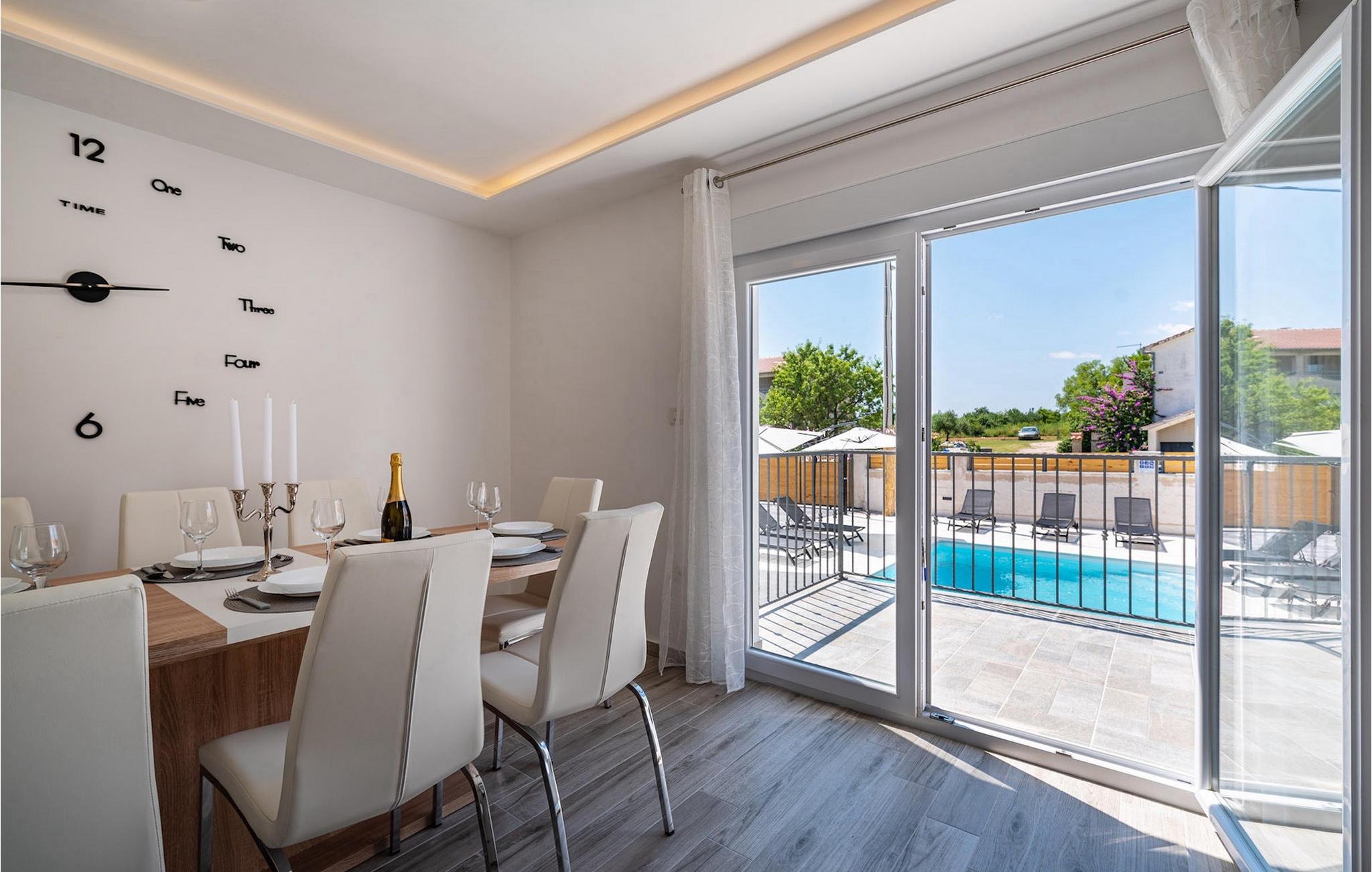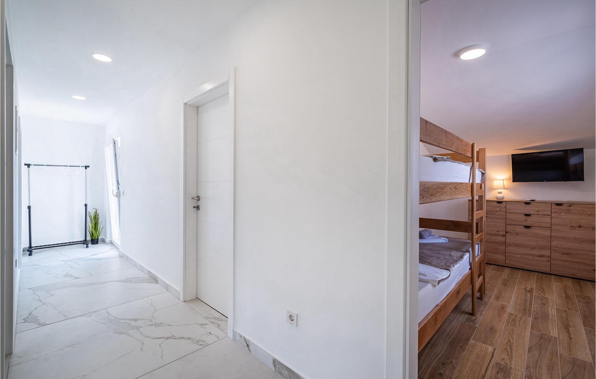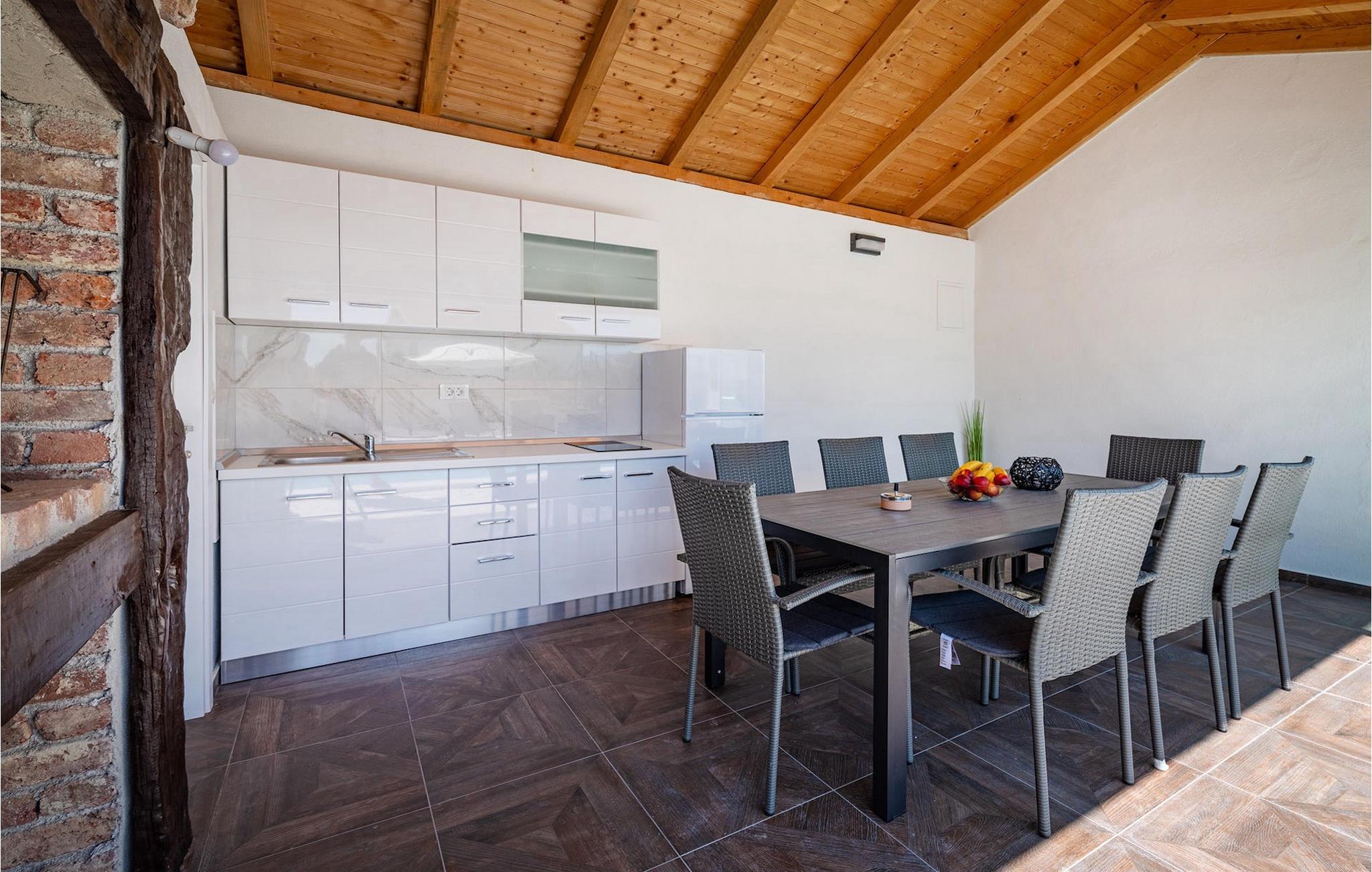 Die Villa Feniks im Dorf Polaca ist eine ideale Villa für einen Urlaub mit der Familie. Der Garten ist komplett eingezäunt und bietet Ihnen während Ihres Urlaubs die gewünschte Privatsphäre. Vor dieser wunderschönen Villa befindet sich ein 32 Quadratmetre großer Swimmingpool, in dem Sie sich von der Sommerhitze erfrischen können. Wenn Sie ein Fan des Sonnenbadens sind, entspannen Sie sich in den Liegestühlen am Pool und genießen Sie erfrischende Getränke und interessante Lektüre. Am Pool gibt es einen überdachten Bereich mit einer Außenküche und einem Esstisch aus Holz mit 8 Sitzplätzen, wo Sie dalmatinische Spezialitäten vom Grill genießen können. Wecken Sie das Kind in sich und haben Sie Spaß mit den jüngsten Familienmitgliedern auf dem Trampolin. An Unterhaltungsmöglichkeiten mangelt es in der Villa nicht: Im Kellerraum können Sie Billard oder Darts spielen. Auch das Innere der Villa wird Sie nicht enttäuschen. Im Erdgeschoss der Villa gibt es eine Küche mit allem, was Sie zum Zubereiten von Mahlzeiten benötigen, einen offenen Raum mit einem gemütlichen Wohnzimmer und ein Esszimmer. Im ersten Stock der Villa gibt es ein Badezimmer, ein Schlafzimmer mit einem Doppelbett, ein zweites Schlafzimmer, das ebenfalls über ein Doppelbett verfügt, und ein drittes Schlafzimmer mit einem Etagenbett, das sicherlich bei den jüngsten Gästen beliebt sein wird. Die Schlafzimmer im ersten Stock verfügen über einen Fernseher und eine Klimaanlage. Im Untergeschoss der Villa befindet sich ein viertes Schlafzimmer mit zwei Einzelbetten und Klimaanlage. Ein Urlaub in der Villa Phoenix wird Sie beleben und wie ein Phönix zu neuen Siegen im Leben emporheben. Verpassen Sie nicht einen unterhaltsamen Familienurlaub in der dalmatinischen Atmosphäre von Polaca. Die Villa Feniks befindet sich in Polaca, in der Nähe der Stadt Biograd na Moru. Es liegt in der Gegend von Ravni Kotar, die für ihre einheimische Maraska-Kirsche und den Agrotourismus bekannt ist. Besuchen Sie den Naturpark Vrana-See, der den größten natürlichen See und eines der größten Feuchtgebiete im Mittelmeerraum Kroatiens beherbergt. Im Parkgebiet gibt es 95 gesetzlich geschützte Arten. Die Altstadt von Vrana entstand im Mittelalter in unmittelbarer Nähe des Sees. Das Benediktinerkloster wurde später von den Tempelrittern genutzt und die Insignien – Symbole der Macht des kroatischen Königreichs – wurden lange Zeit innerhalb der Mauern aufbewahrt. Besuchen Sie die Touristenzentren Biograd na Moru und Pakoštane. Pakoštane liegt im Zentrum Dalmatiens mit vielen kulturellen und historischen Sehenswürdigkeiten wie den Kirchen St. Justin, St. Michael, St. Roka und lokale Feste wie Karneval, Sommerspiele. Biograd na moru ist ein bekannter beliebter Sommerurlaubsort mit wunderschönen Sandstränden. Geschichtsliebhaber können das Biograd-Museum besuchen. Besuchen Sie zahlreiche Inseln wie Pašman, Galesnjak und NP Kornati. Ein unumgängliches Ziel ist Zadar, die kulturelle und historische Wiege Kroatiens, berühmt für die Kirche Hl. Donata, Hl. Stošija und Hl. Maria, Truhe des Hl. Šimuna, Hauptstraße Kalelarga, Meeresorgel und Gruß an die Sonne.