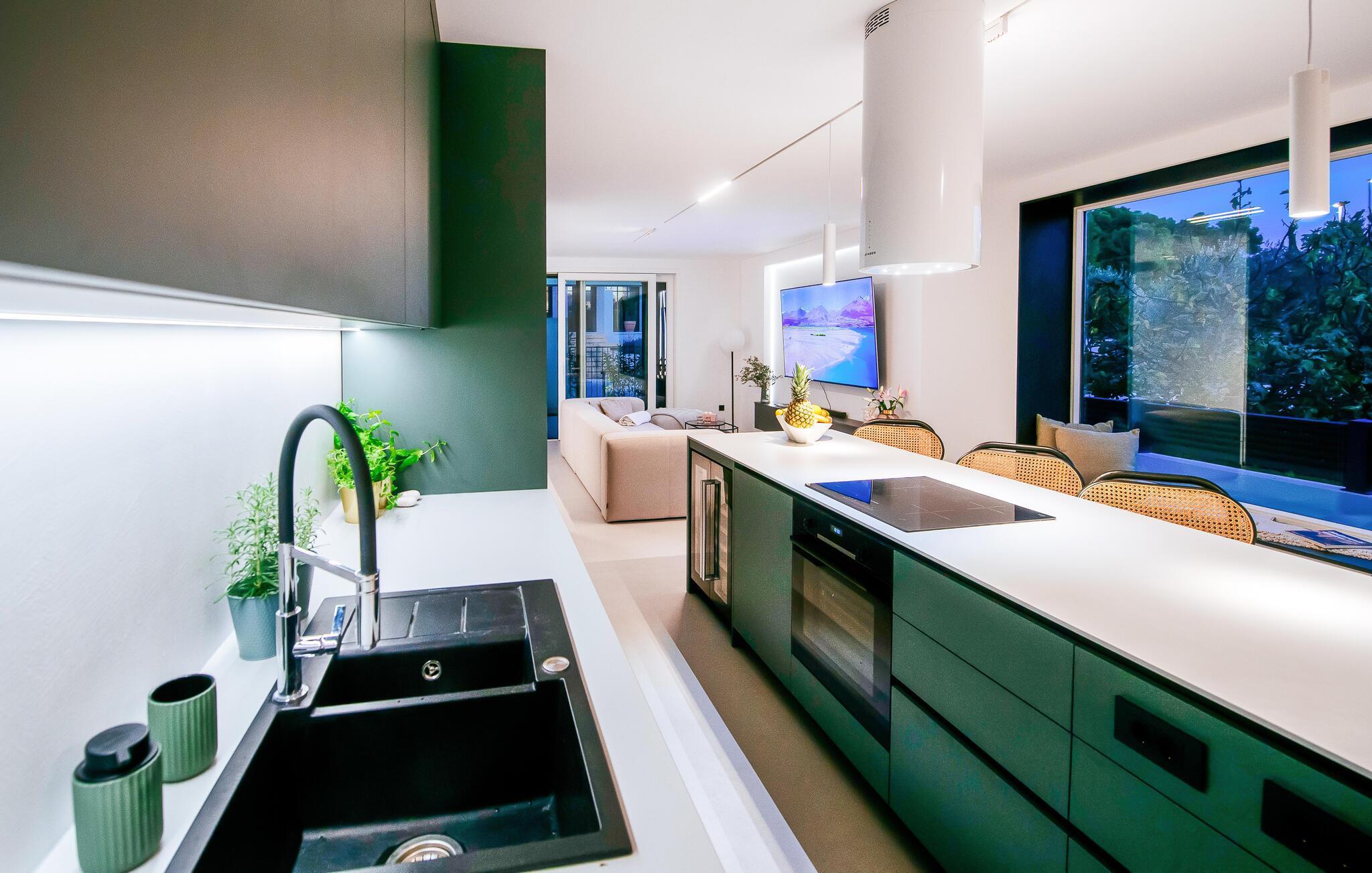 Träumen Sie von Erholung, Komfort und einer herrlichen Ausstattung? Dann sind Sie genau in diesem Zeitpunkt fündig geworden, denn dieses fanatische Feriendomizil verspricht Ihnen Entspannung und Wohlbefinden. Auf mehreren Etagen können Sie die stilvollen Räume entdecken, die entweder zum Relaxen oder zu geselligen Stunden einladen. Verweilen Sie z.B. im modernen und luxuriösen Wohnraum, der die drei Bereiche des Essens, Kochens und Ausruhen in einer gelungenen Symbiose verbindet. Gelungene Farbgestaltung, ausgewähltes Design und hochwertige Möbel machen Ihren Aufenthalt in allen Räumen perfekt. Genießen Sie auch die Sauna, den Whirlpool auf der Terrasse mit Pergola sowie Fitnessmöglichen. Freuen Sie sich auch auf den auf den Pool, der sowohl beheizt oder gekühlt werden kann, während Ihre Kinder im Spielzimmer sich zu Spielen an der Konsole herausfordern. Entdecken Sie zahlreiche weitere Angebote und freuen sich auf Ihre bevorstehenden Aktivitäten und Ausflüge.