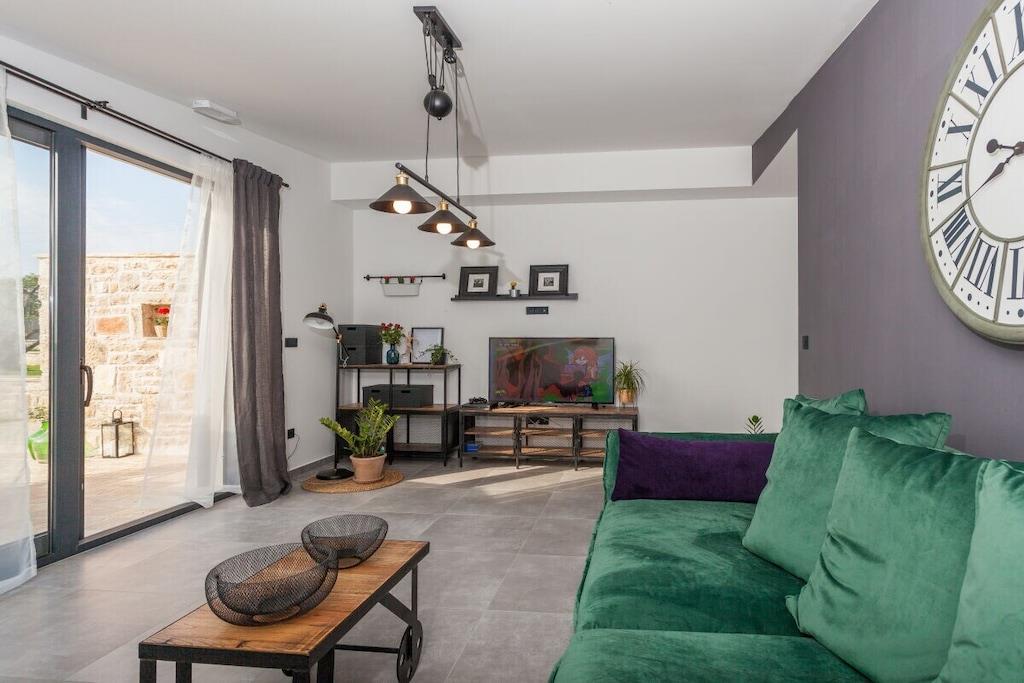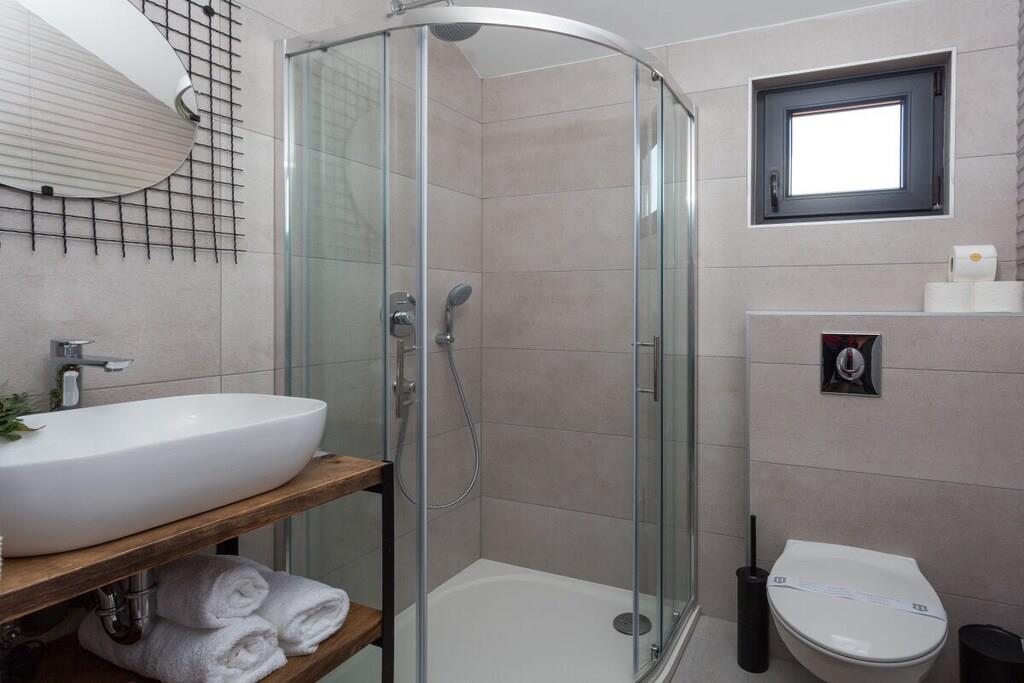 Jedes der vier Schlafzimmer, wobei drei Schlafzimmer mit einem Doppelbett und eines mit zwei organisierbaren Einzelbetten ausgestattet sind, verfügt über ein eigenes Badezimmer, Klimaanlage und Fernseher. Außerdem steht noch eine Gästetoilette zur Verfügung, besonders praktisch während des Sonnenbads. Die Küche ist modern und komplett ausgestattet, ein Innenkamin steht ebenfalls zur Verfügung.