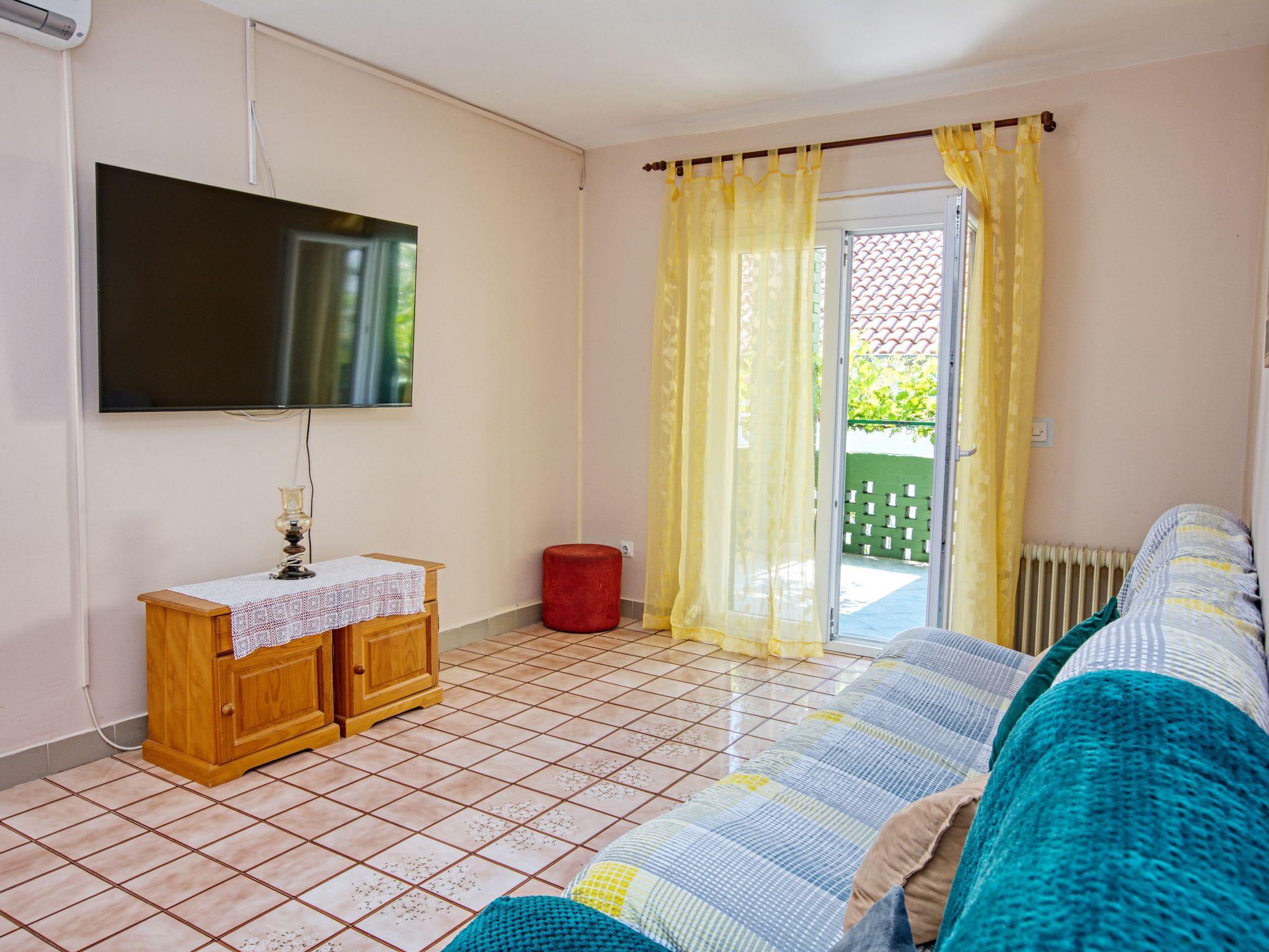 Ferienwohnung bietet Platz für 6 Gäste. Die Betten sind in Schlafzimmern, die es 2 gibt, und in Wohnzimmer, innerhalb einer Gesamtfläche von 57m2, angeordnet. Die Gäste haben eine eigene Terrasse zur Verfügung, auf der sie in warmen Sommernächten genießen können. Es ist erlaubt, Speisen auf dem Gemeinschafts-Grill vorzubereiten. In der Unterkunftseinheit besteht die Möglichkeit des Mitbringens von Haustieren gegen Aufpreis. IM PREIS INBEGRIFFEN: Kurtaxe, Endreinigung, Klimatisierung, Parkplatz, Internet, Kinderbett. VERBINDLICHE ZUSÄTZLICHE KOSTEN: Aufzahlung für Kurzaufenthalte (prozentualer Zuschlag pro Nächtigungsanzahl: 30% - 1, 20% - 2, 10% - 3). UNVERBINDLICHE ZUSÄTZLICHE KOSTEN: Wäschewaschen (7,00 € Waschen), Haustiere (10,00 € pro Nacht). Die Verfügbarkeit zusätzlicher Dienstleistungen in Ihrem reservierten Termin und die Preise derselben (falls nicht aufgeführt) müssen im Voraus überprüft werden. Zusätzliche Dienstleistungen die in der Zahlungsaufforderung nicht aufgeführt sind werden direkt beim Vermieter bezahlt, angenommen der Gast nutzt auch diese.