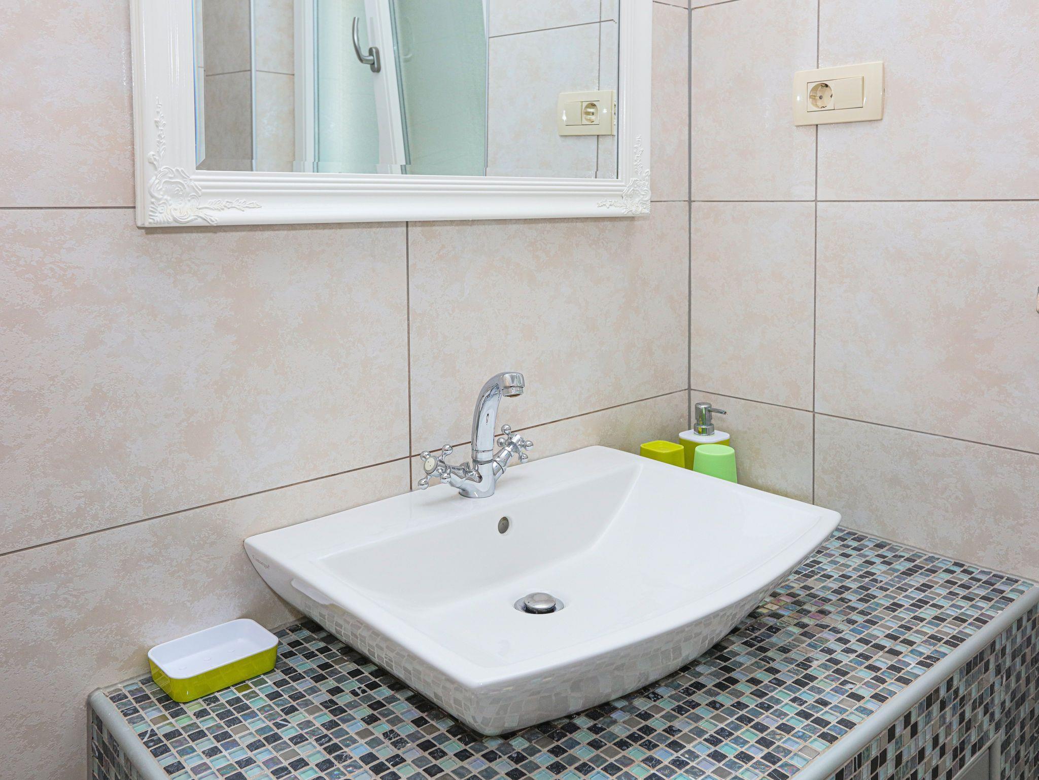 Ferienwohnung bietet Platz für 4 Gäste. Die Betten sind in Schlafzimmern, die es 2 gibt, innerhalb einer Gesamtfläche von 55m2, angeordnet. Die Gäste haben eine eigene Terrasse zur Verfügung, auf der sie in warmen Sommernächten genießen können. Es ist erlaubt, Speisen auf dem Gemeinschafts-Grill vorzubereiten. Während ihres Aufenthalts können Gäste das gemeinsam zur Nutzung stehende Schwimmbad benutzen. In der Unterkunftseinheit besteht die Möglichkeit des Mitbringens von Haustieren gegen Aufpreis. IM PREIS INBEGRIFFEN: Kurtaxe, Endreinigung, Klimatisierung, Zentralheizung, Pool, Parkplatz, Internet, Kinderbett, Bügeleisen, Bügelbrett, Föhn. VERBINDLICHE ZUSÄTZLICHE KOSTEN: Aufzahlung für Kurzaufenthalte (prozentualer Zuschlag pro Nächtigungsanzahl: 30% - 1, 20% - 2, 10% - 3). UNVERBINDLICHE ZUSÄTZLICHE KOSTEN: Haustiere (20,00 € pro Nacht). Die Verfügbarkeit zusätzlicher Dienstleistungen in Ihrem reservierten Termin und die Preise derselben (falls nicht aufgeführt) müssen im Voraus überprüft werden. Zusätzliche Dienstleistungen die in der Zahlungsaufforderung nicht aufgeführt sind werden direkt beim Vermieter bezahlt, angenommen der Gast nutzt auch diese.